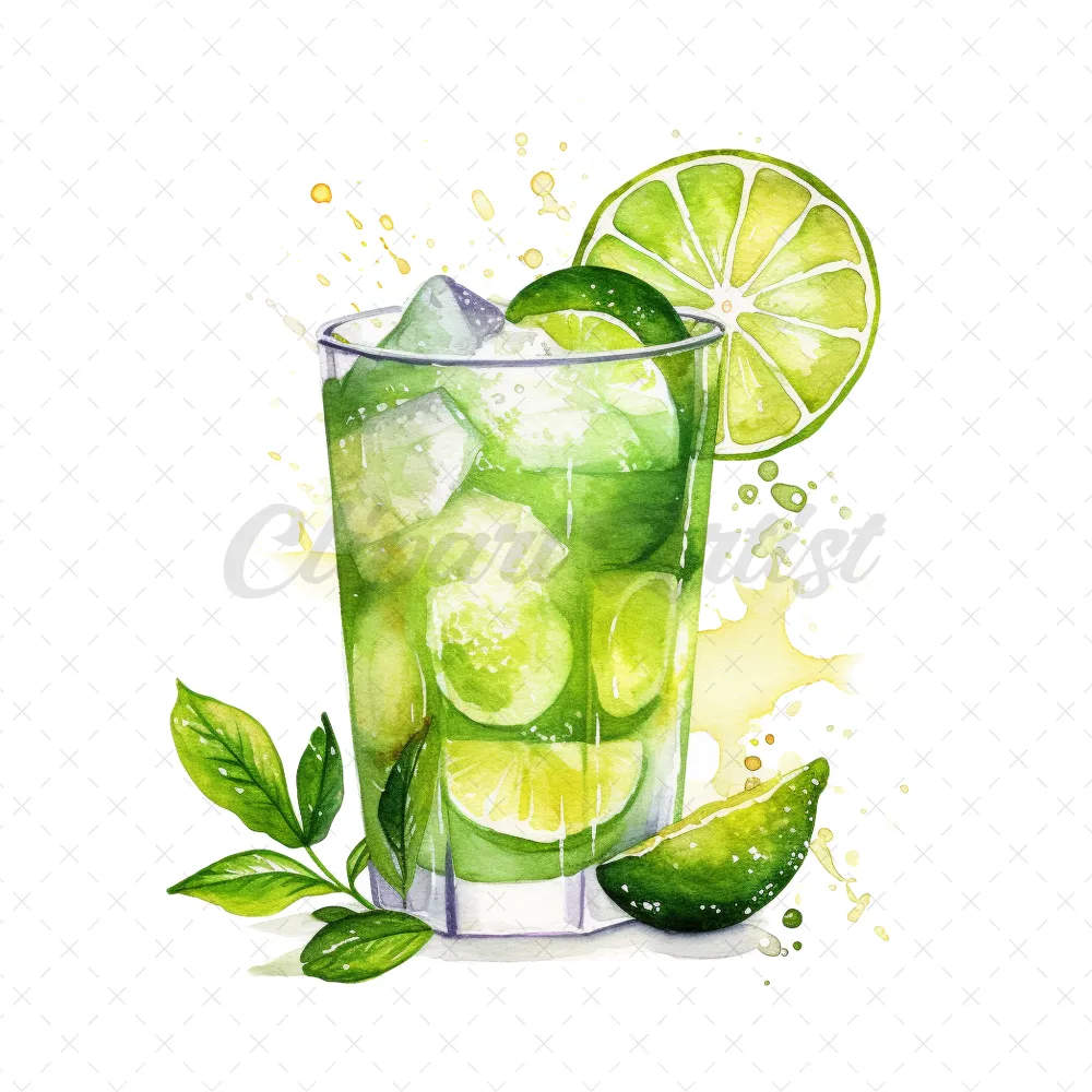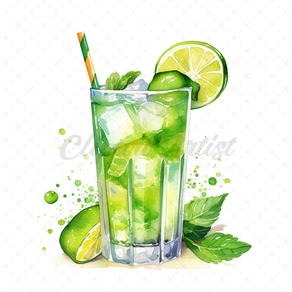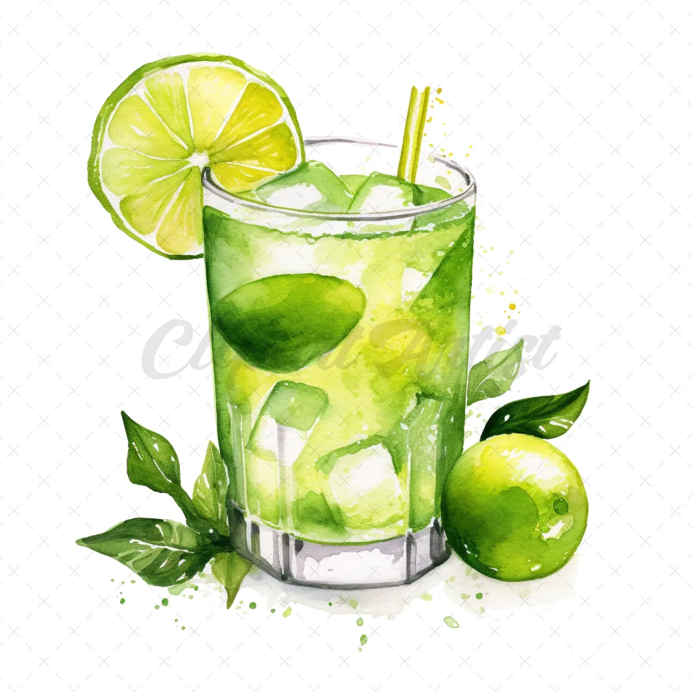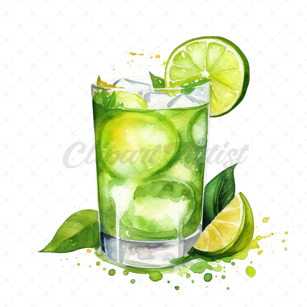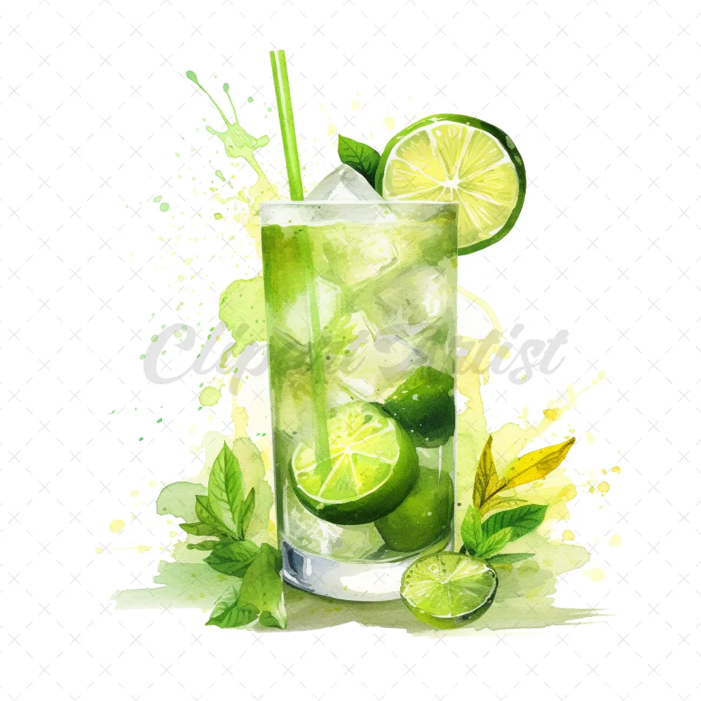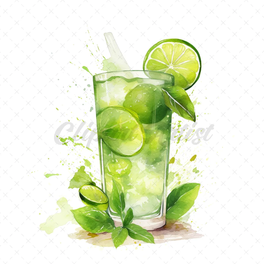 20 High-Quality Lime Cocktail Clipart – Lime cocktail digital watercolor JPG instant download for commercial use – Digital download