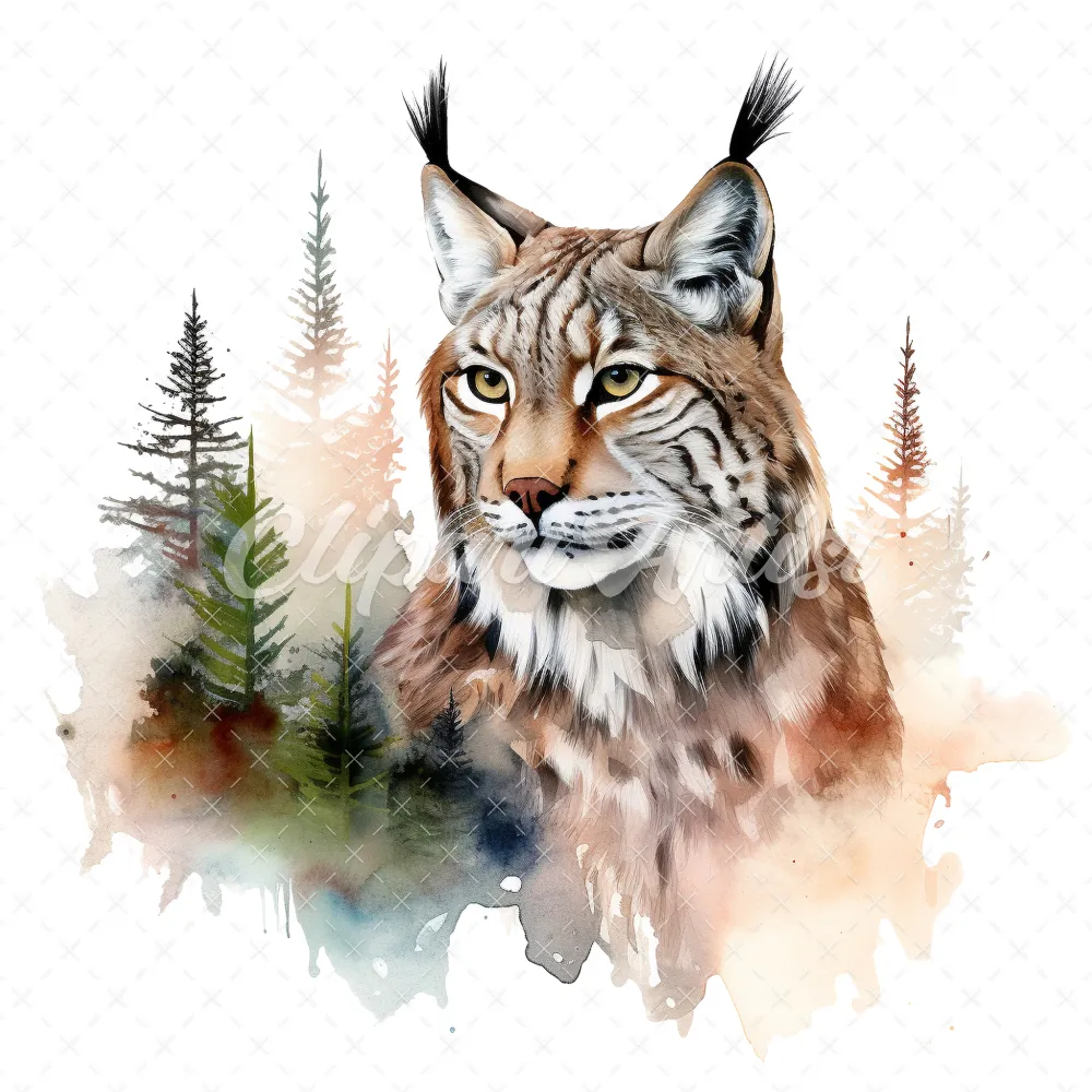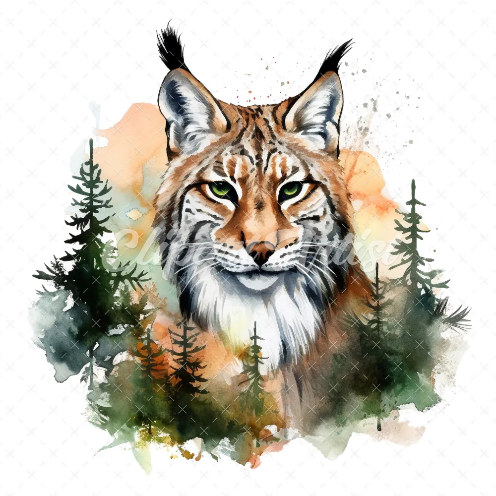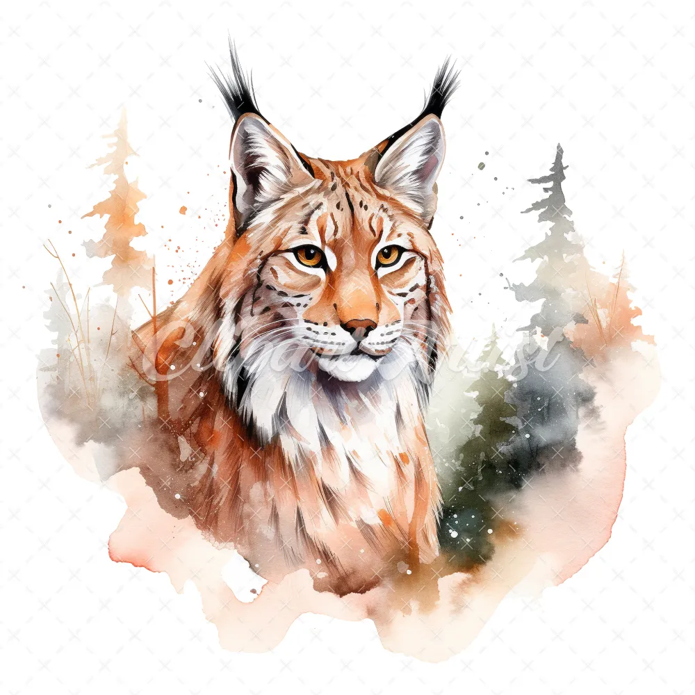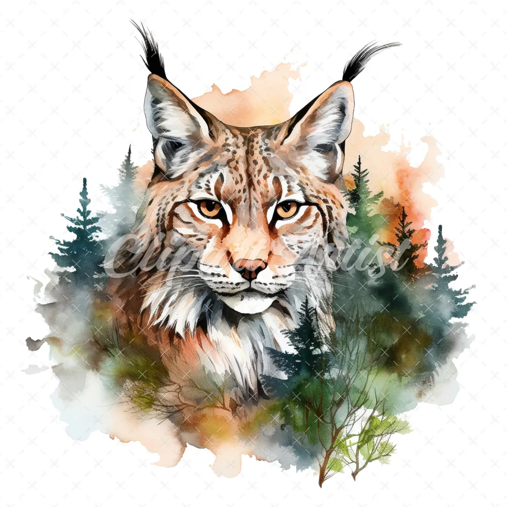 20 High-Quality Lynx Clipart – Lynx digital watercolor JPG instant download for commercial use – Digital download