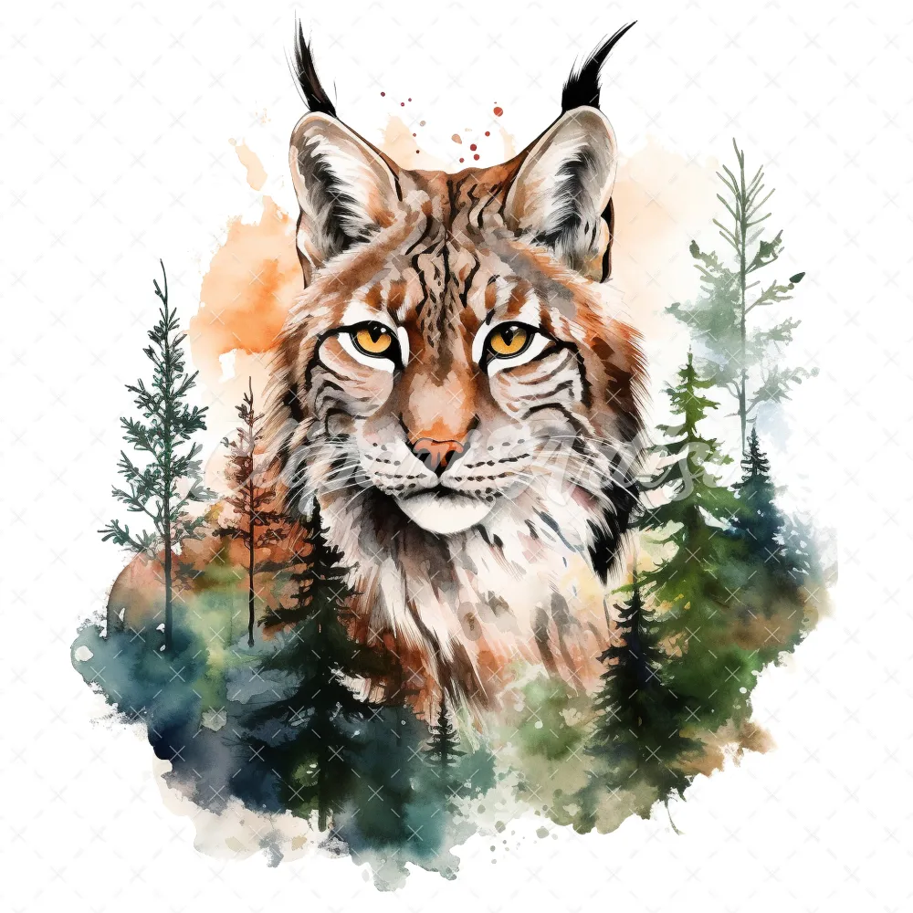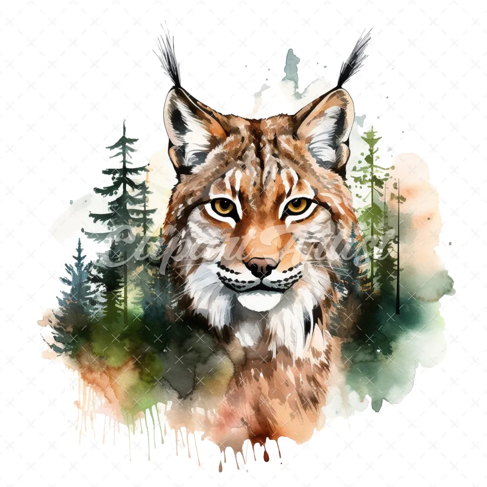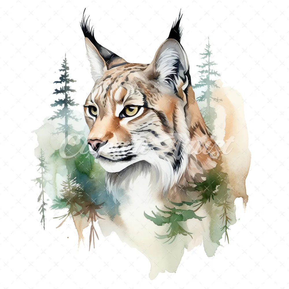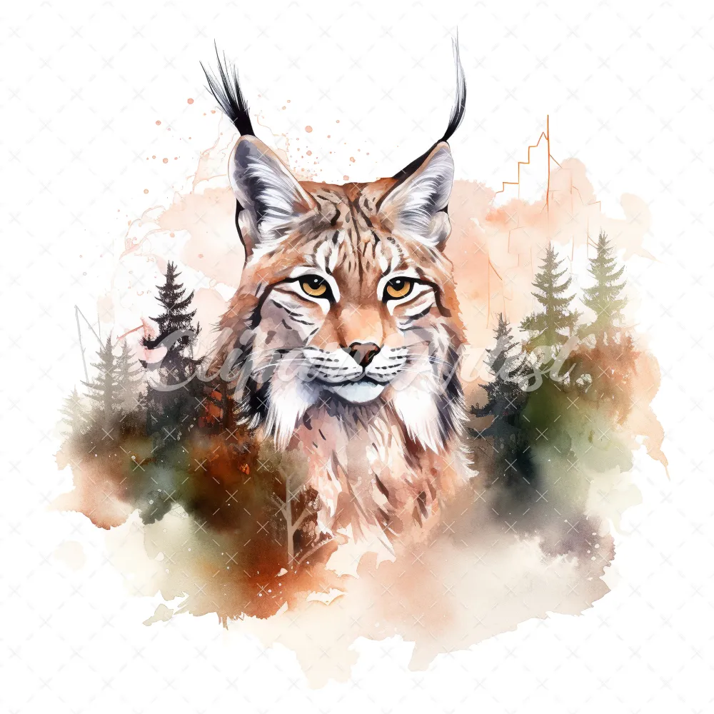 20 High-Quality Lynx Clipart – Lynx digital watercolor JPG instant download for commercial use – Digital download