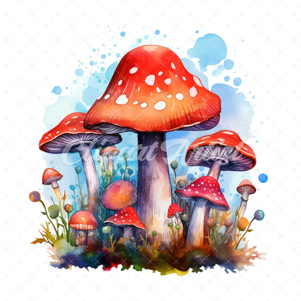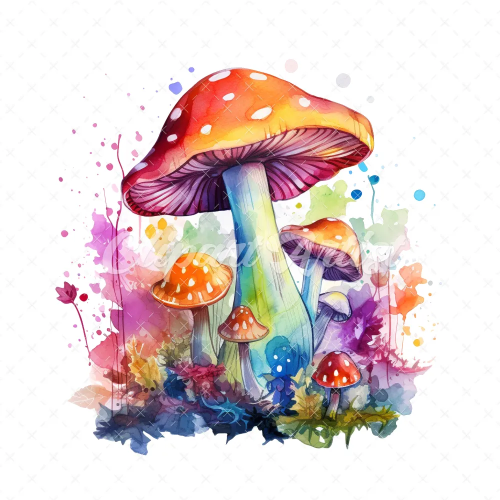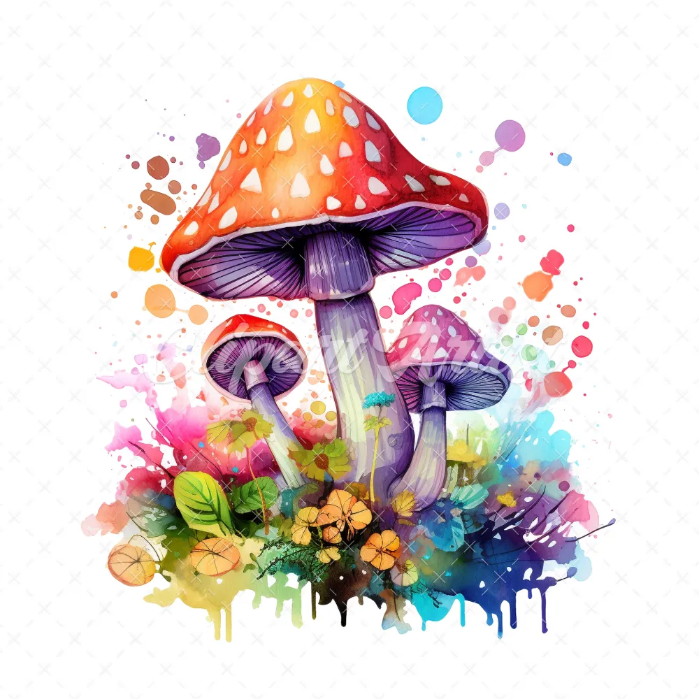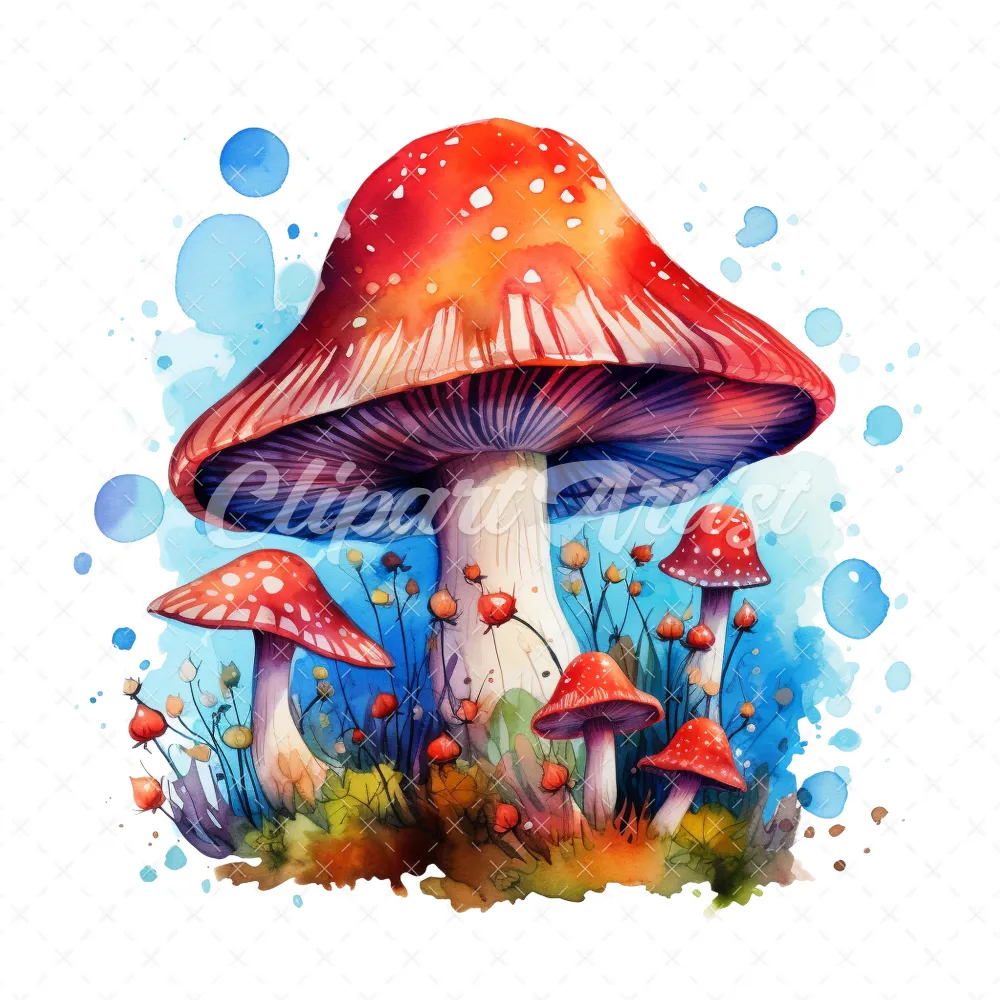 20 High-Quality Magic Mushrooms Clipart – Magic mushrooms digital watercolor JPG instant download for commercial use – Digital download