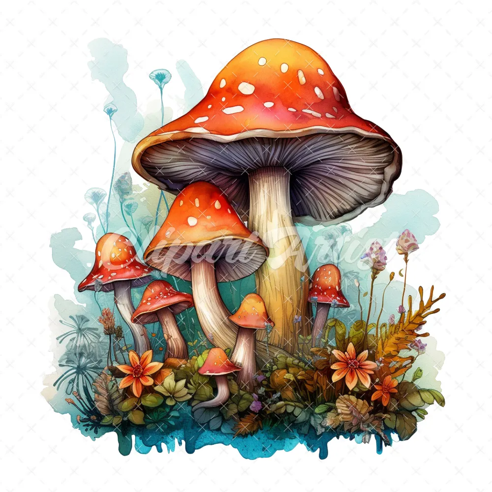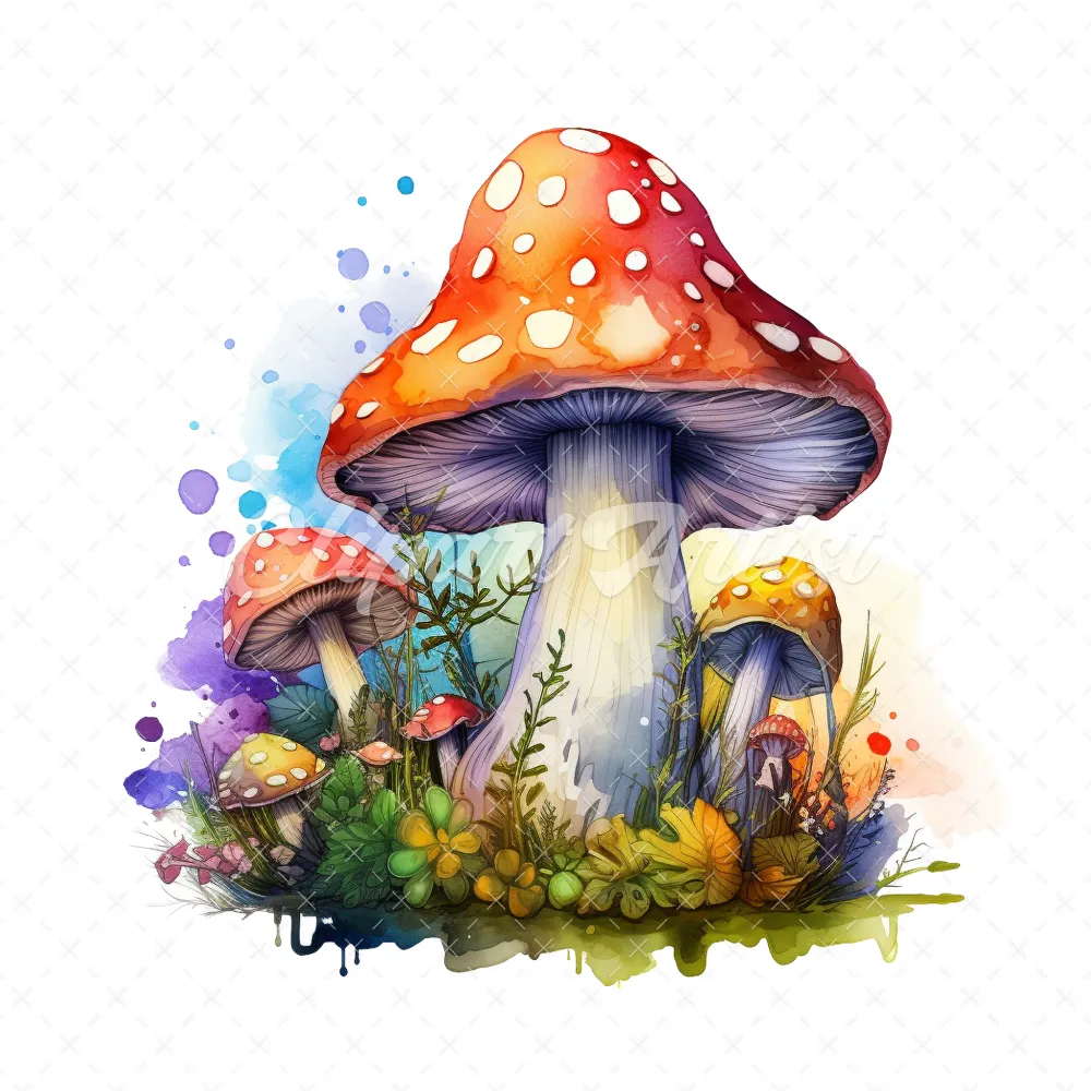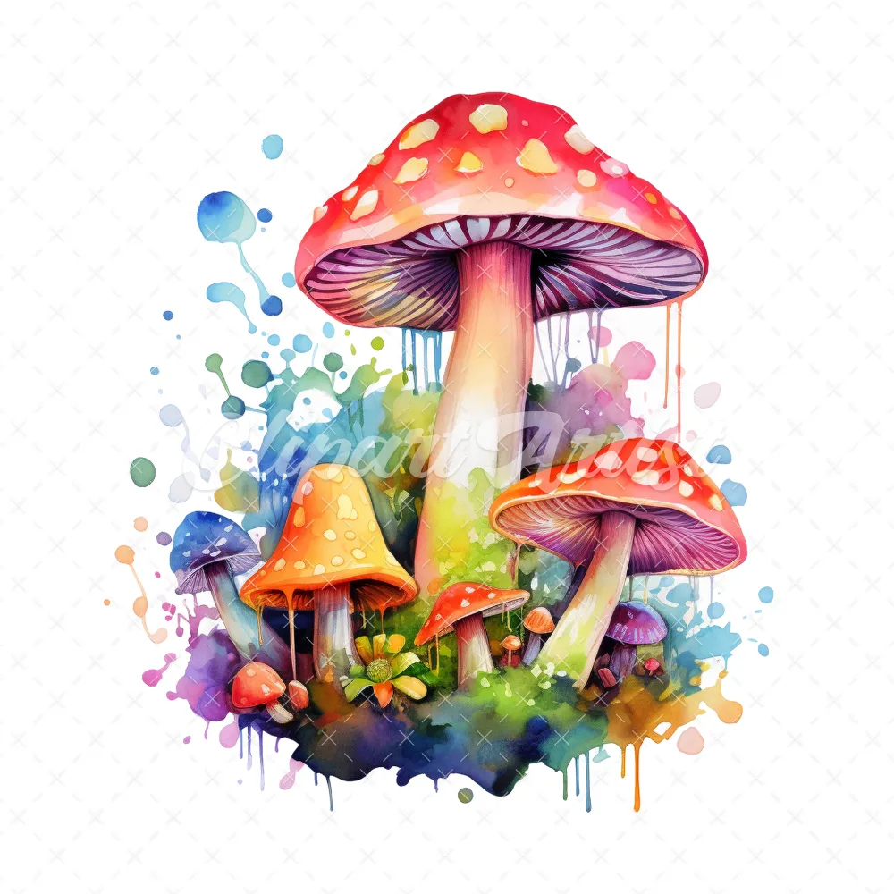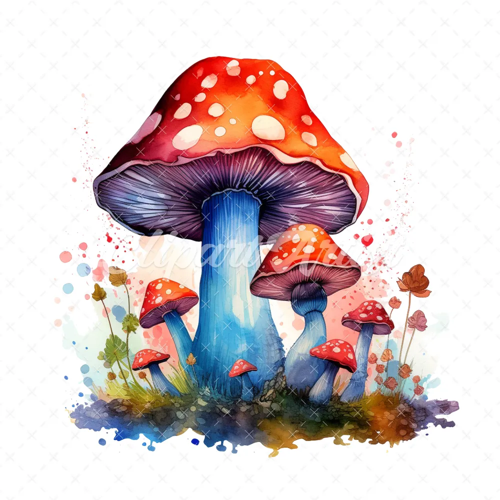 20 High-Quality Magic Mushrooms Clipart – Magic mushrooms digital watercolor JPG instant download for commercial use – Digital download