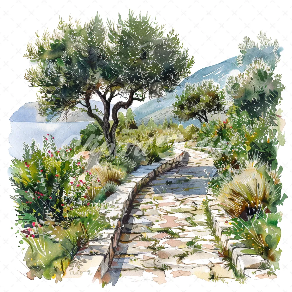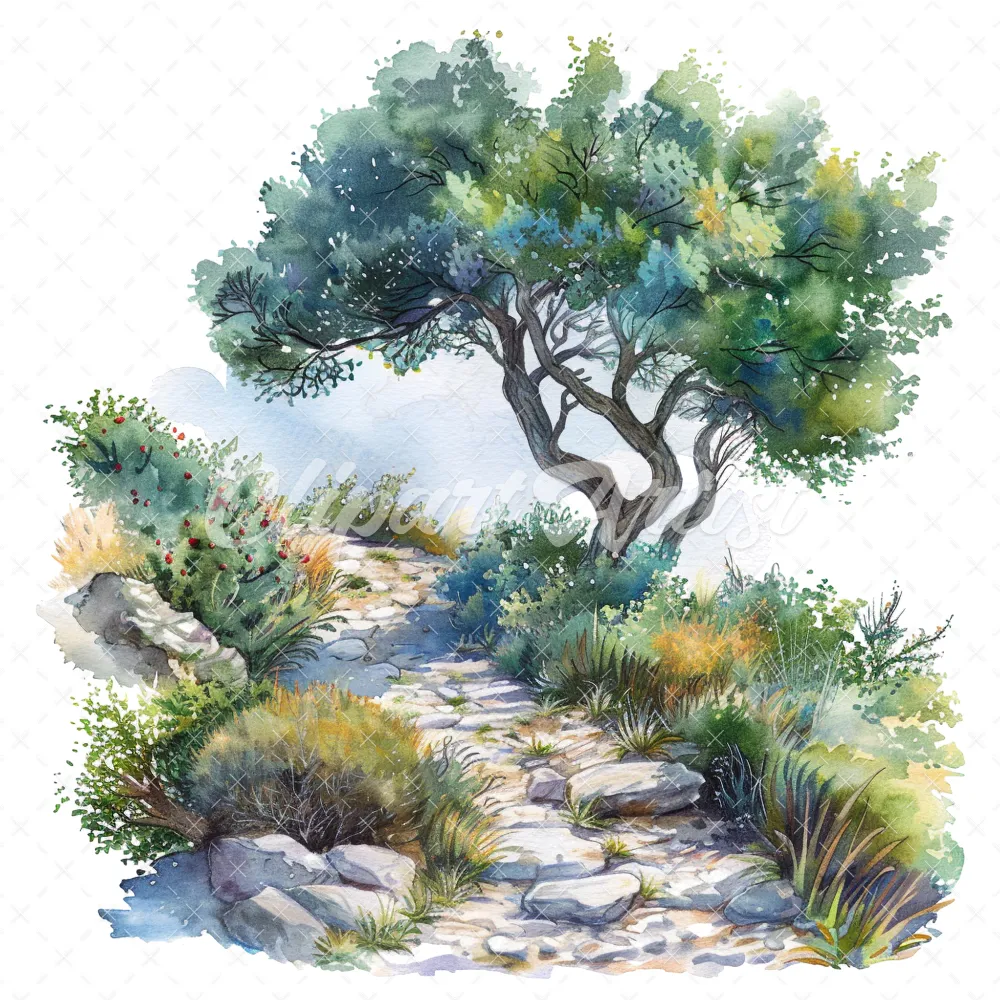 20 High-Quality Mediterranean Bush Clipart – Mediterranean digital watercolor JPG instant download for commercial use – Digital download