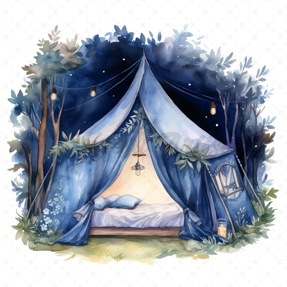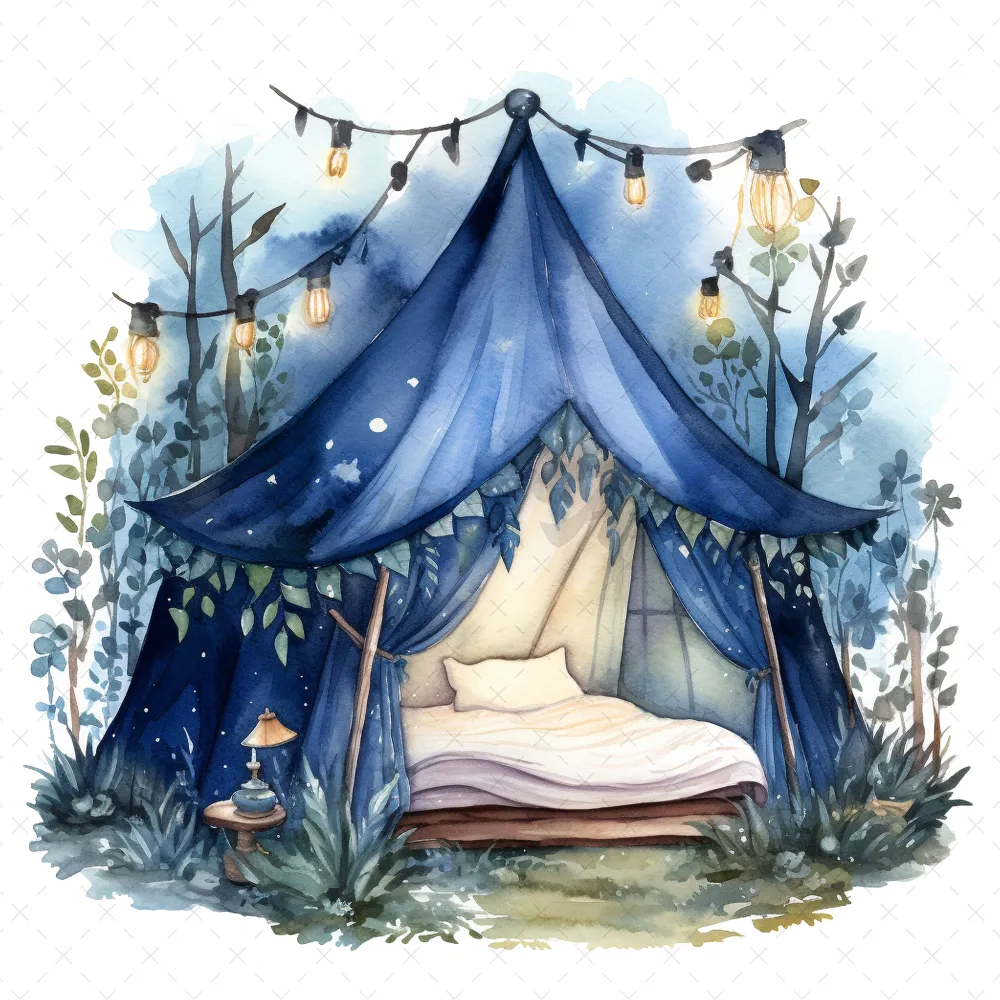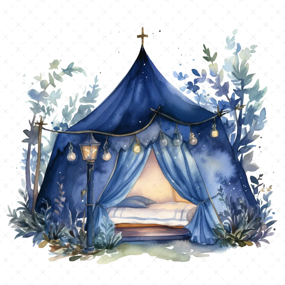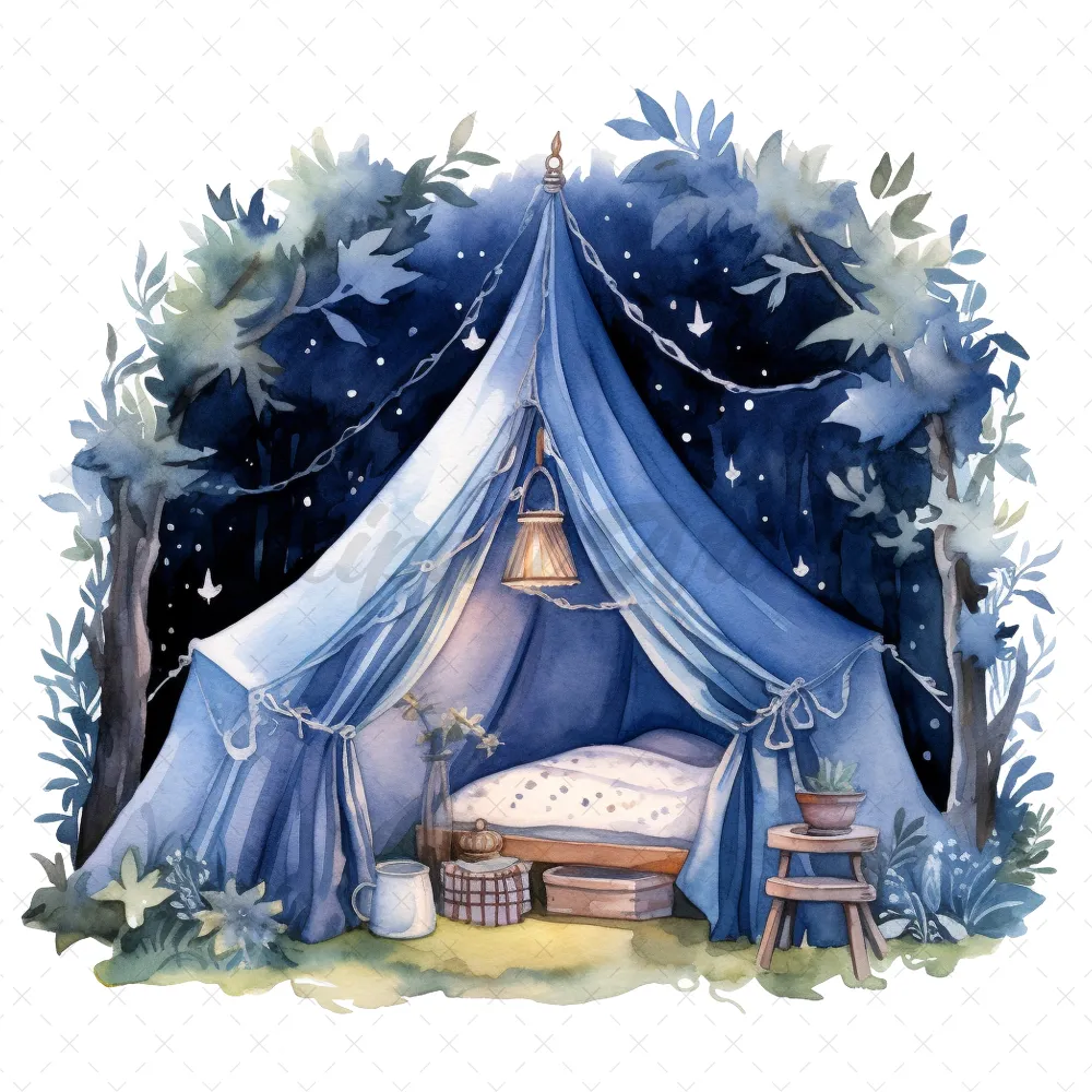 20 High-Quality Night Tents Clipart – Night tents digital watercolor JPG instant download for commercial use – Digital download