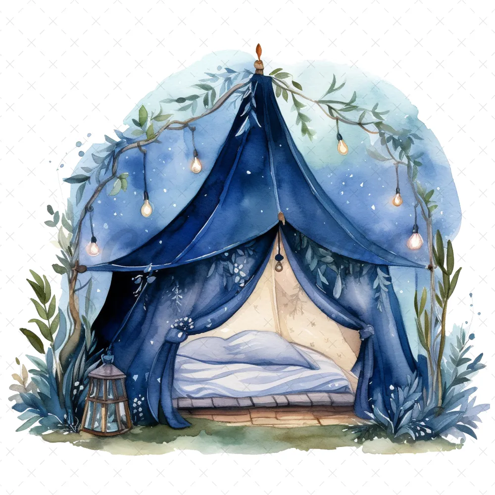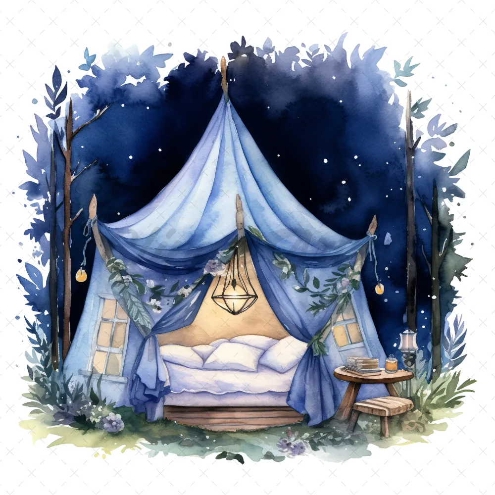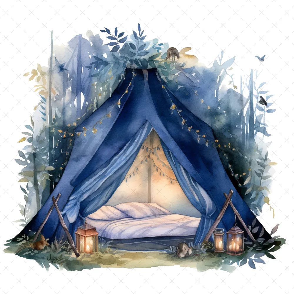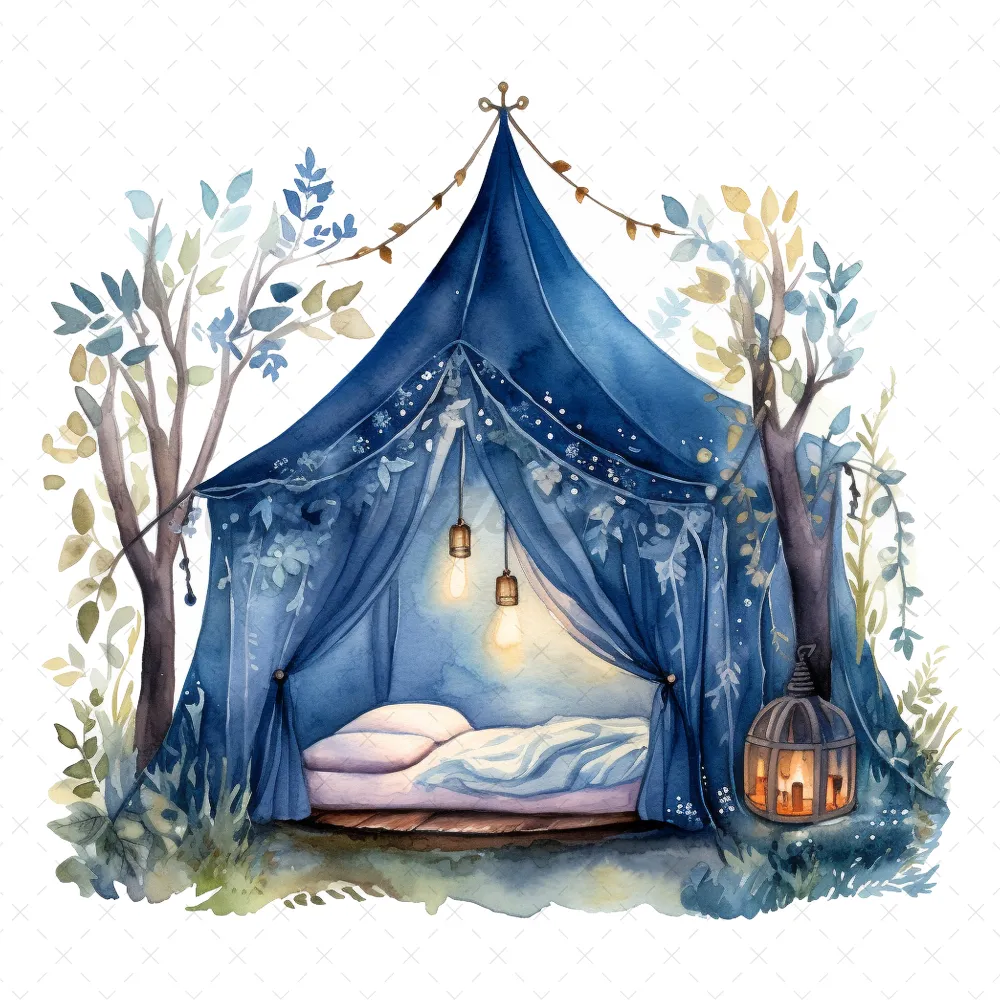 20 High-Quality Night Tents Clipart – Night tents digital watercolor JPG instant download for commercial use – Digital download
