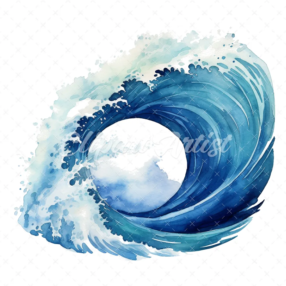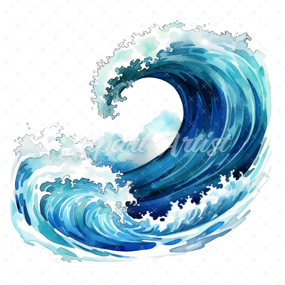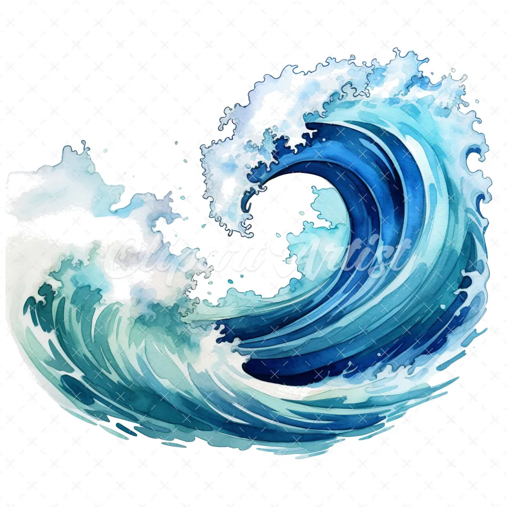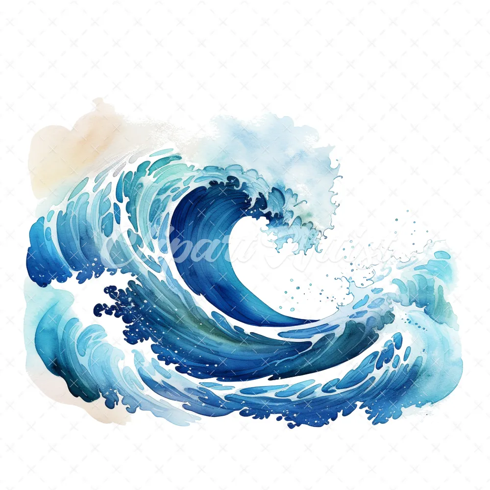 20 High-Quality Ocean Waves Clipart – Ocean waves digital watercolor JPG instant download for commercial use – Digital download