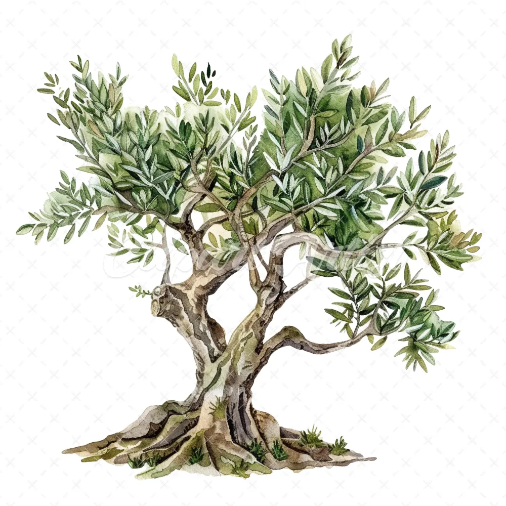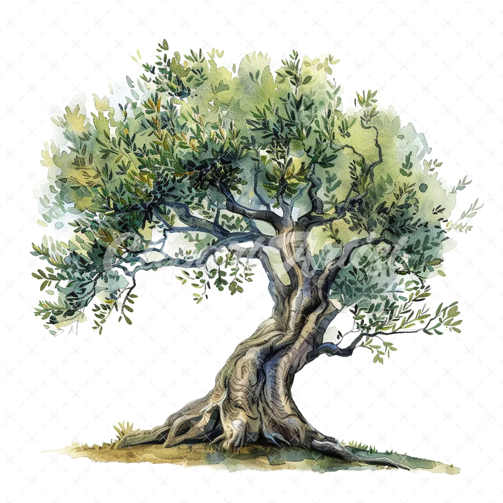 20 High-Quality Olive Trees Clipart – Olive trees digital watercolor JPG instant download for commercial use – Digital download