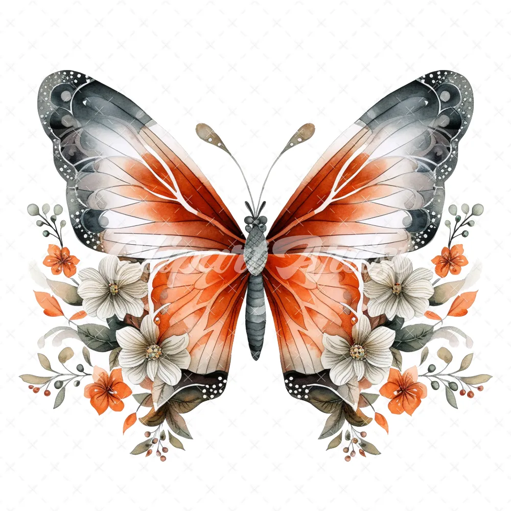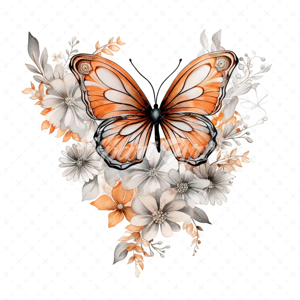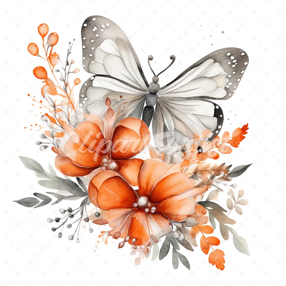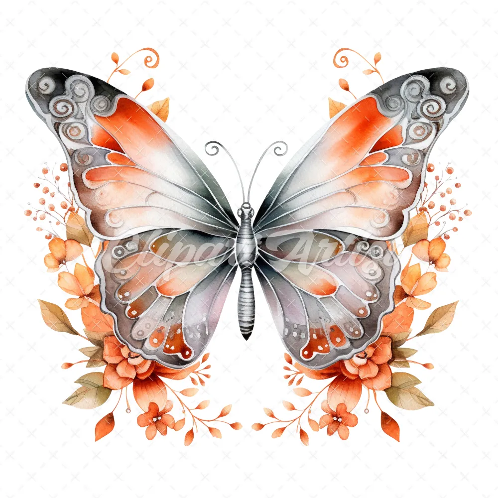 20 High-Quality Orange Silver Butterfly Clipart – Butterfly digital watercolor JPG instant download for commercial use – Digital download