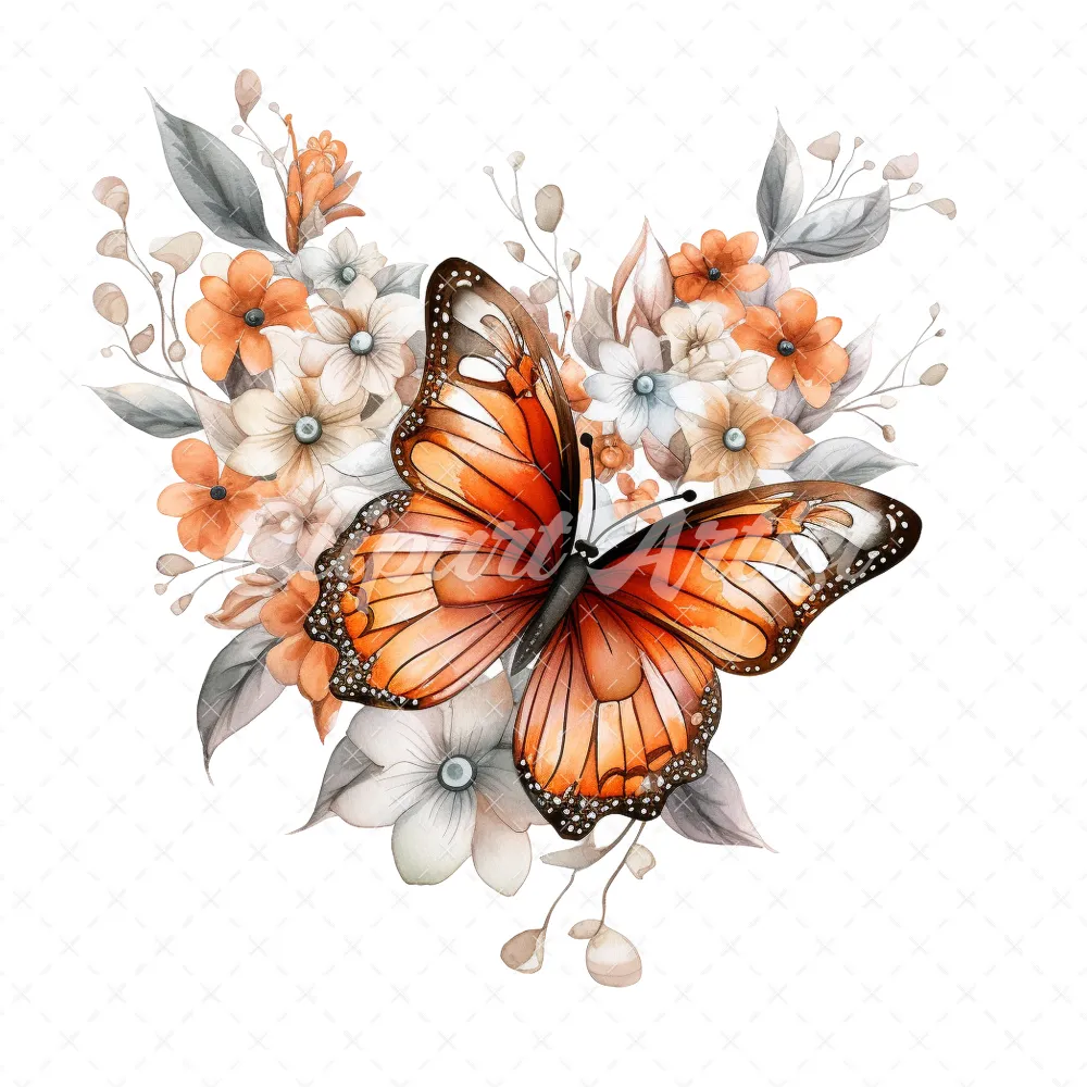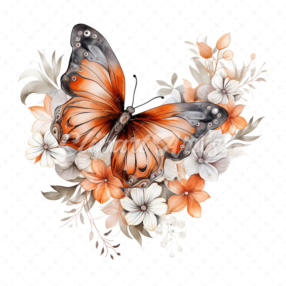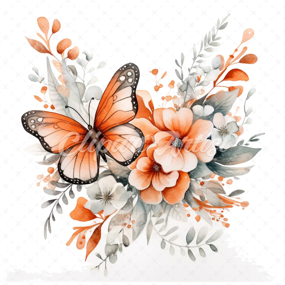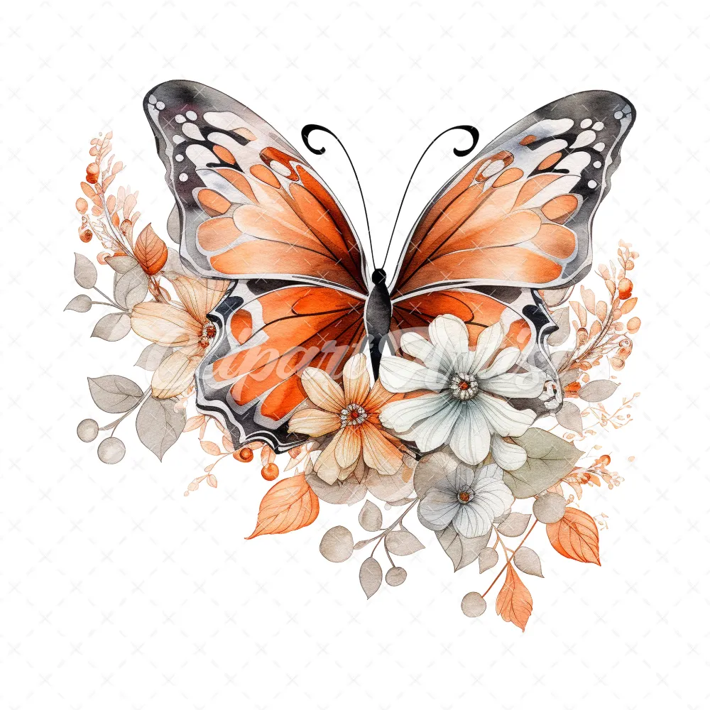 20 High-Quality Orange Silver Butterfly Clipart – Butterfly digital watercolor JPG instant download for commercial use – Digital download