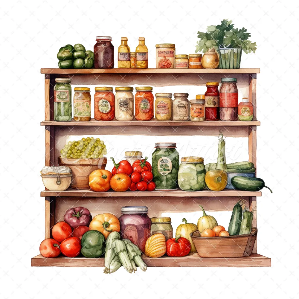 20 High-Quality Pantries Clipart – Pantries digital watercolor JPG instant download for commercial use – Digital download