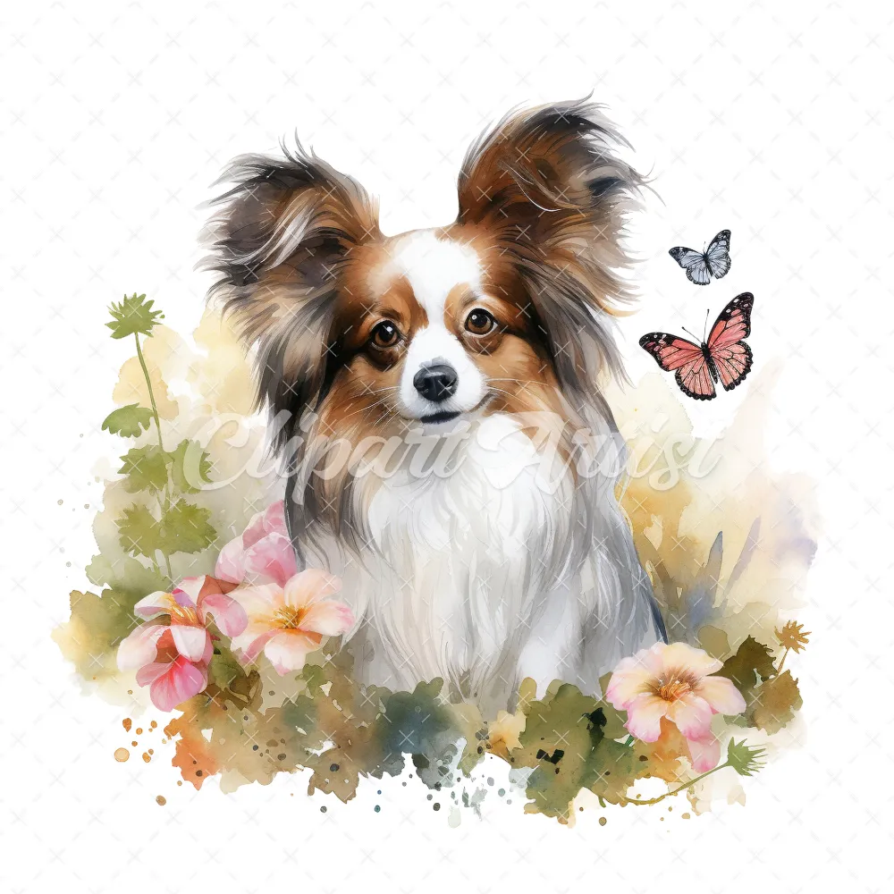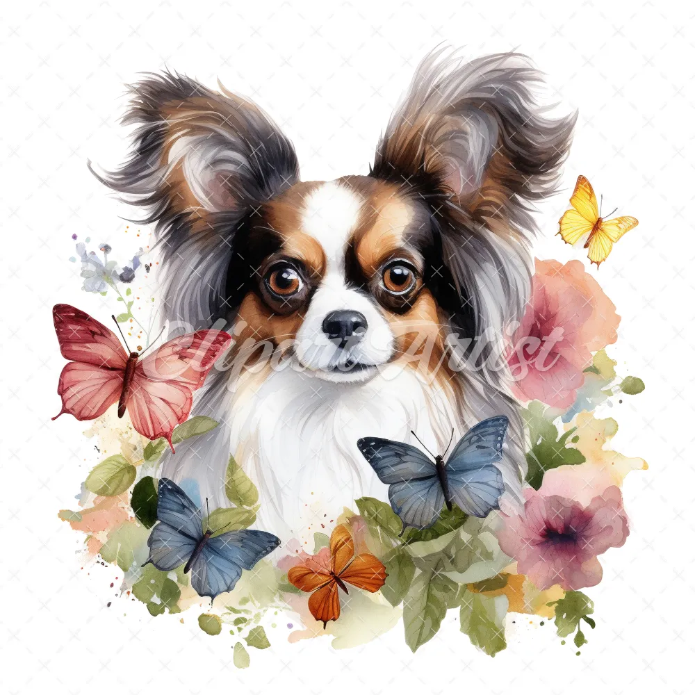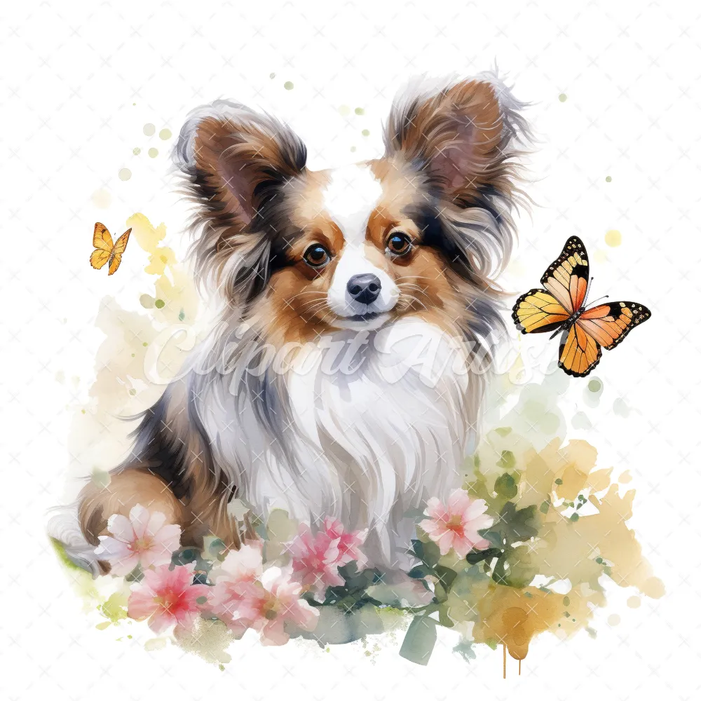 20 High-Quality Papillon in Garden Clipart – Papillon digital watercolor JPG instant download for commercial use – Digital download