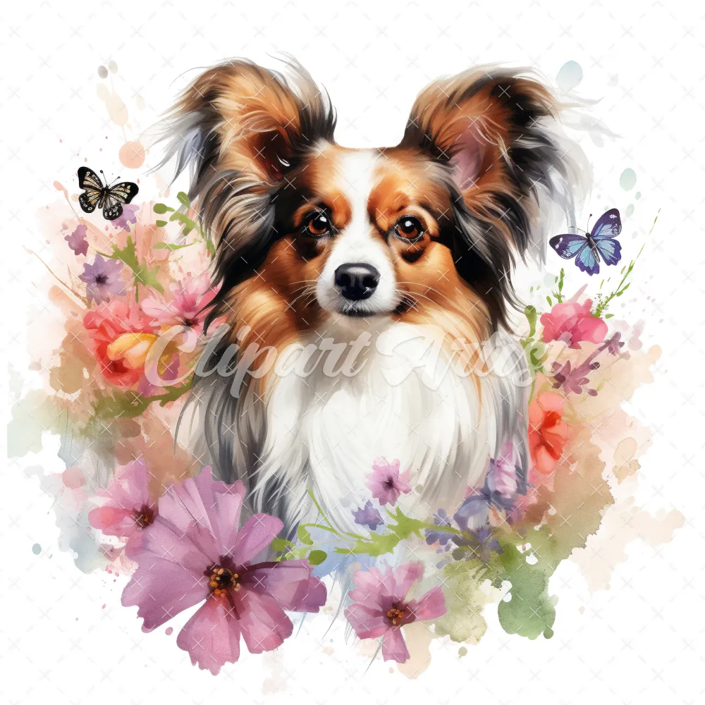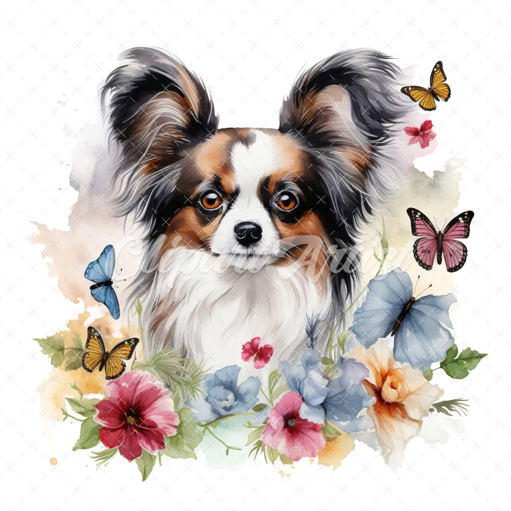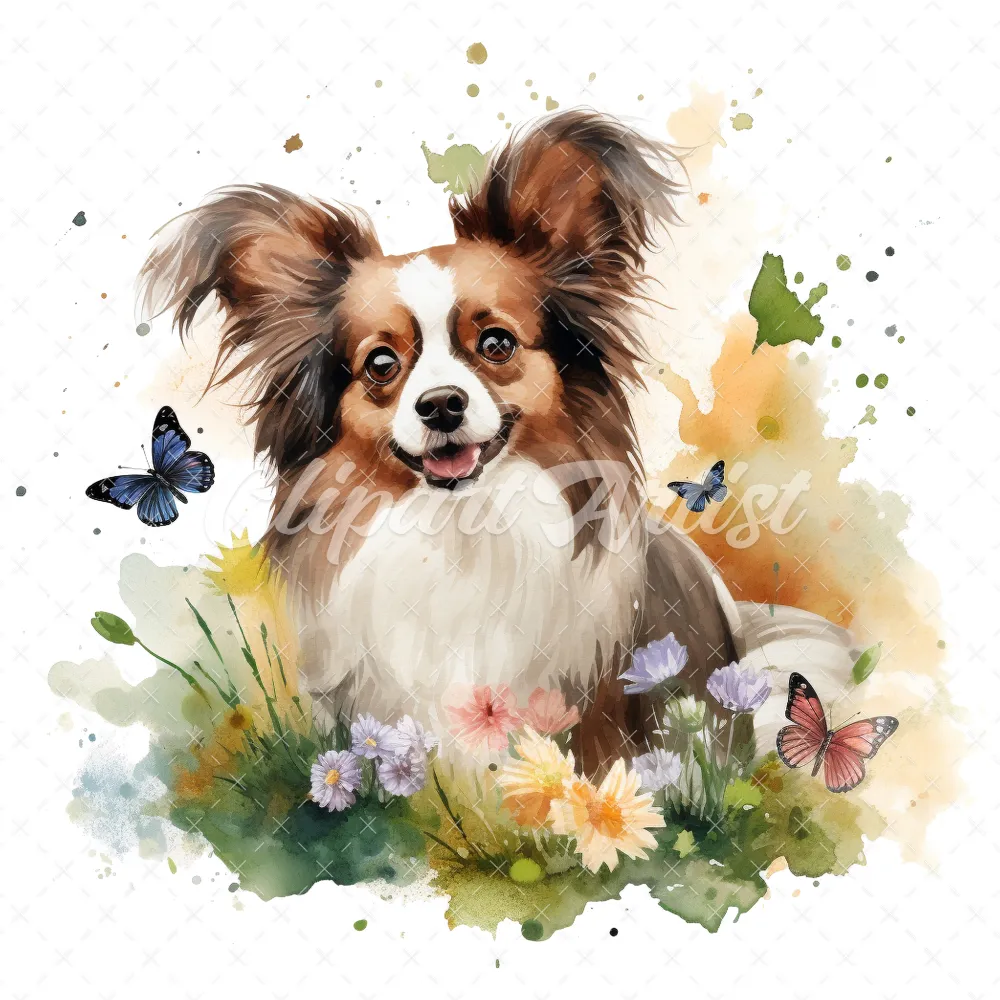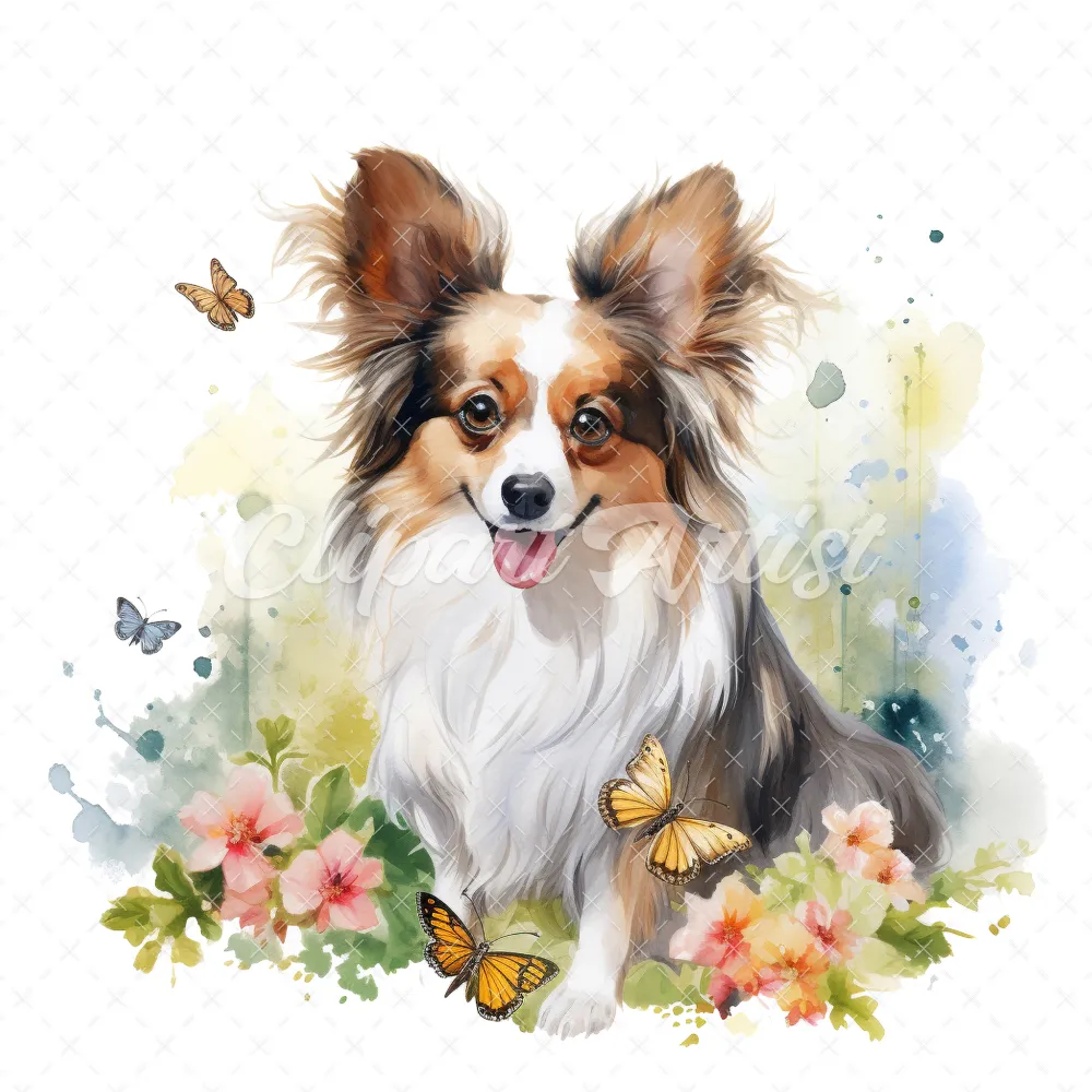 20 High-Quality Papillon in Garden Clipart – Papillon digital watercolor JPG instant download for commercial use – Digital download