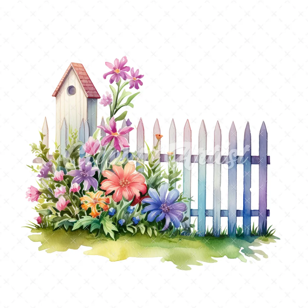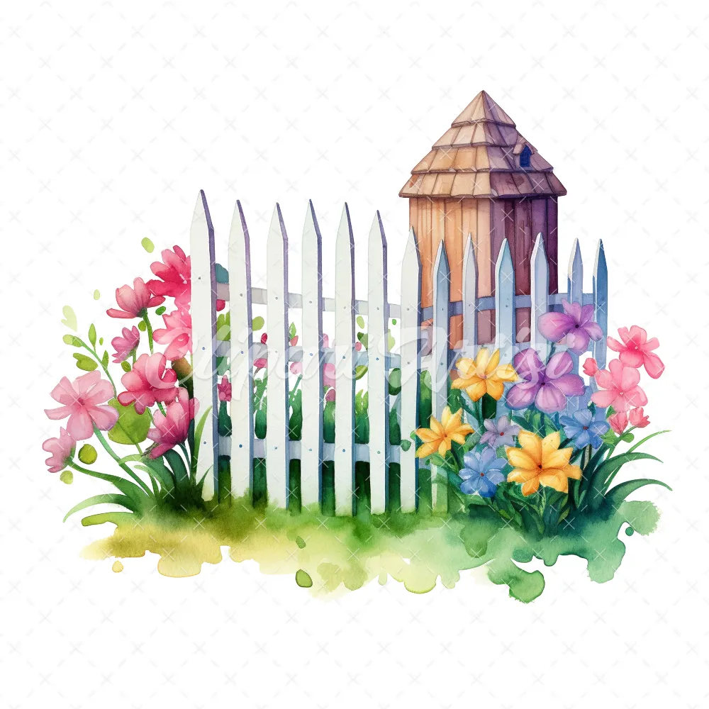 20 High-Quality Picket Fences Clipart – Picket fences digital watercolor JPG instant download for commercial use – Digital download