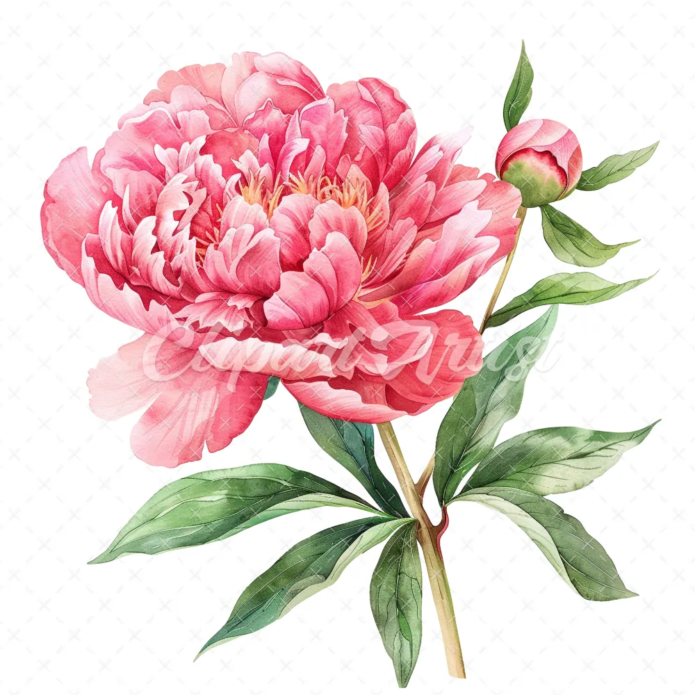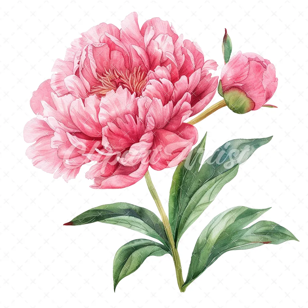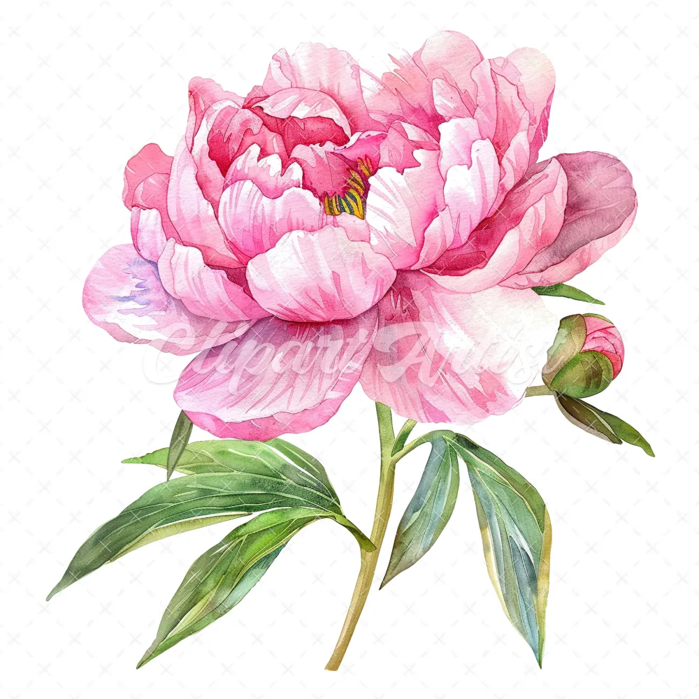 20 High-Quality Pink Peony Clipart – Pink peony digital watercolor JPG instant download for commercial use – Digital download
