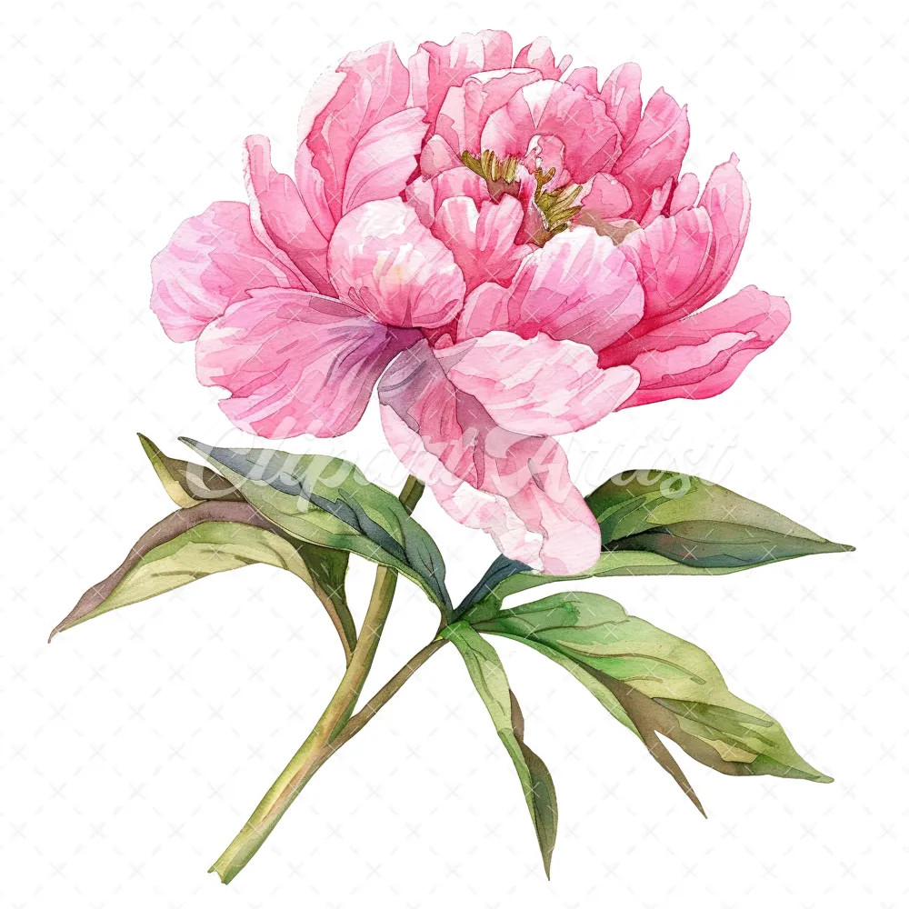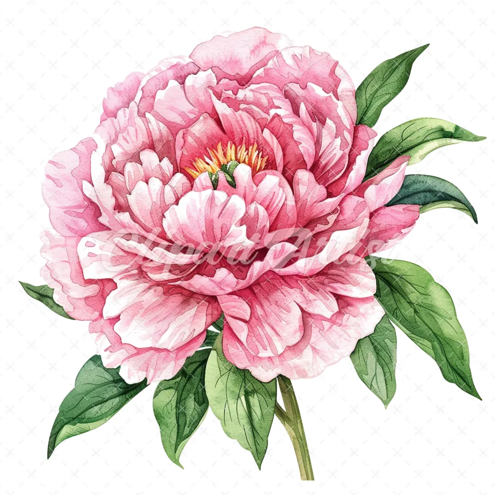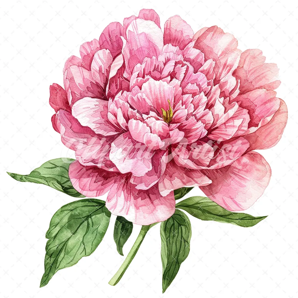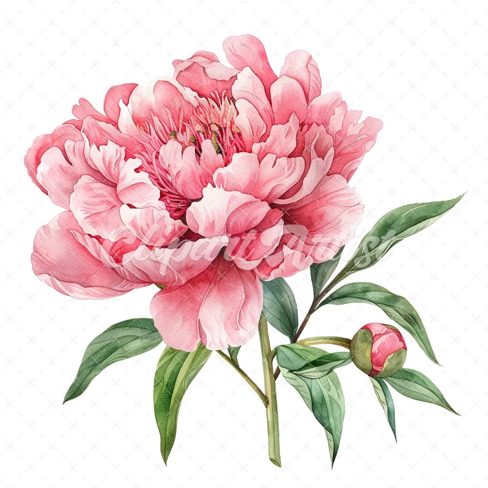 20 High-Quality Pink Peony Clipart – Pink peony digital watercolor JPG instant download for commercial use – Digital download