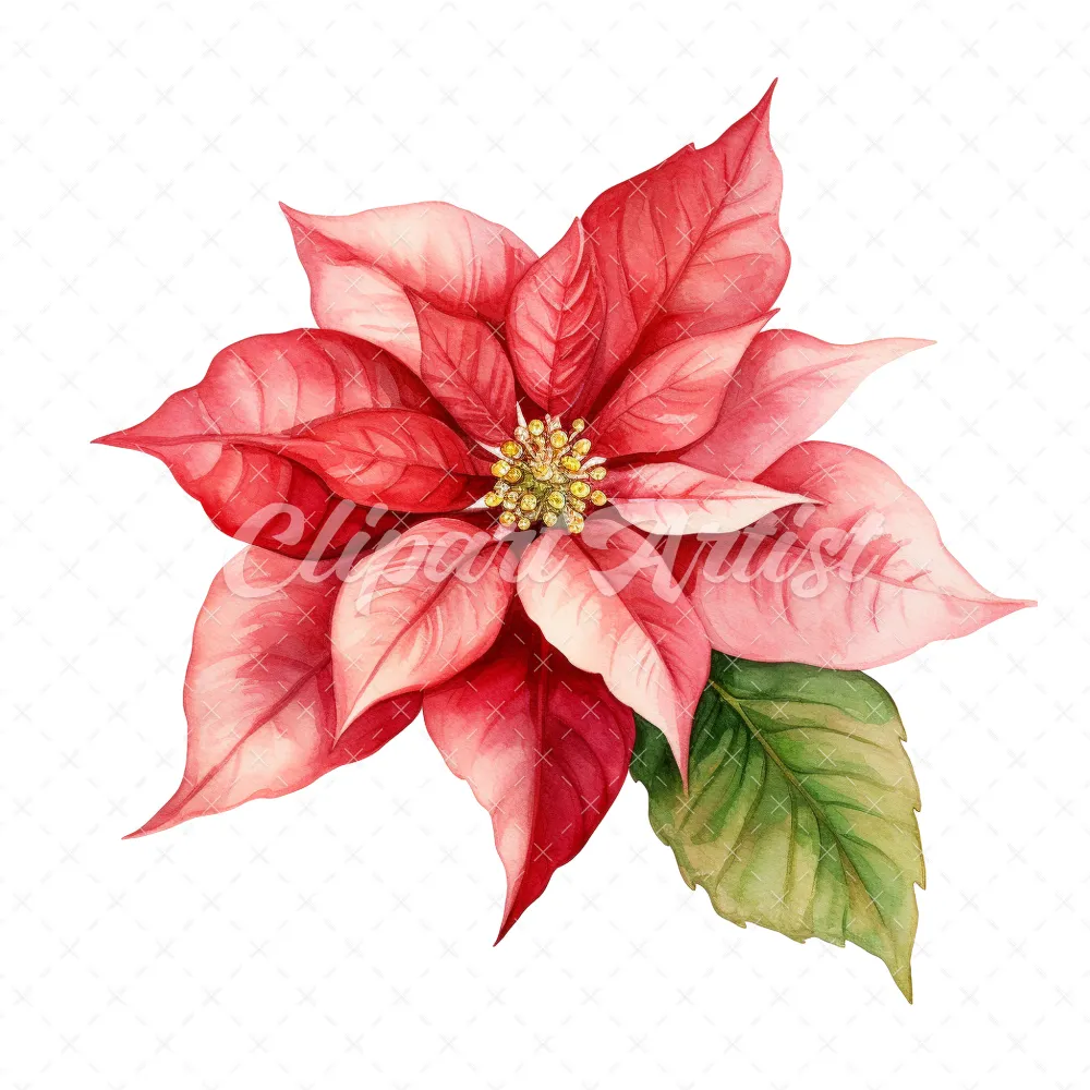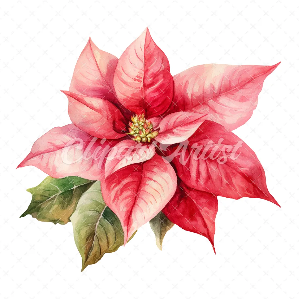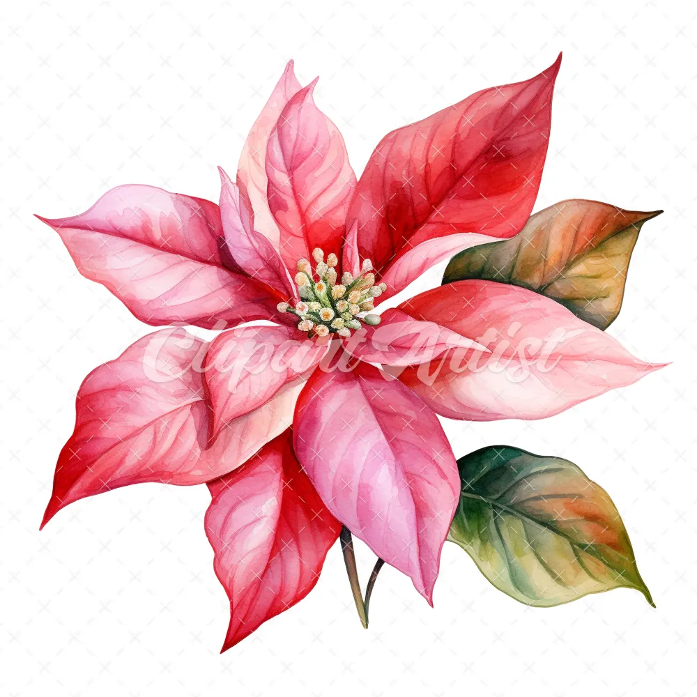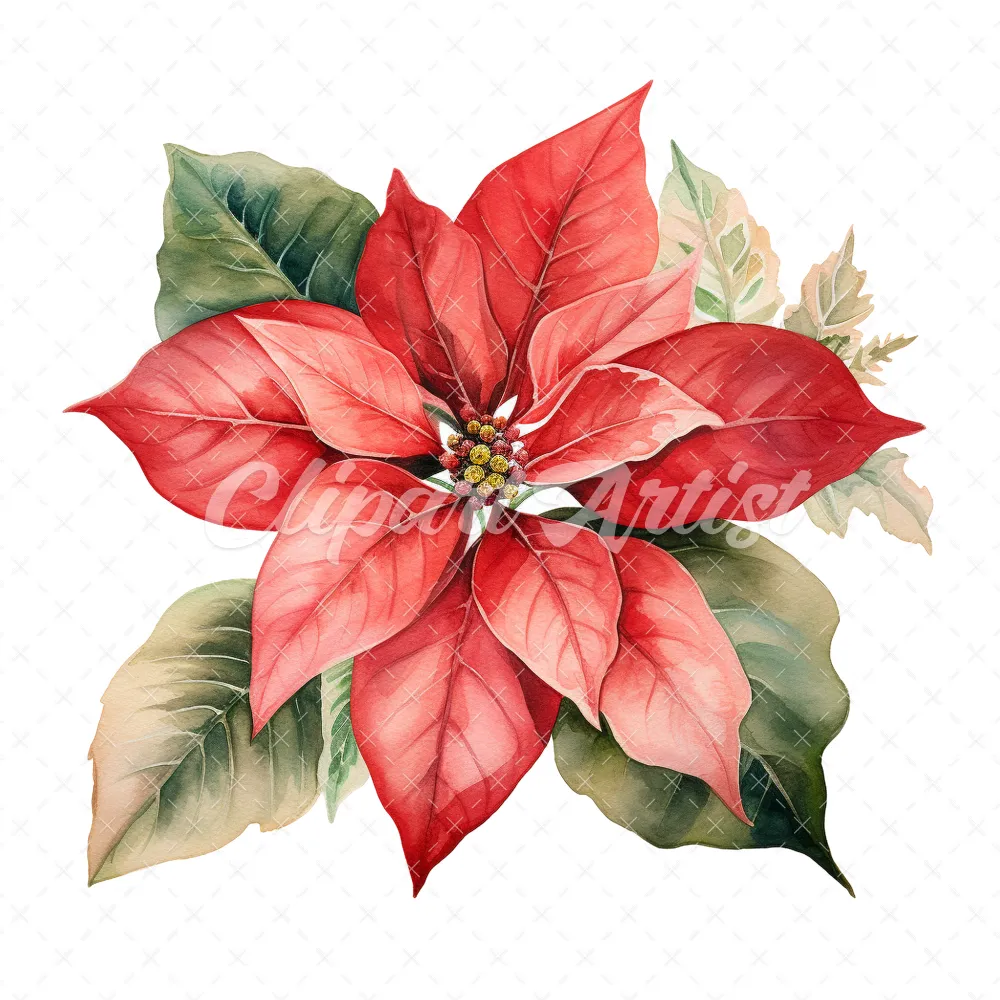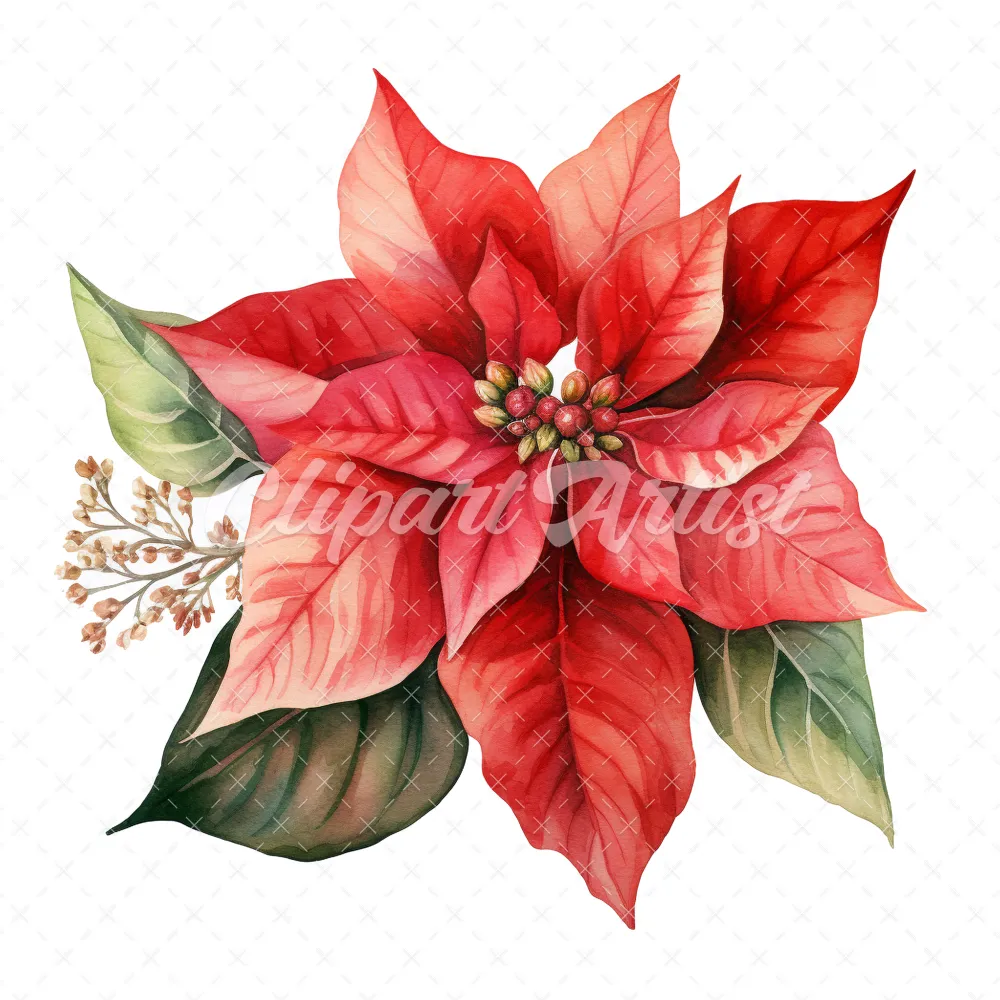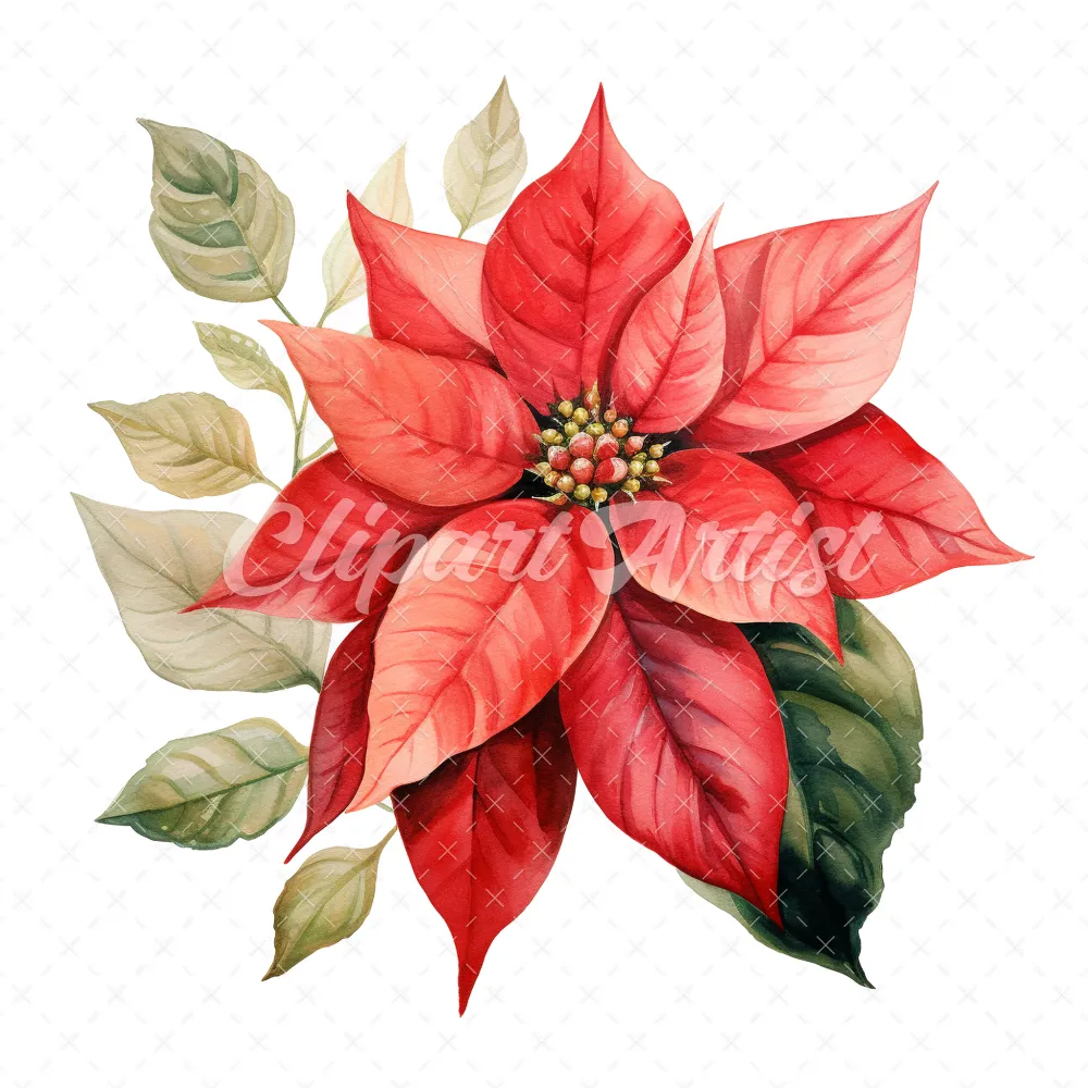 20 High-Quality Poinsettia Clipart – Poinsettia flower digital watercolor JPG instant download for commercial use – Digital download
