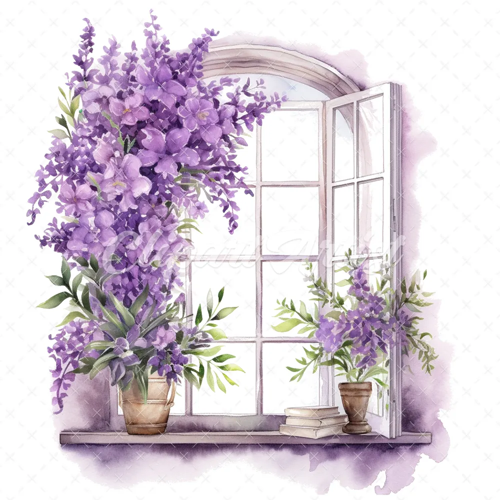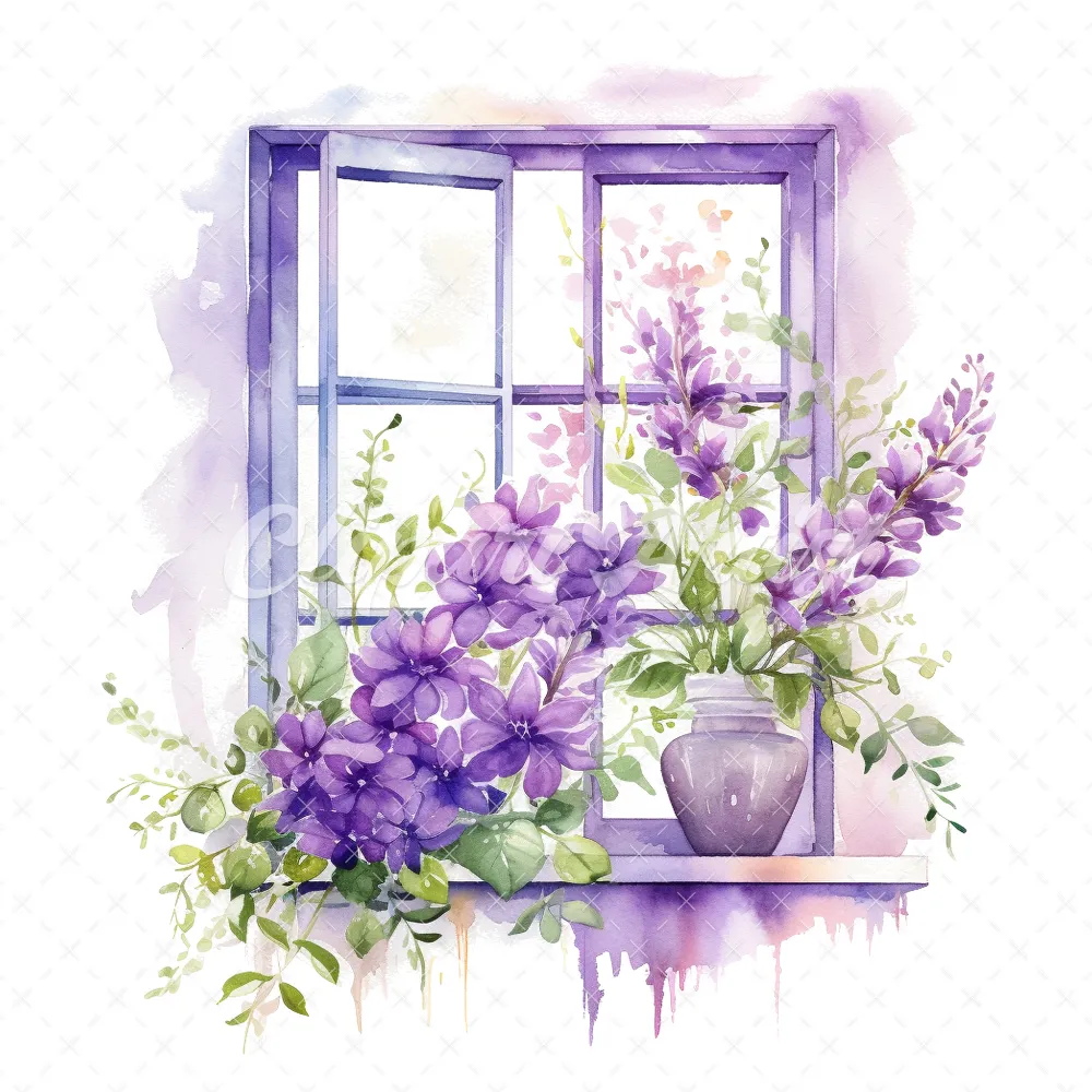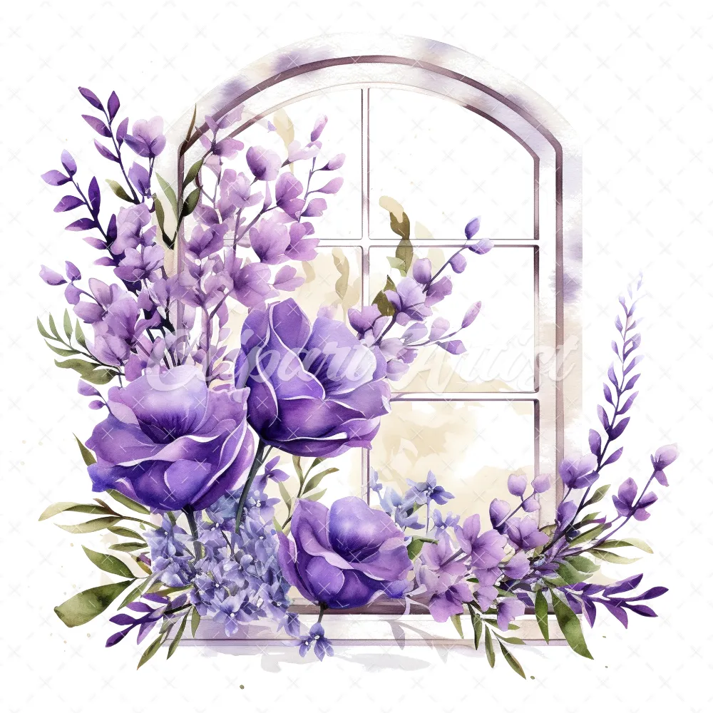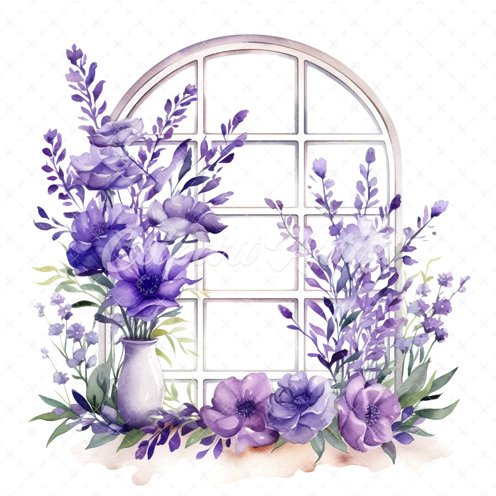 20 High-Quality Purple Floral Windows Clipart – Purple windows digital watercolor JPG instant download for commercial use – Digital download