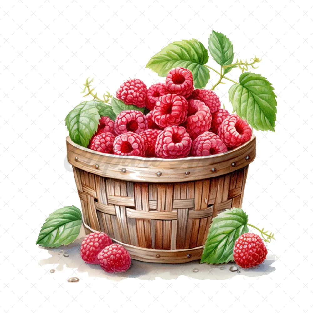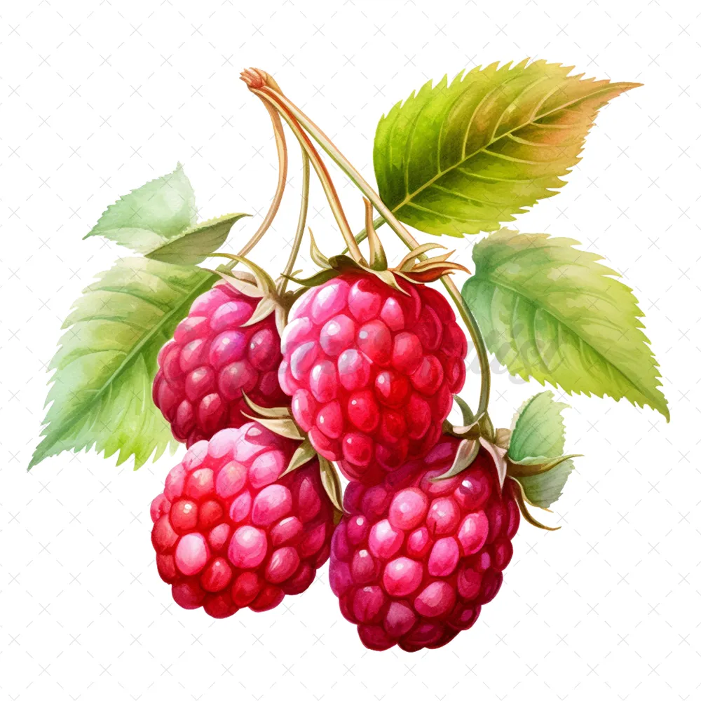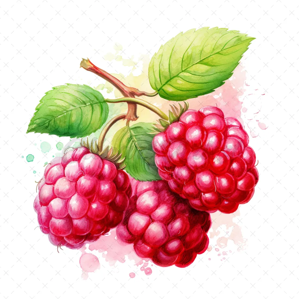20 High-Quality Raspberries Clipart – Raspberries digital watercolor JPG instant download for commercial use – Digital download