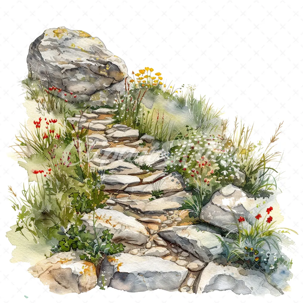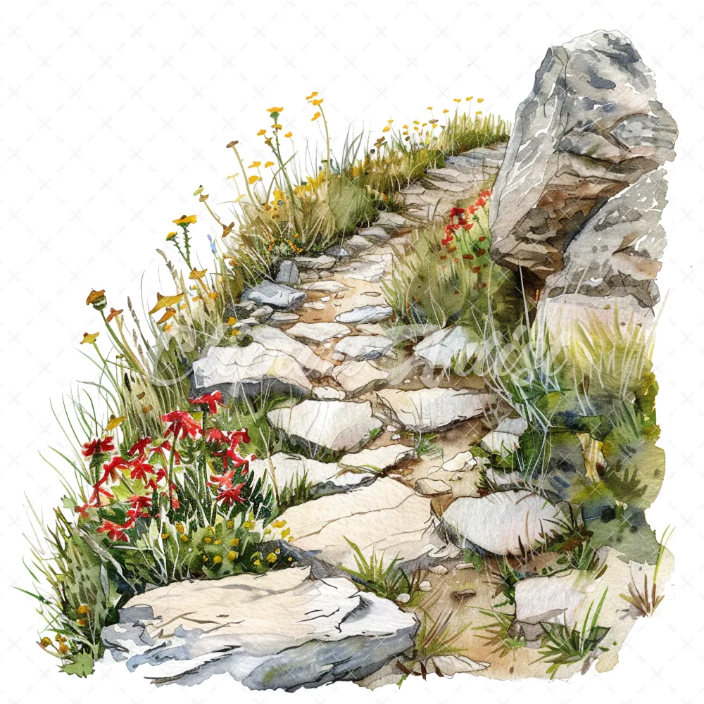 20 High-Quality Rocky Path Clipart – Rocky path digital watercolor JPG instant download for commercial use – Digital download