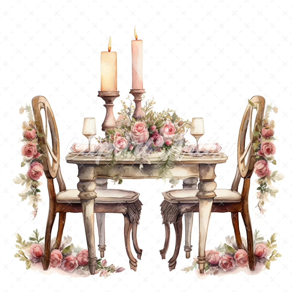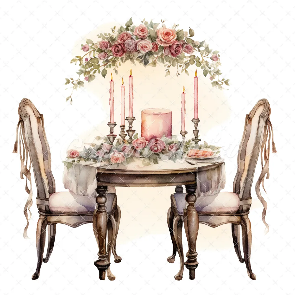 20 High-Quality Romantic Tables Clipart – Romantic tables digital watercolor JPG instant download for commercial use – Digital download