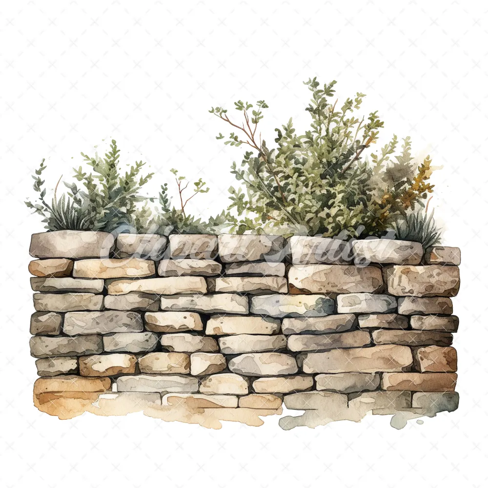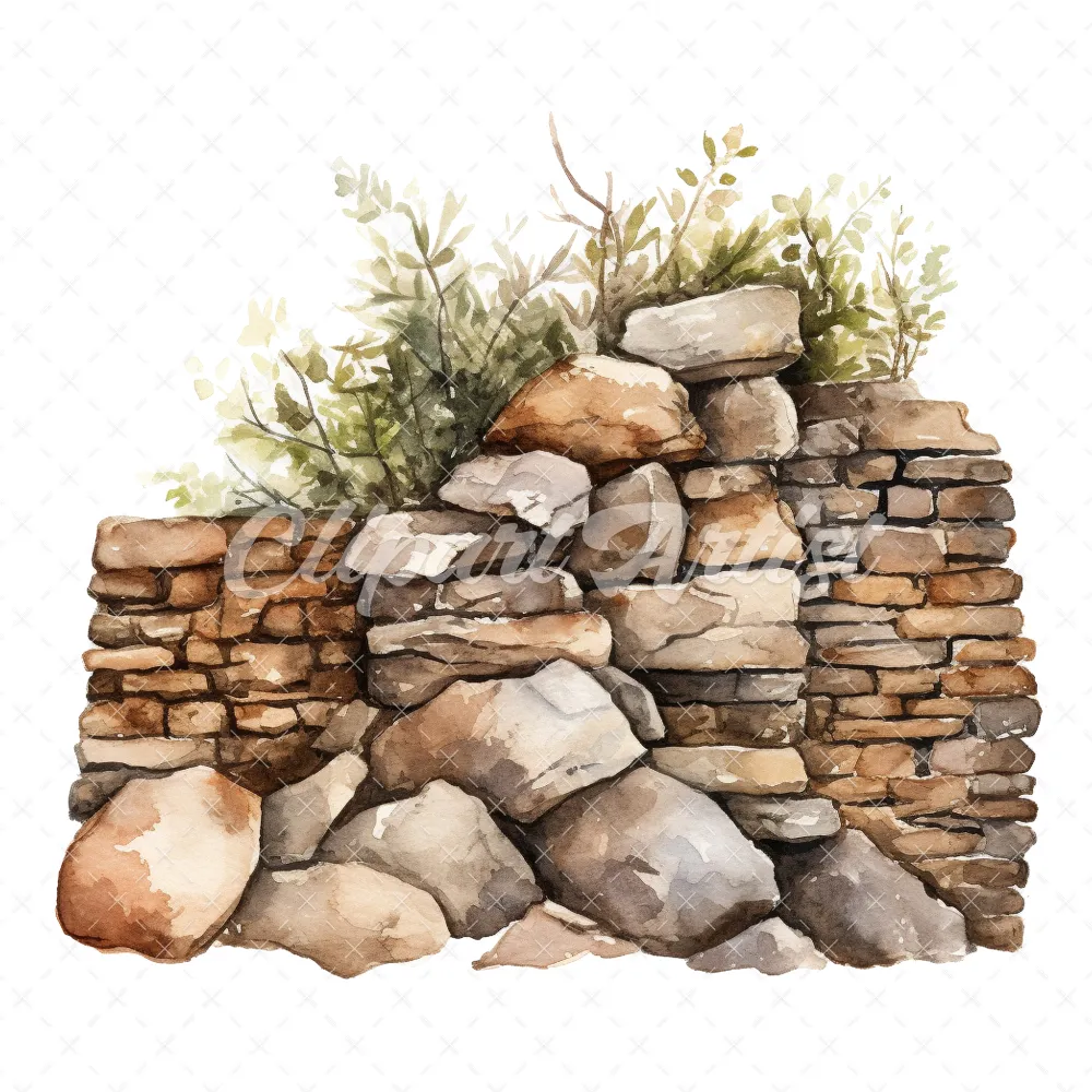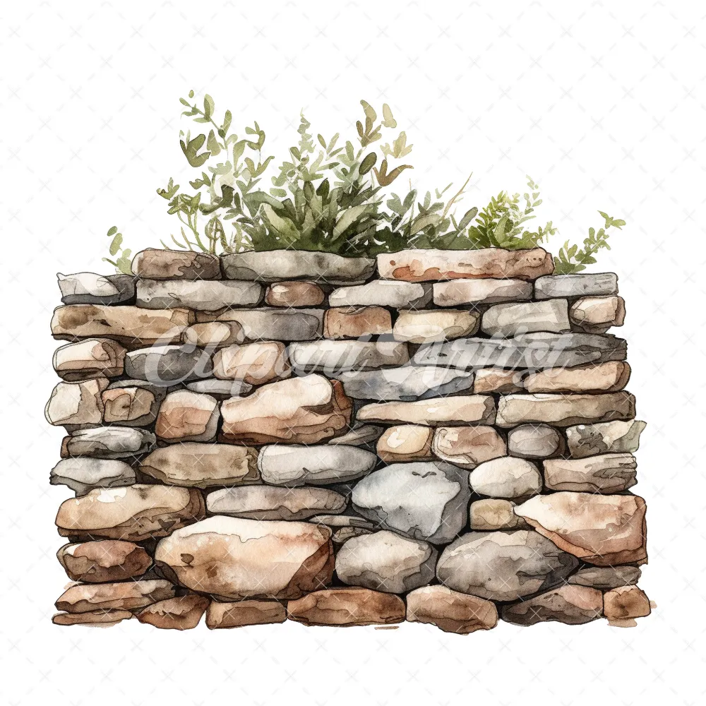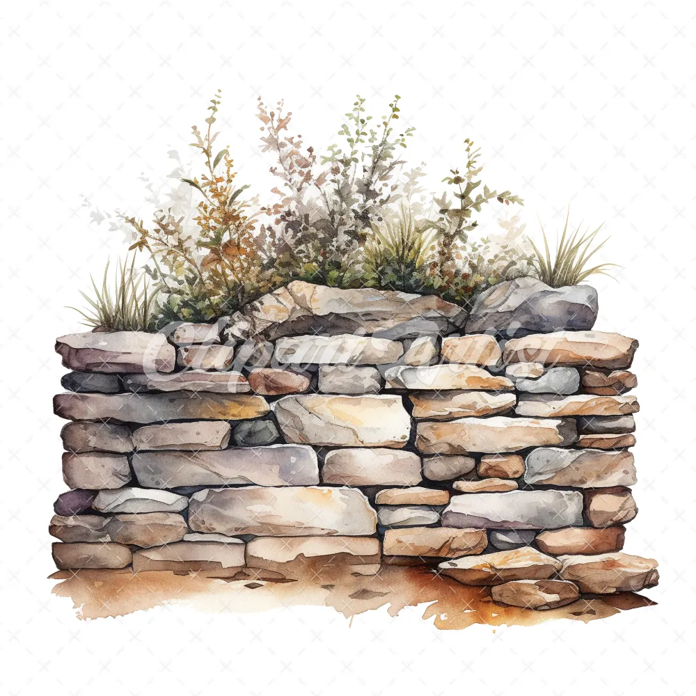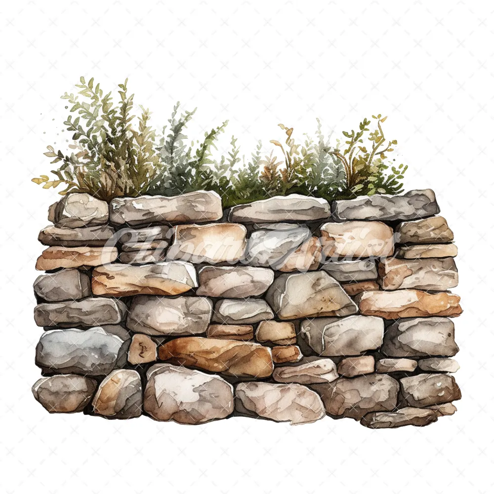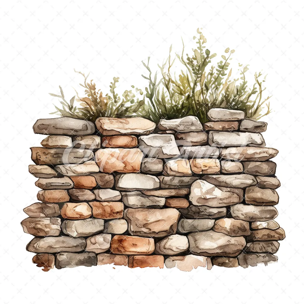 20 High-Quality Rustic Stone Wall Clipart – Rustic stone wall digital watercolor JPG instant download for commercial use – Digital download