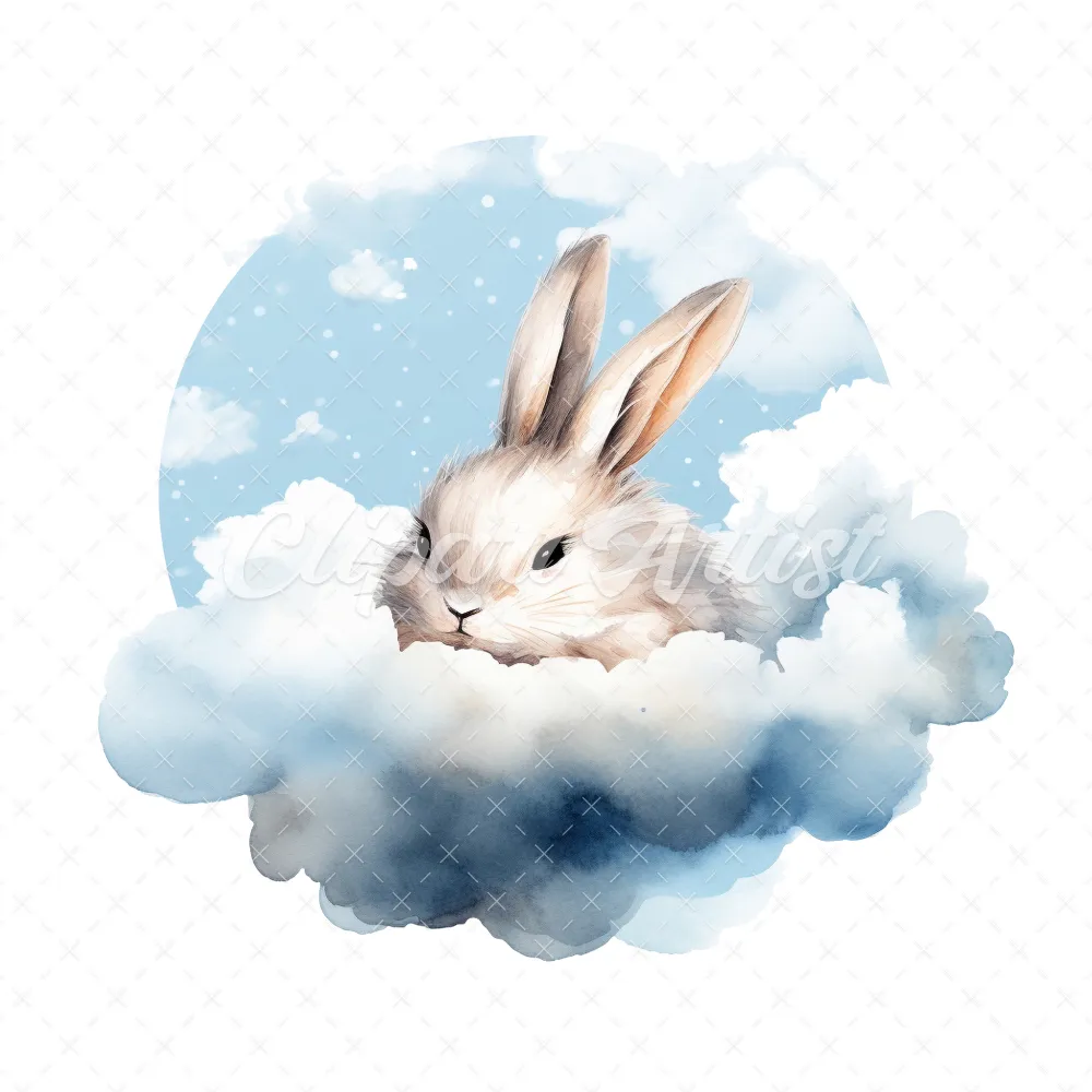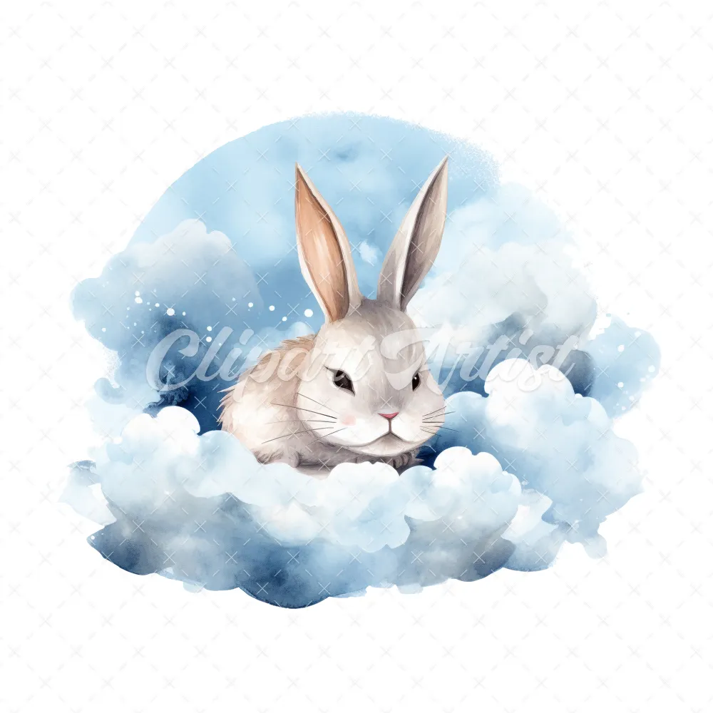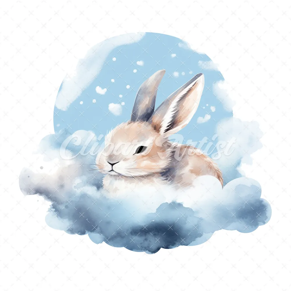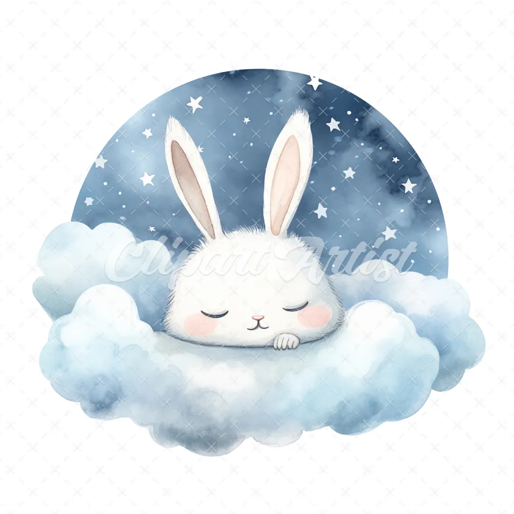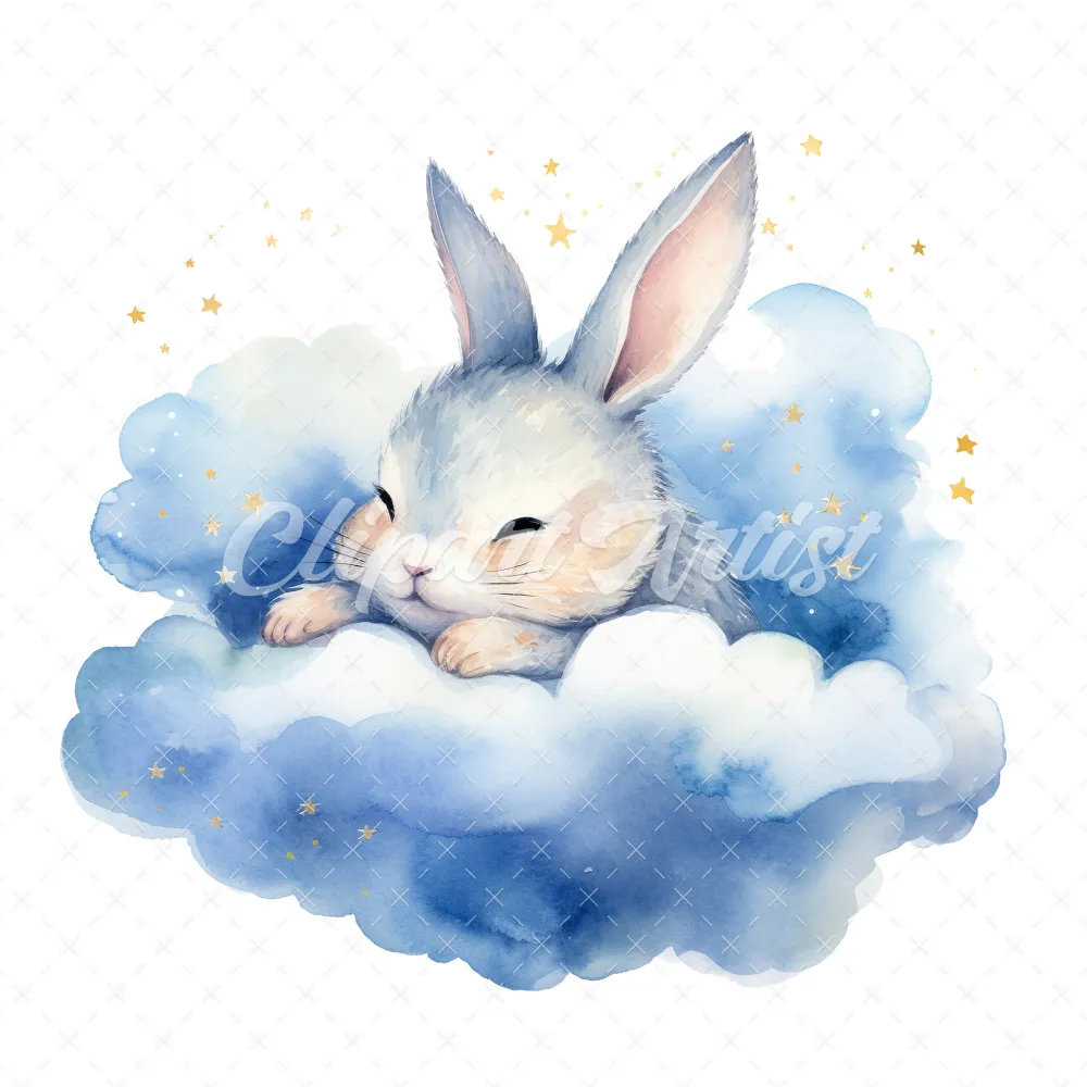 20 High-Quality Sleeping Bunny Clipart – Sleeping bunny digital watercolor JPG instant download for commercial use – Digital download
