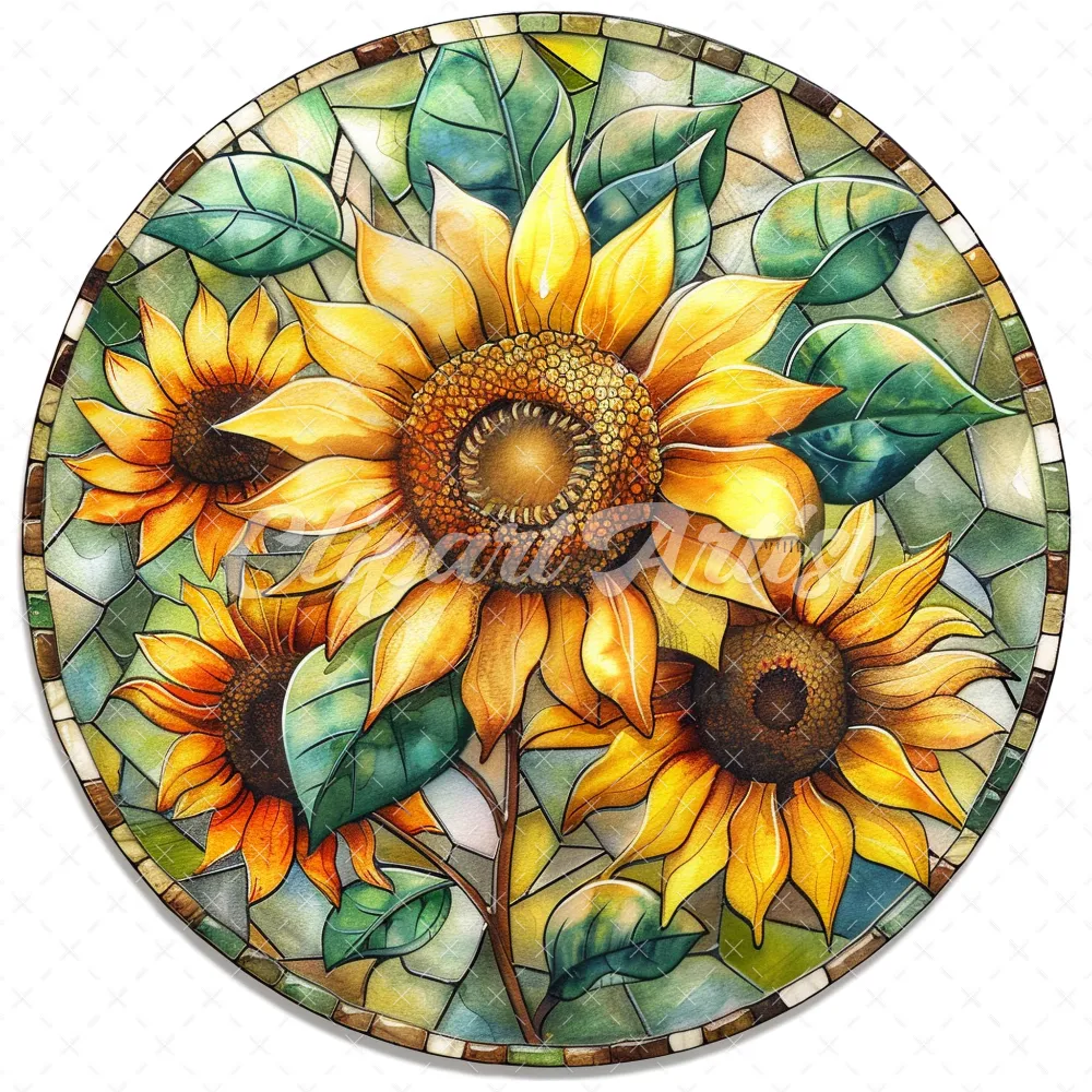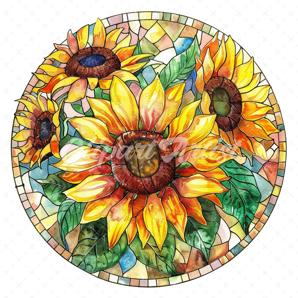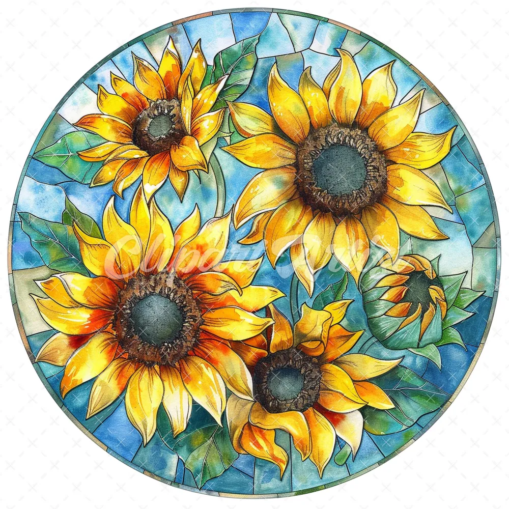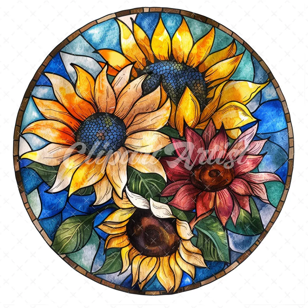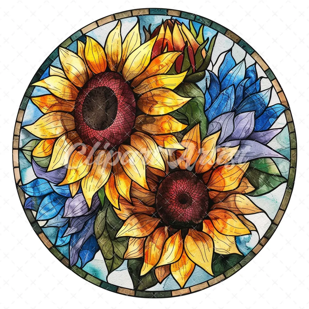20 High-Quality Stained Glass Sunflowers Clipart – Sunflowers digital watercolor JPG instant download for commercial use – Digital download