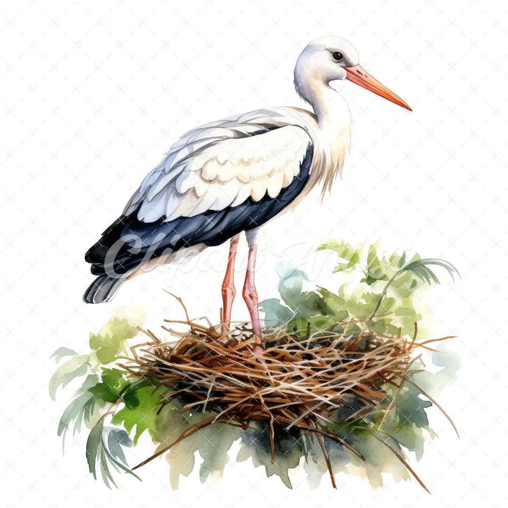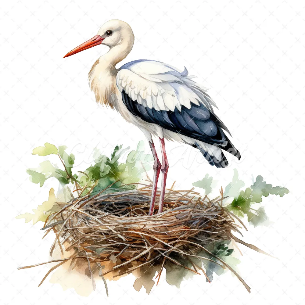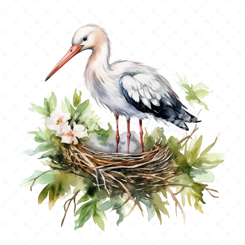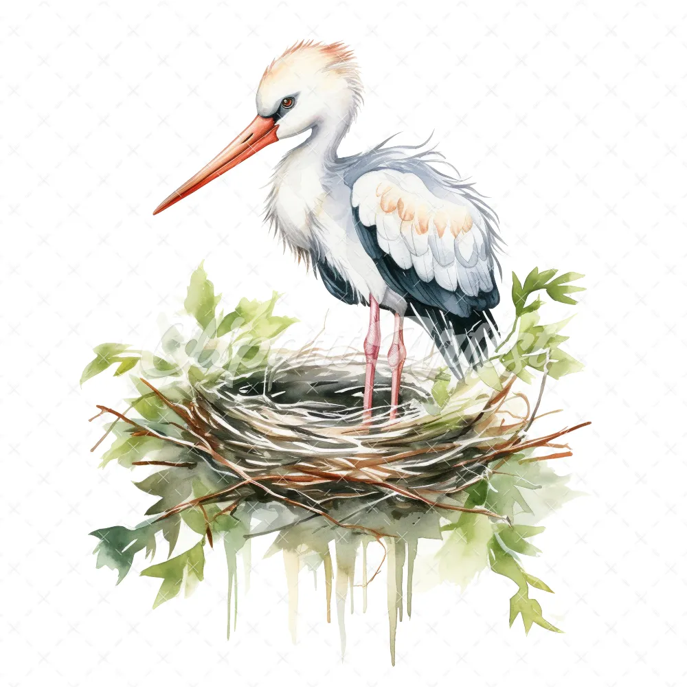20 High-Quality Stork Nest Clipart – Stork birds digital watercolor JPG instant download for commercial use – Digital download