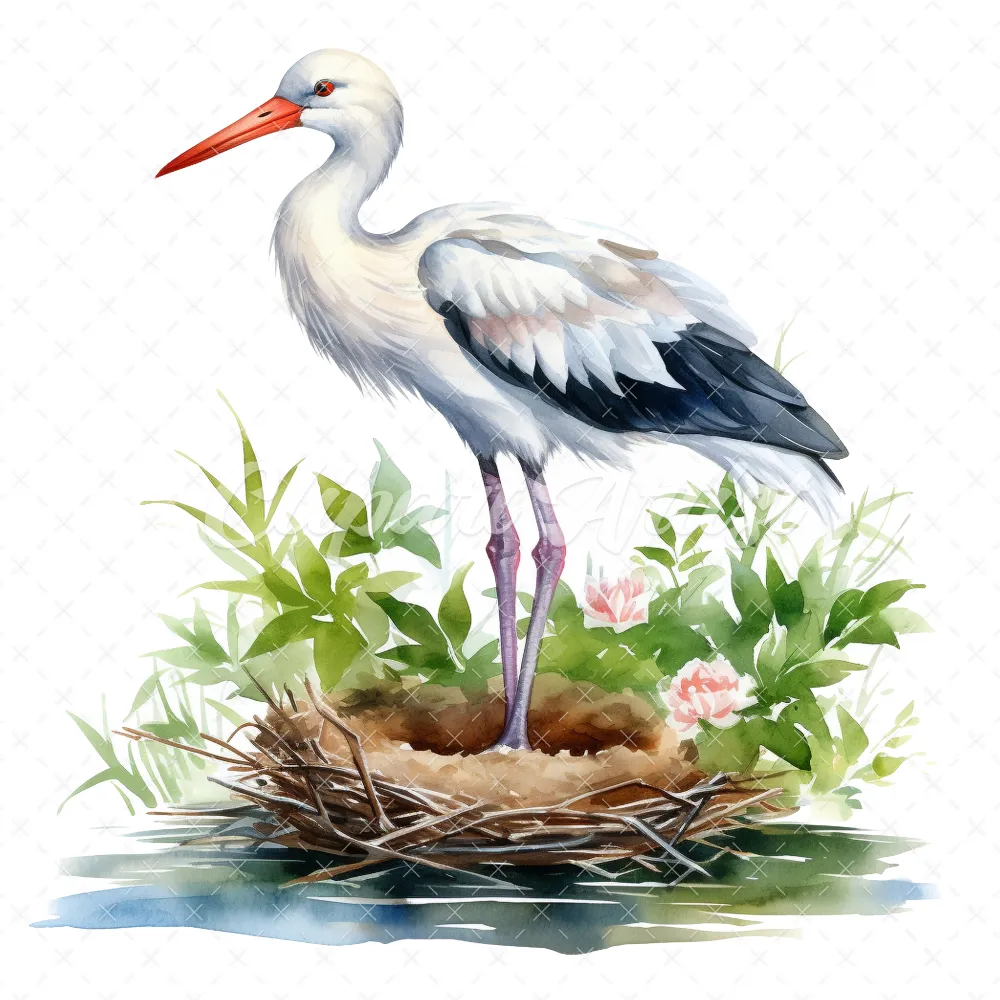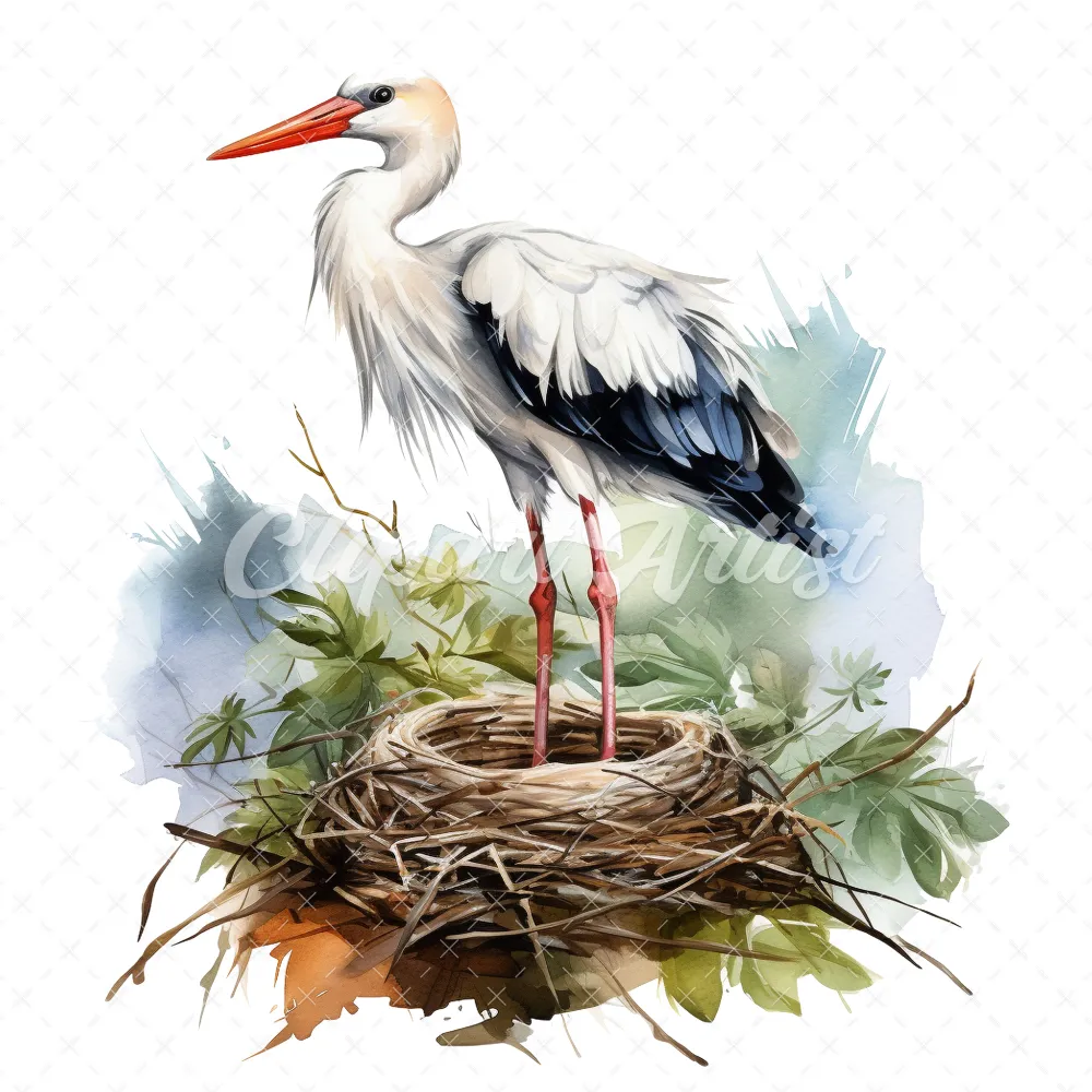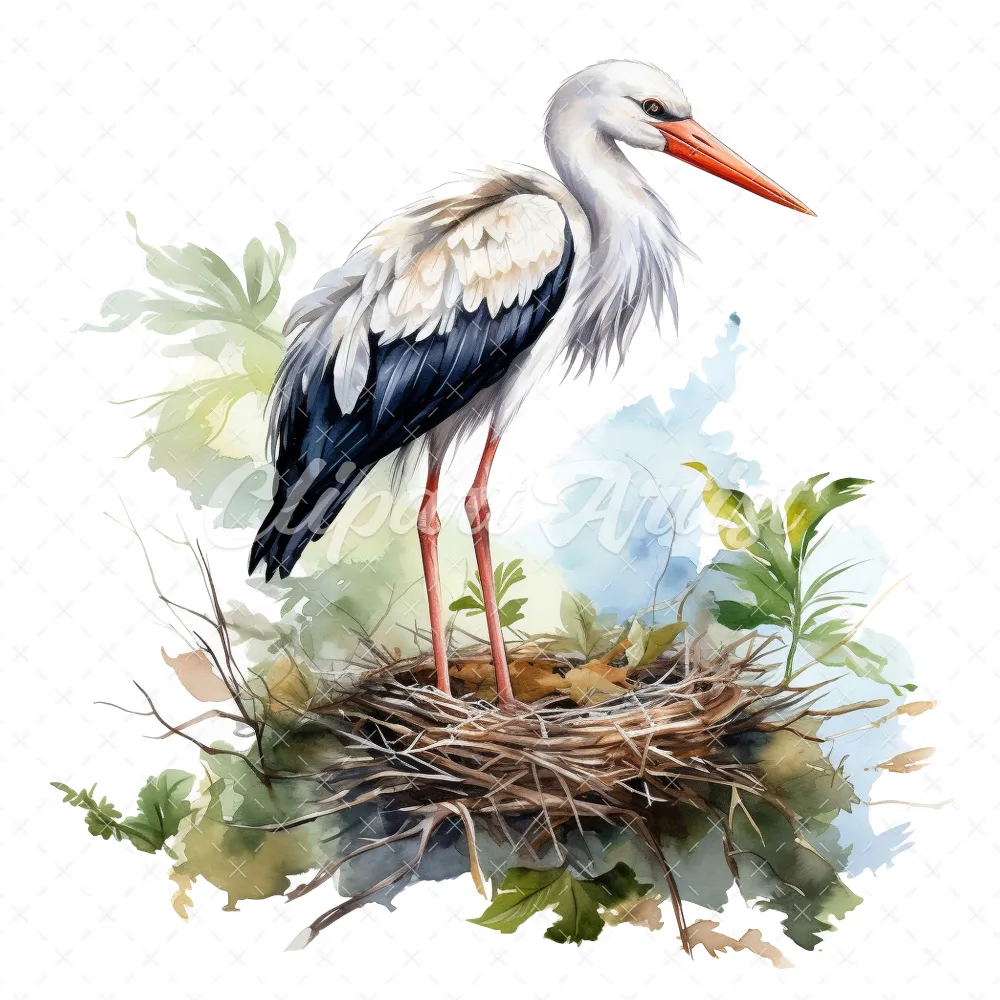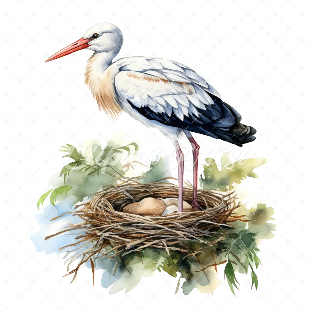 20 High-Quality Stork Nest Clipart – Stork birds digital watercolor JPG instant download for commercial use – Digital download