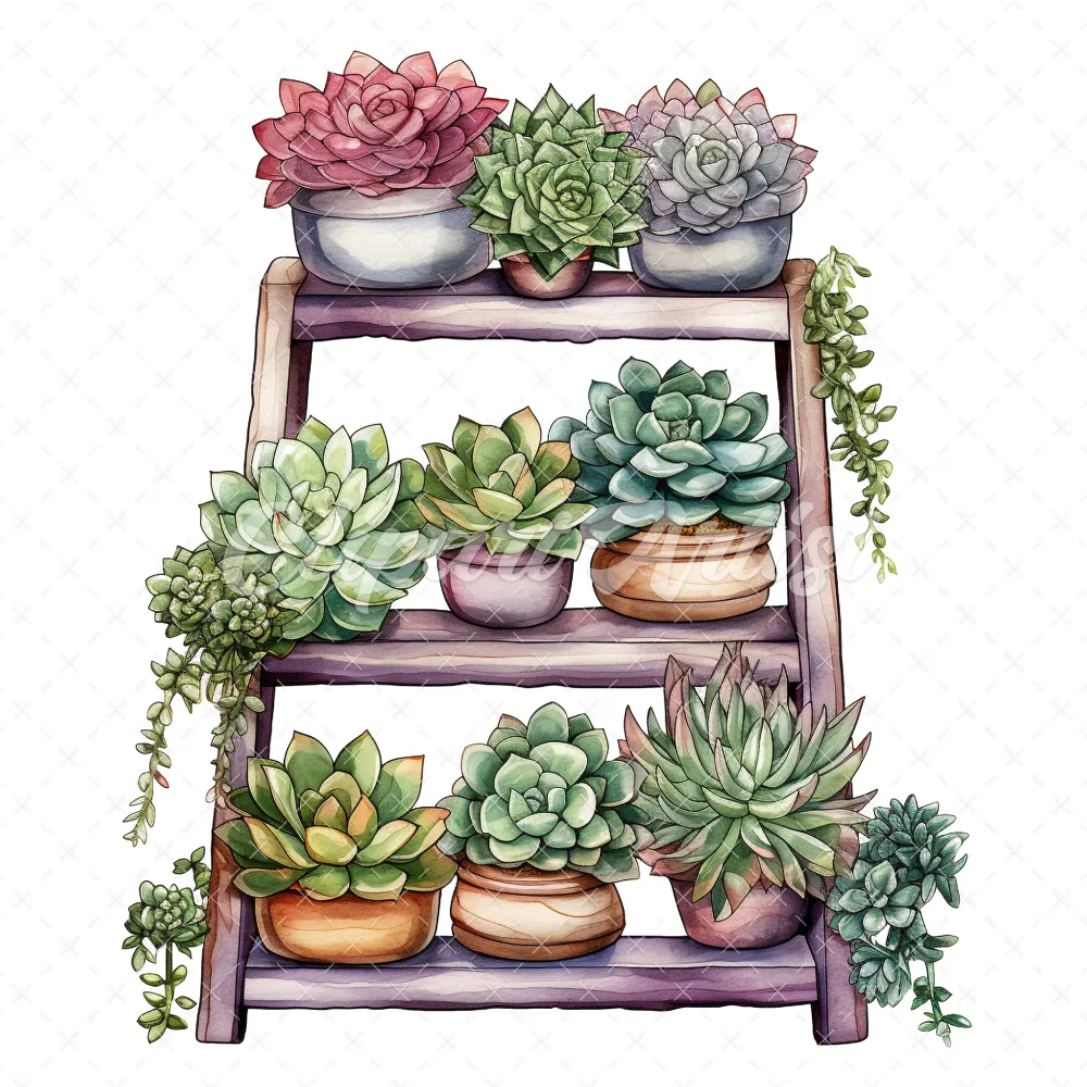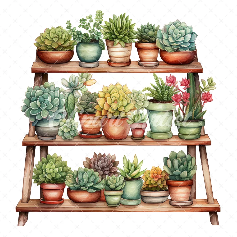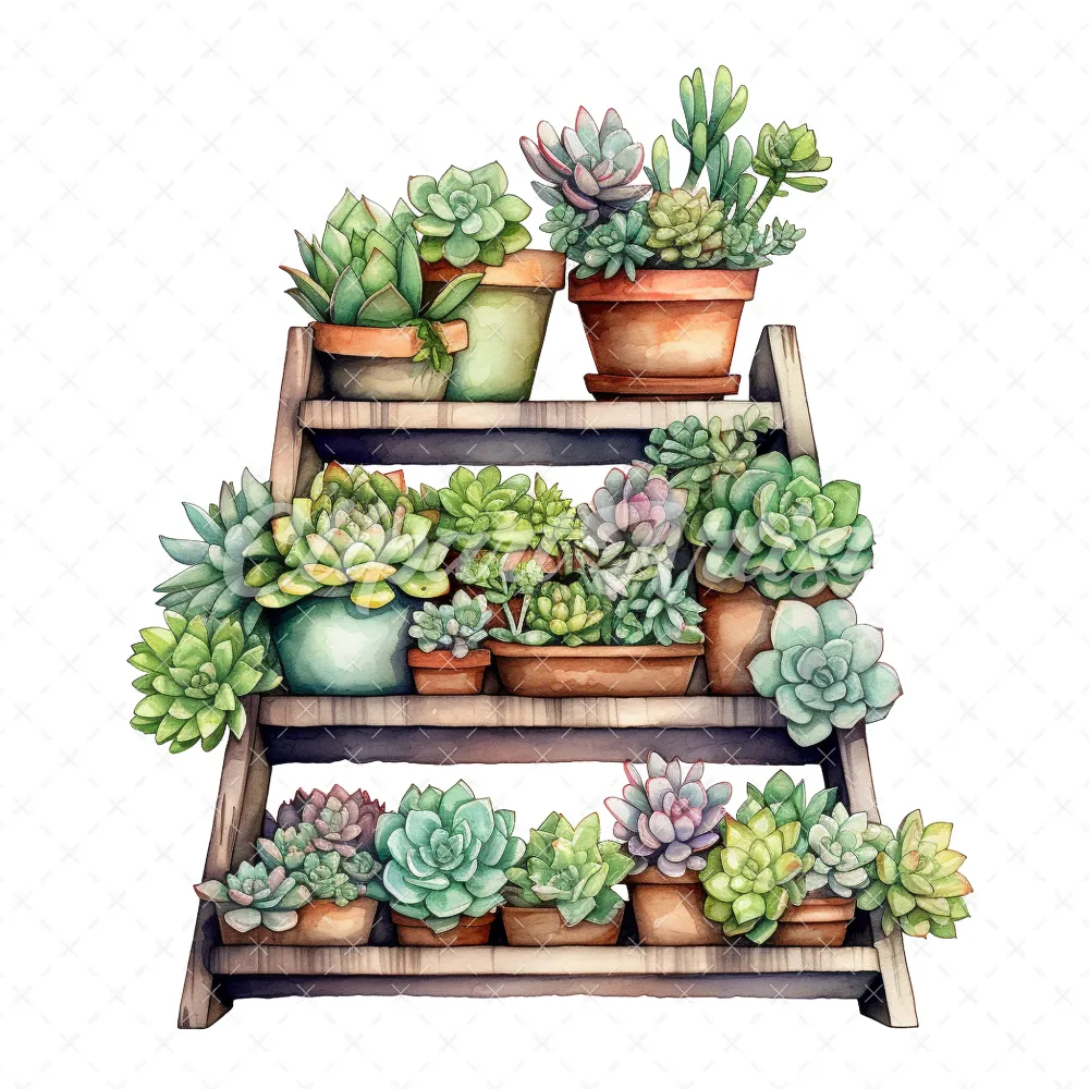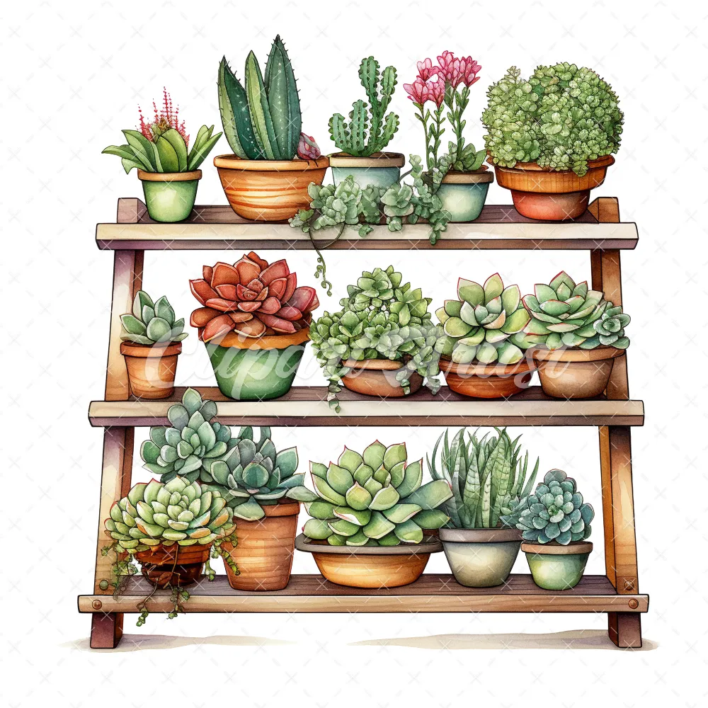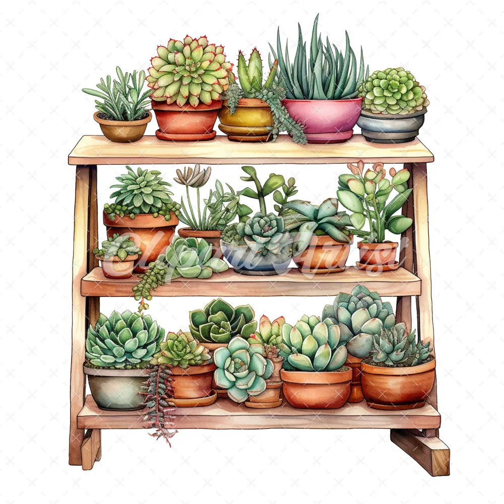 20 High-Quality Succulent Rack Clipart – Succulent rack digital watercolor JPG instant download for commercial use – Digital download