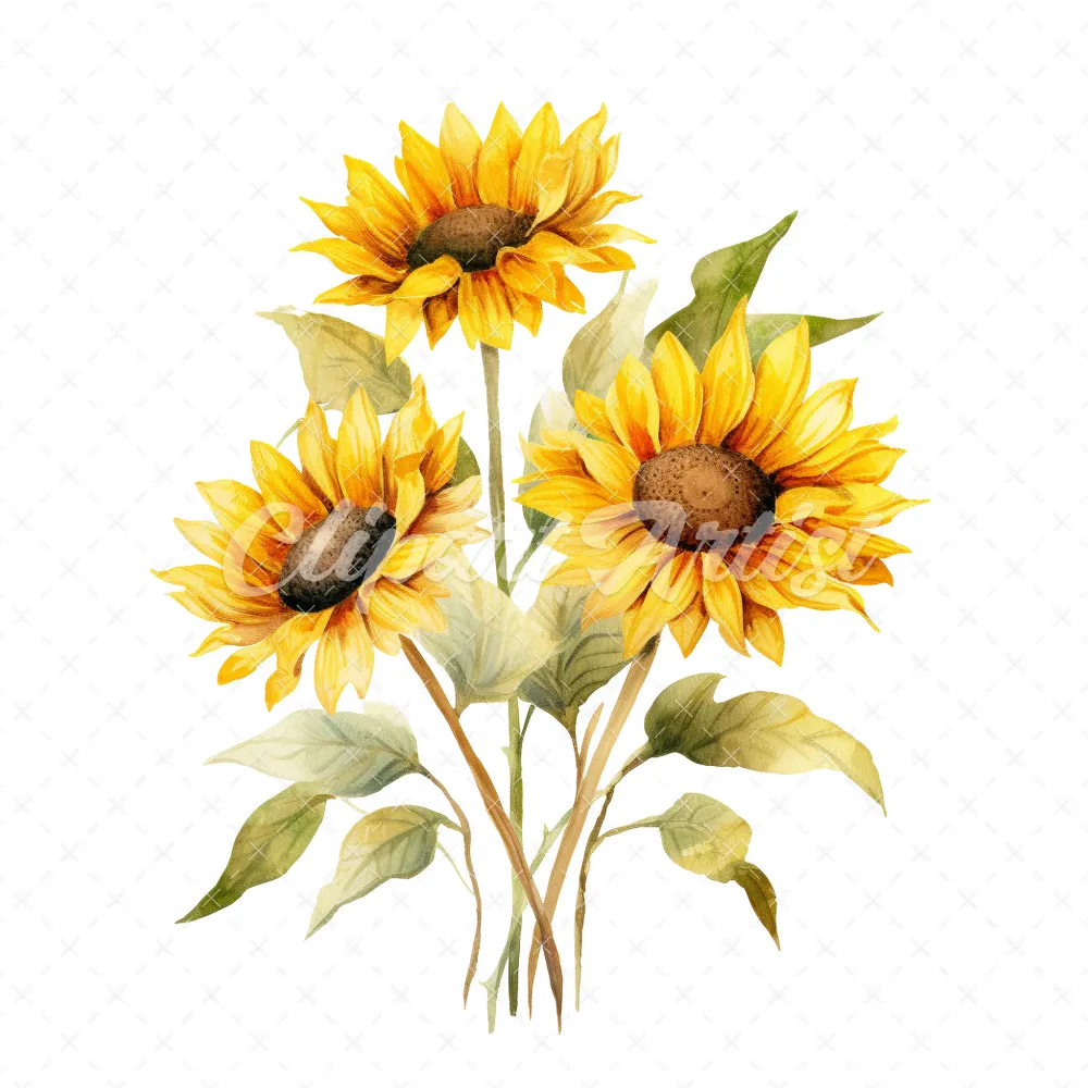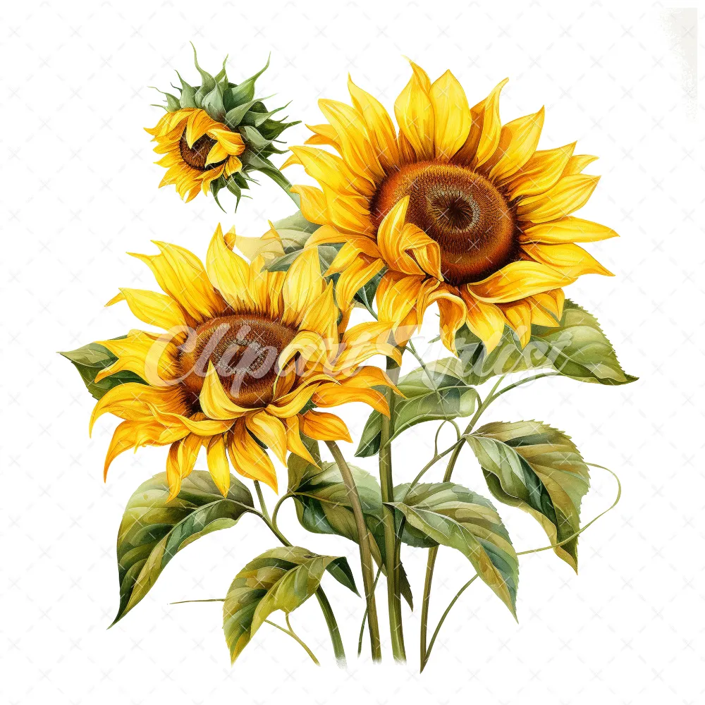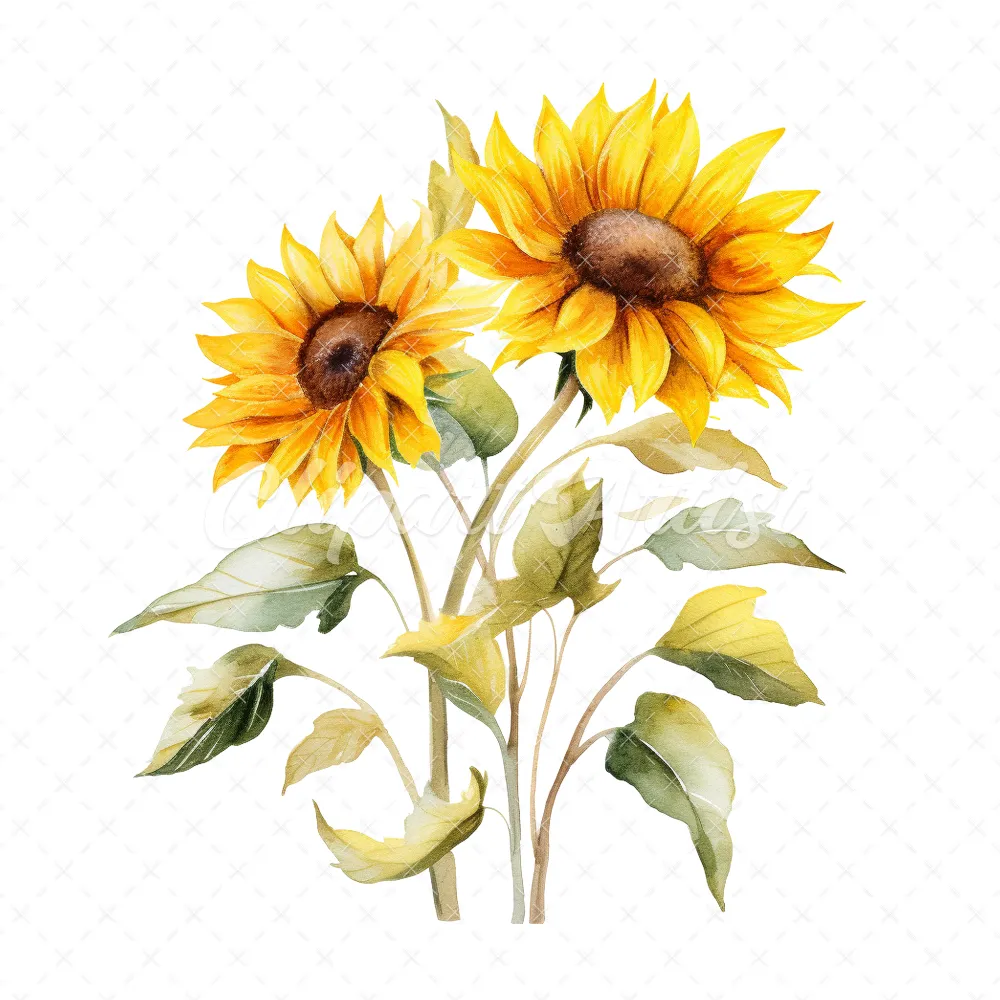 20 High-Quality Sunflower Clipart – Sunflower digital watercolor JPG instant download for commercial use – Digital download