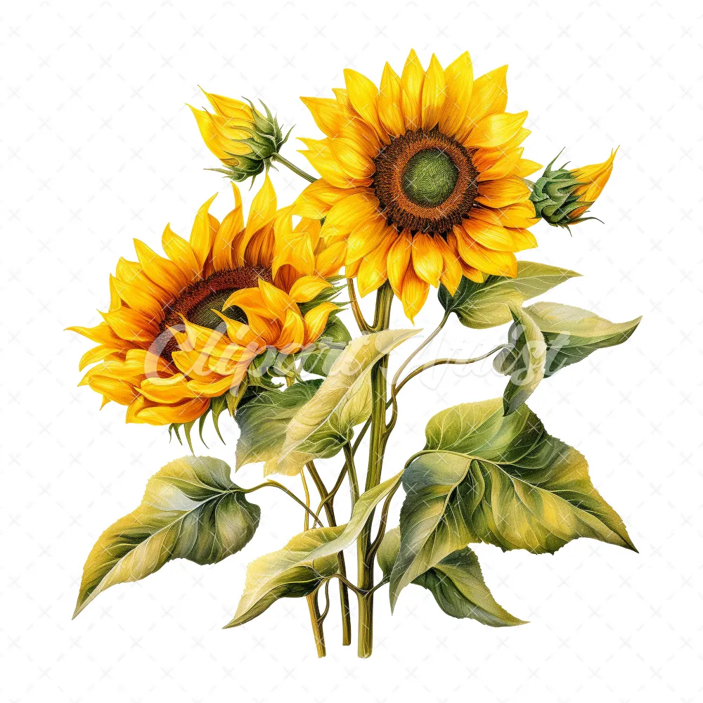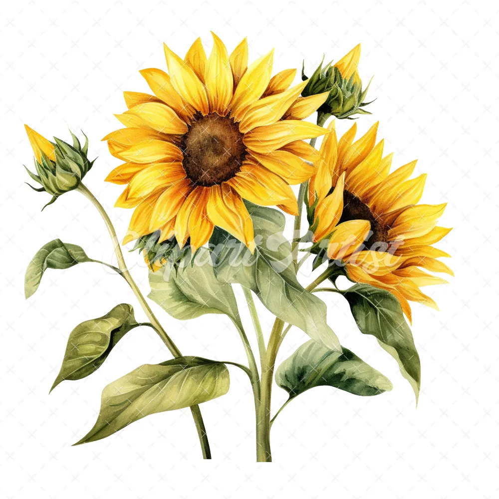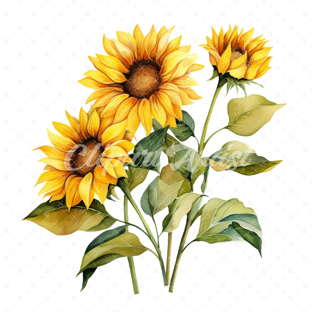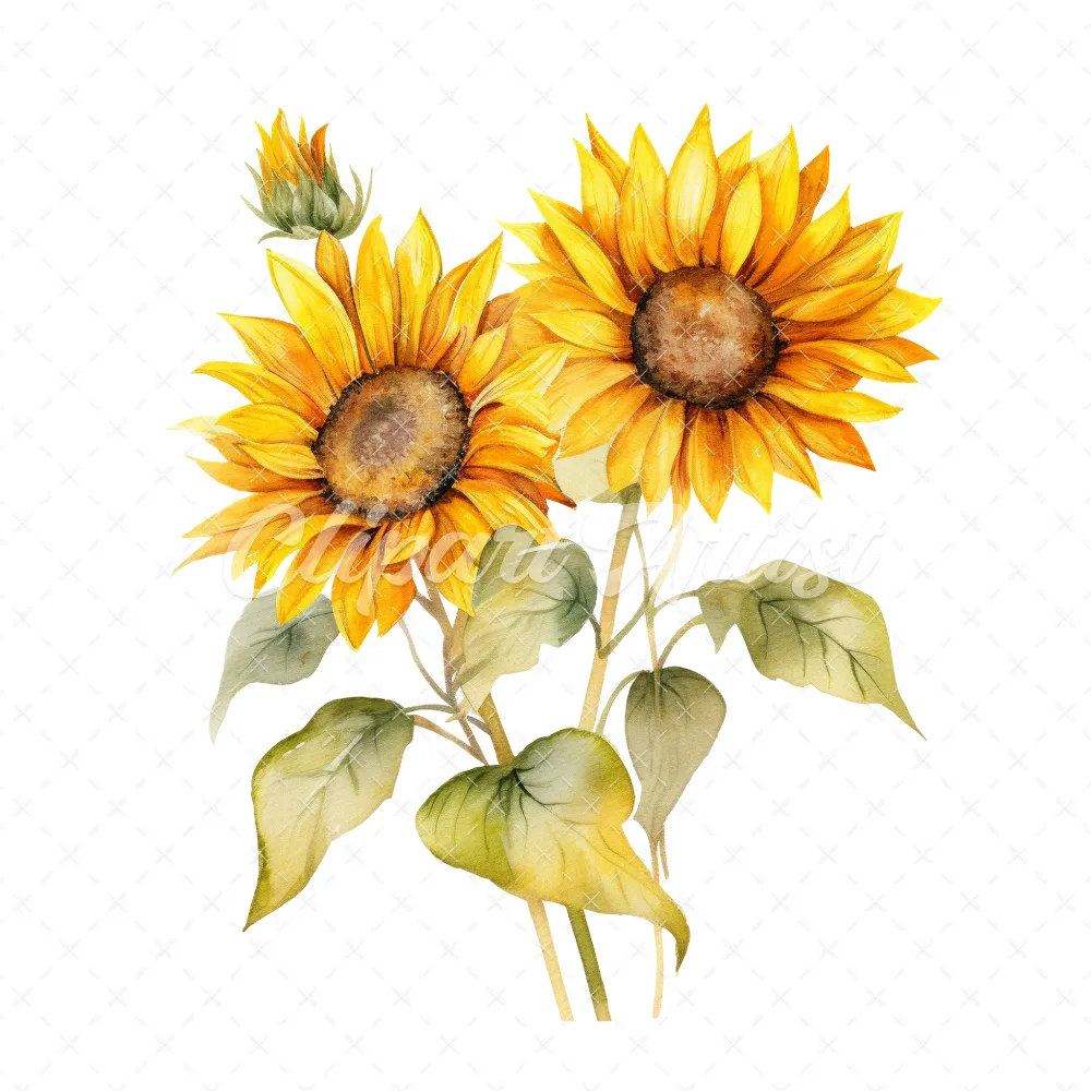 20 High-Quality Sunflower Clipart – Sunflower digital watercolor JPG instant download for commercial use – Digital download