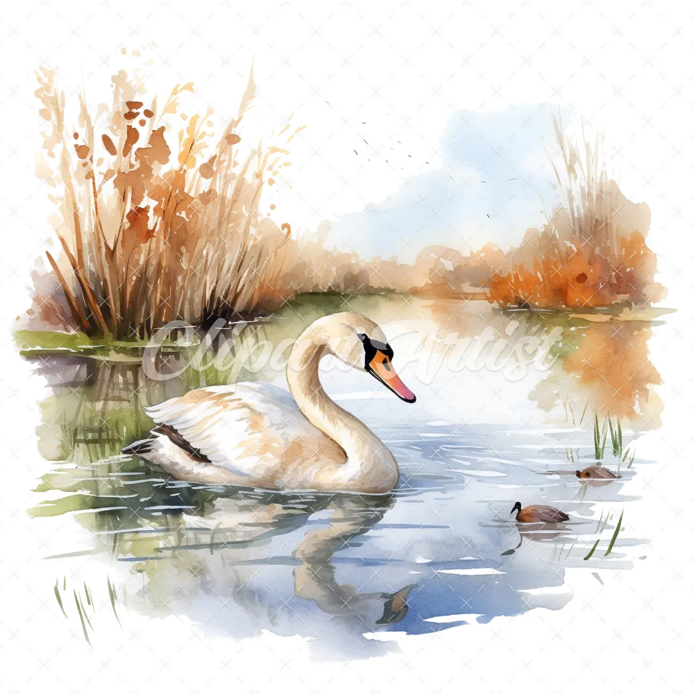 20 High-Quality Swans Clipart – Swans digital watercolor JPG instant download for commercial use – Digital download