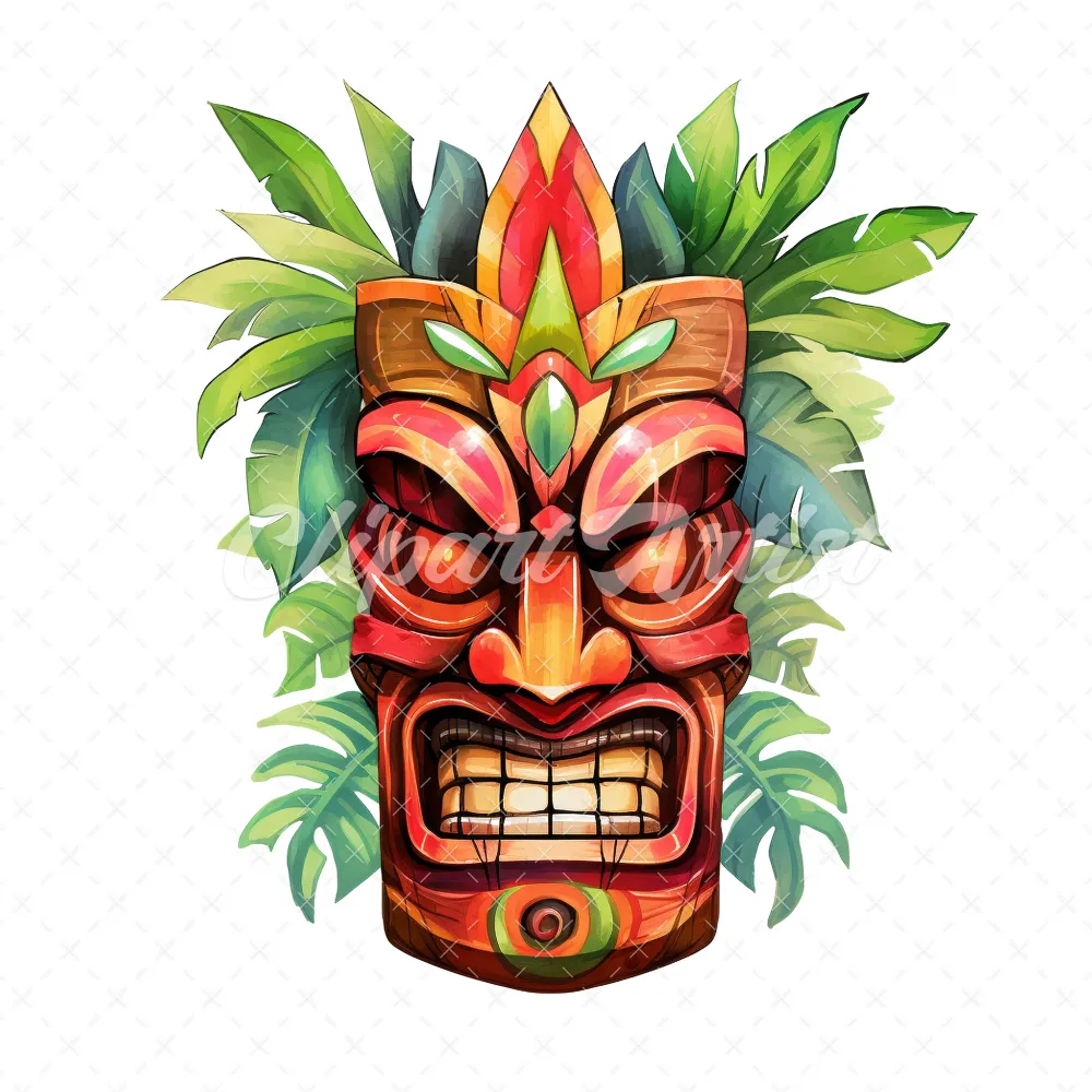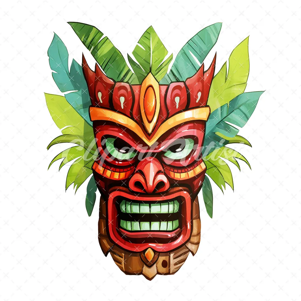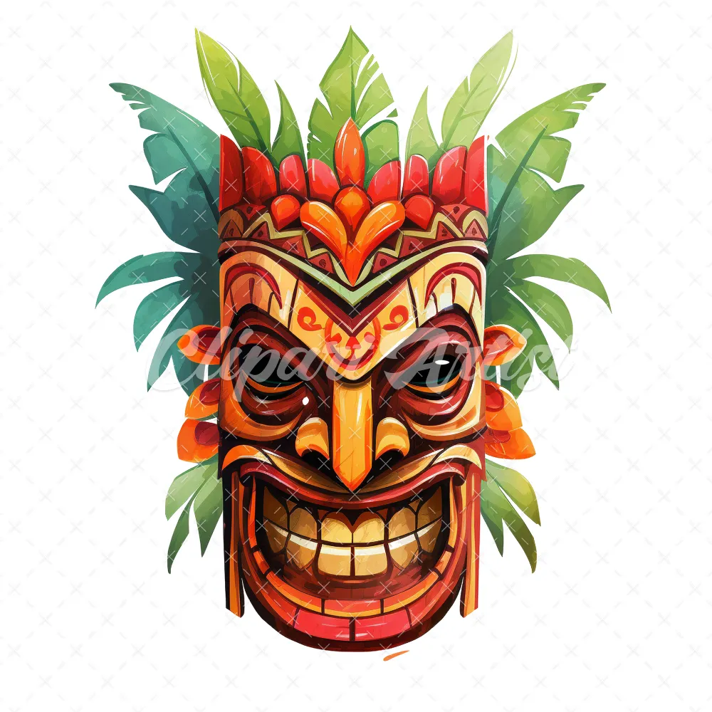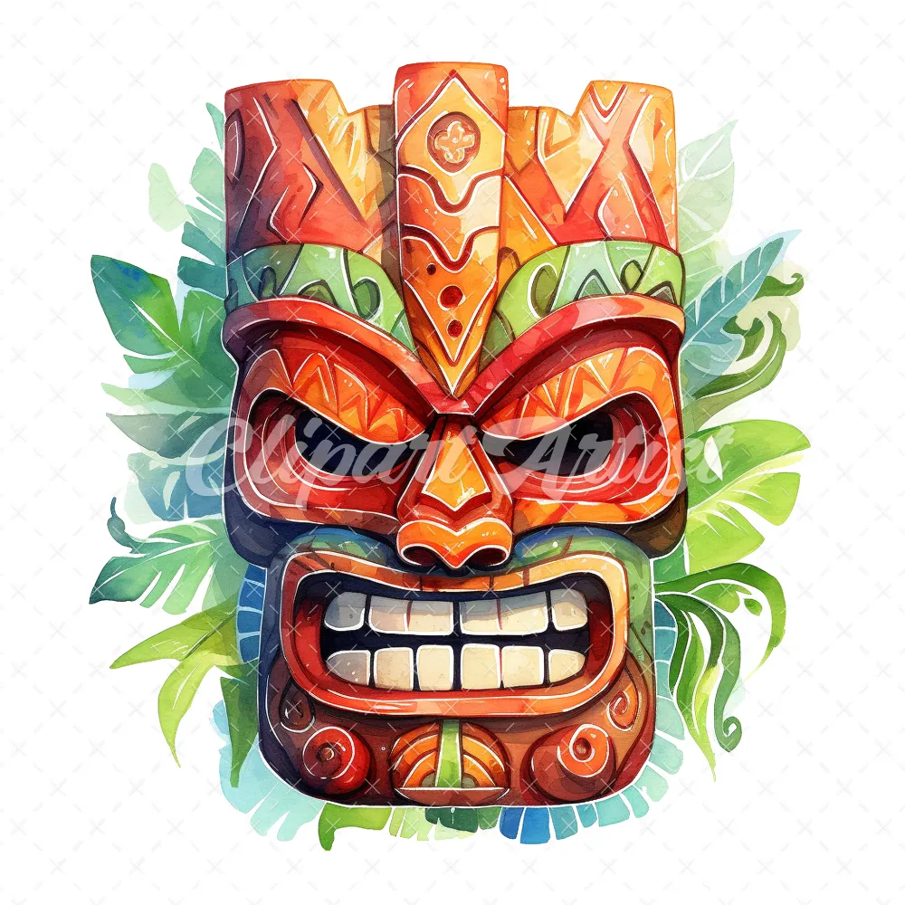 20 High-Quality Tiki Mask Clipart – Tiki mask digital watercolor JPG instant download for commercial use – Digital download