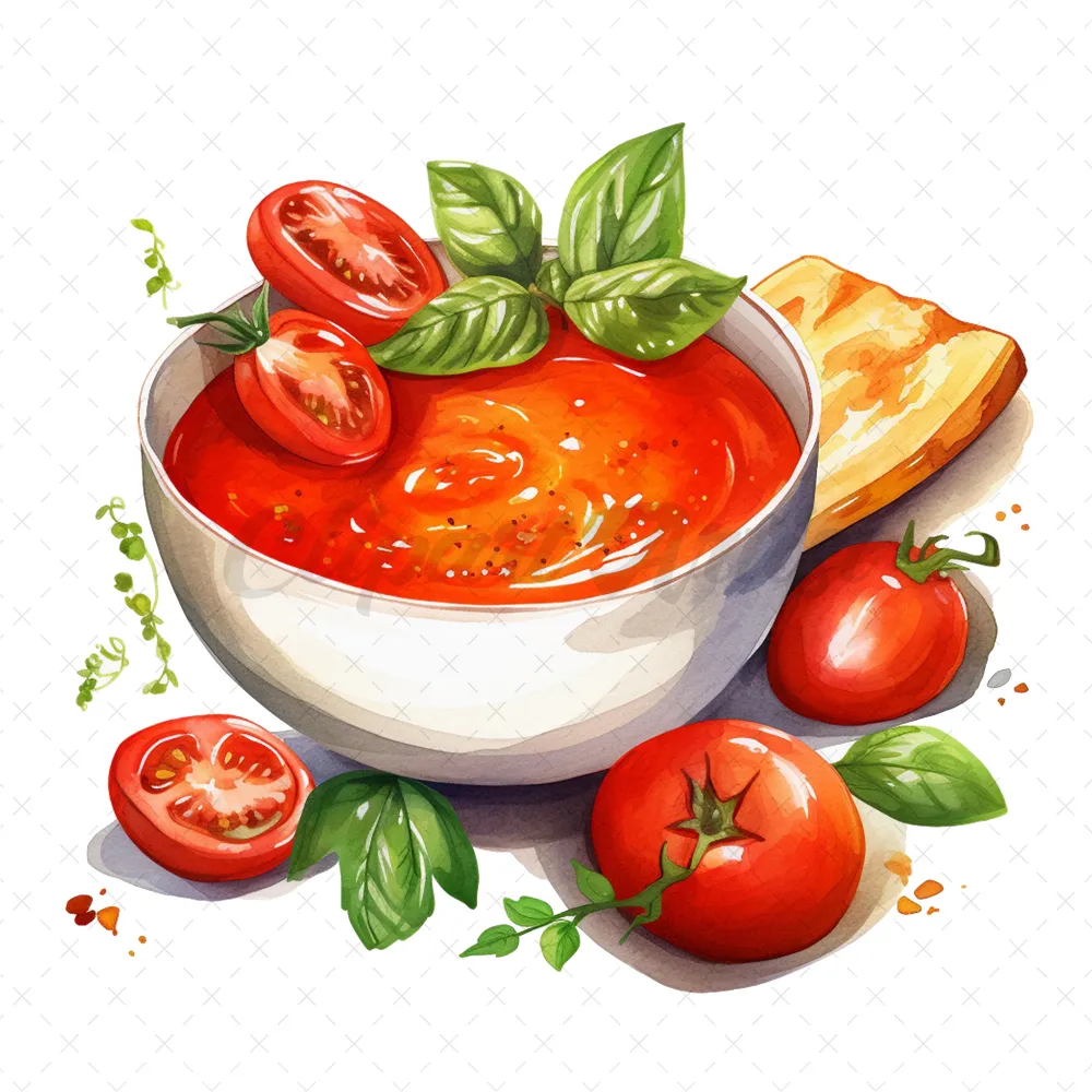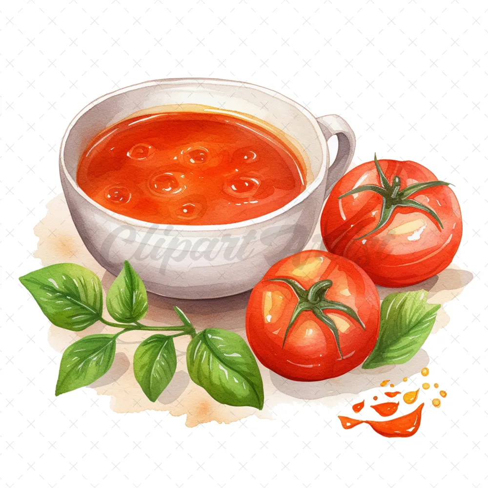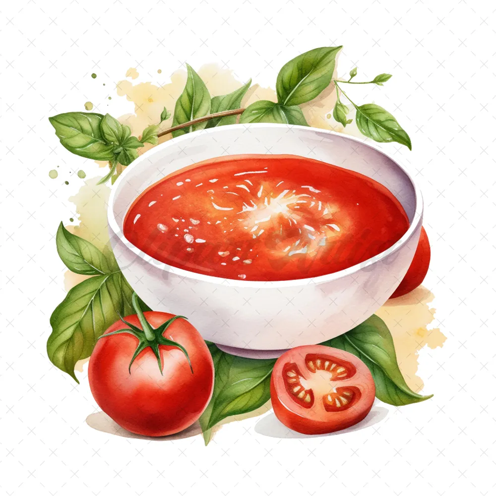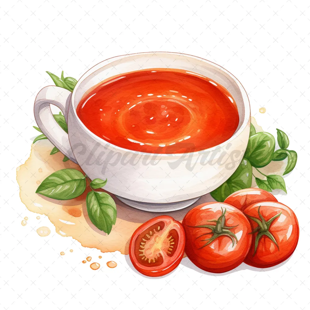 20 High-Quality Tomato Soup Clipart – Tomato soup digital watercolor JPG instant download for commercial use – Digital download