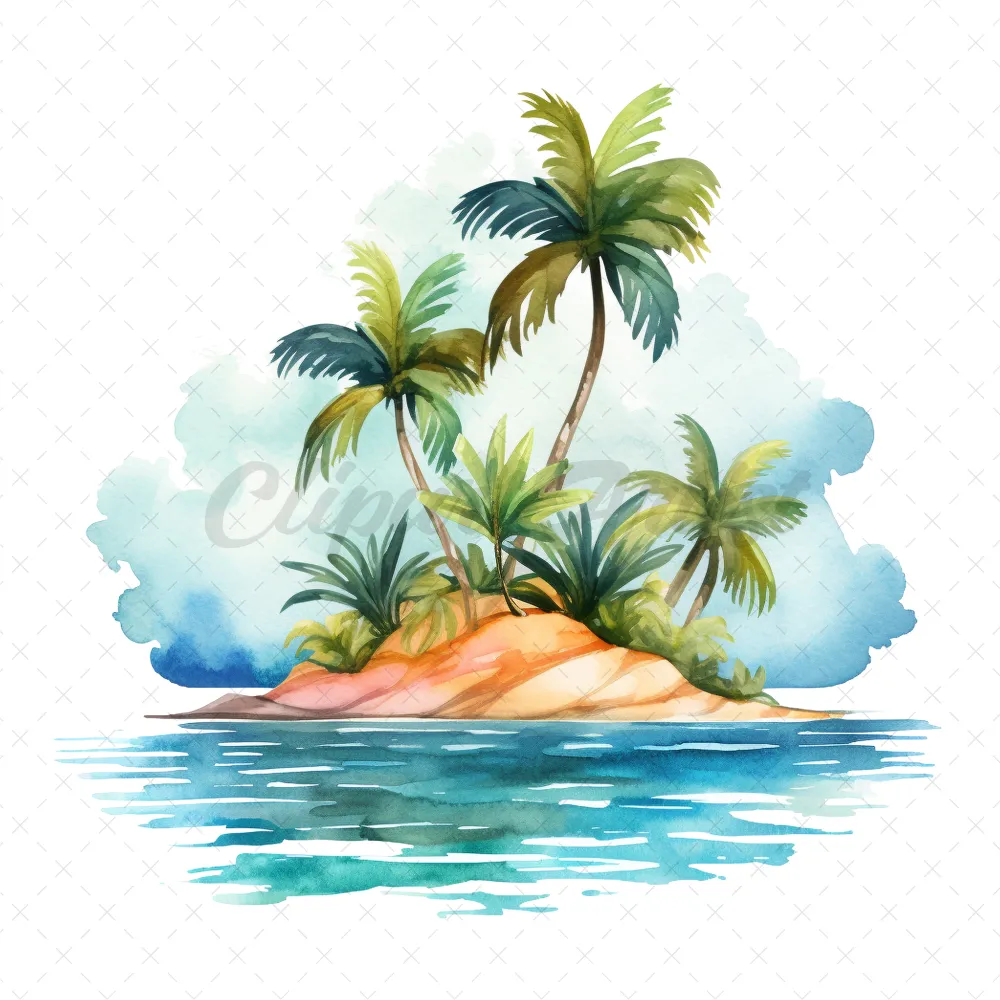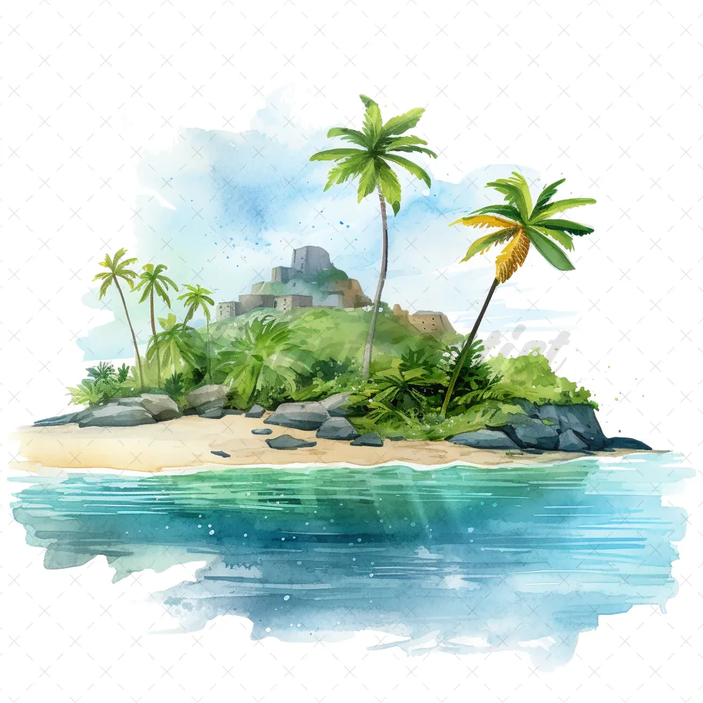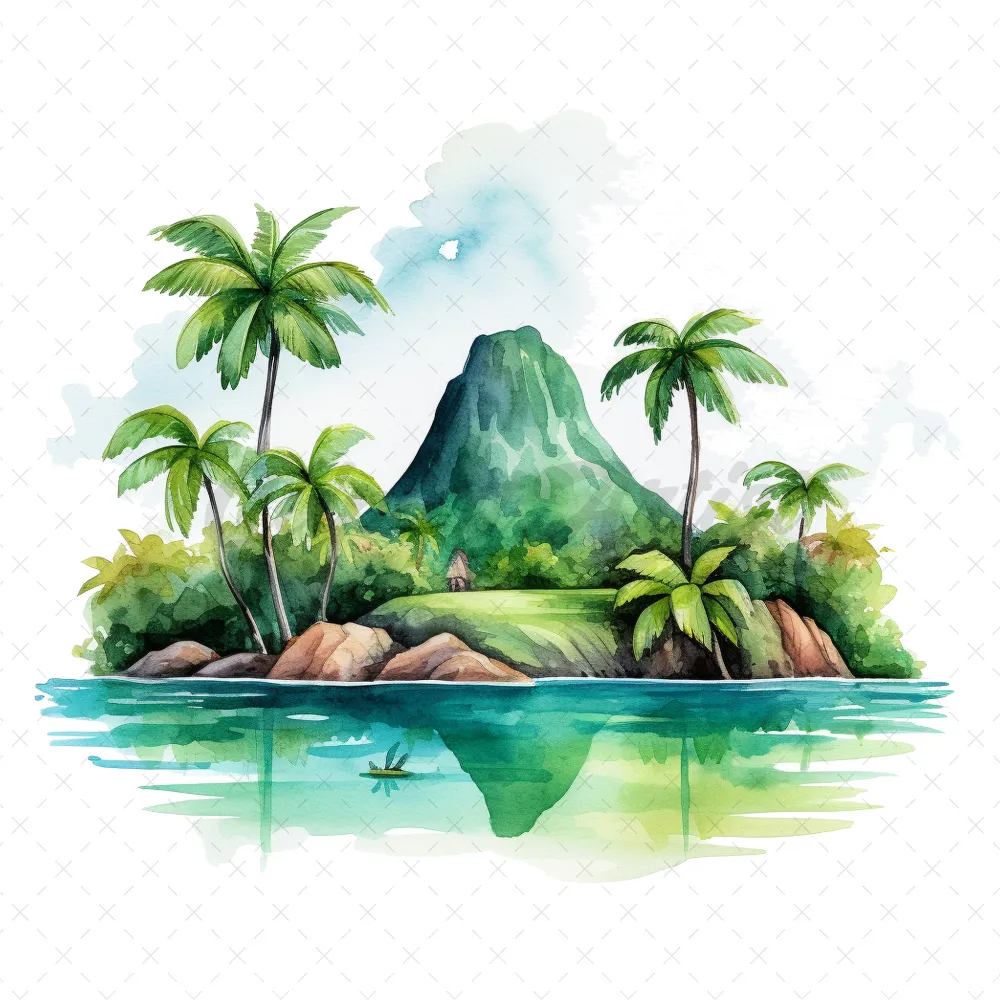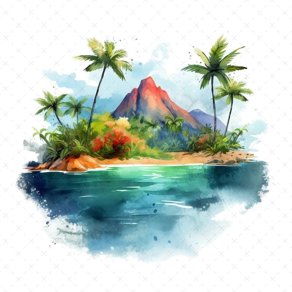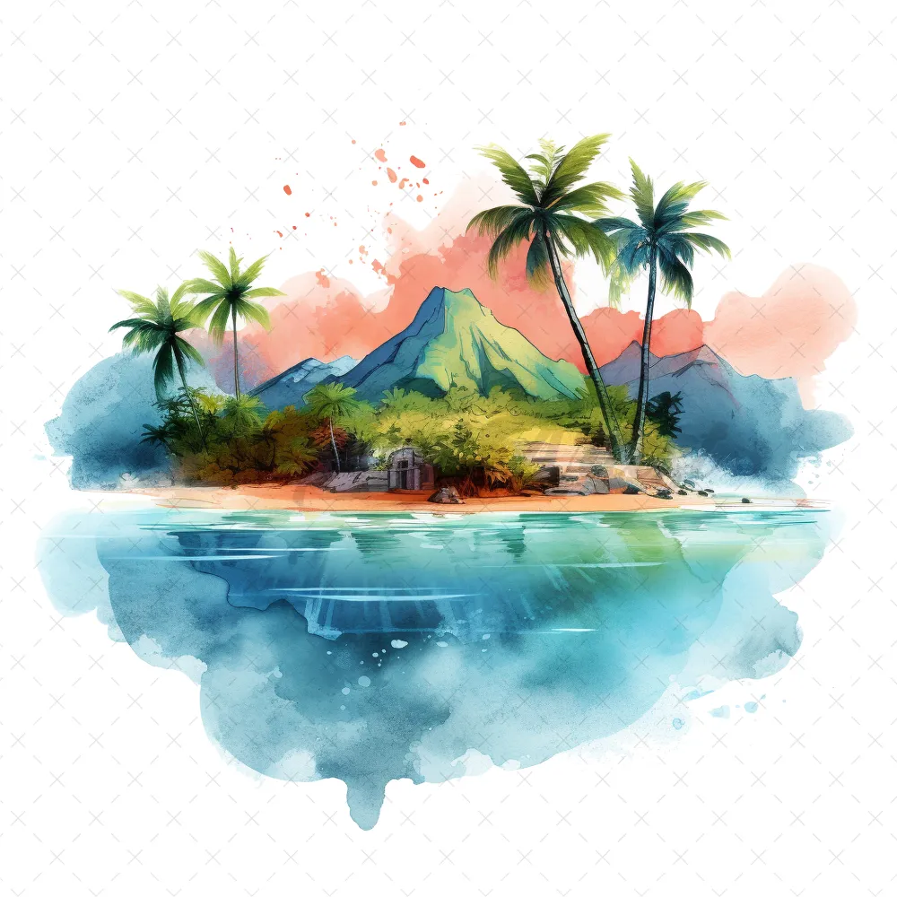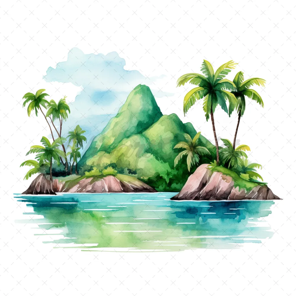 20 High-Quality Tropical Islands Clipart – Tropical islands digital watercolor JPG instant download for commercial use – Digital download
