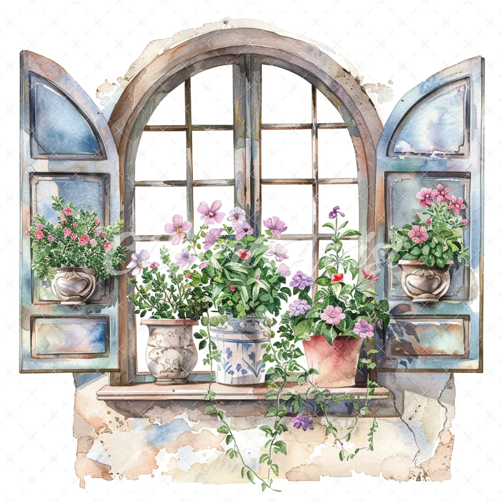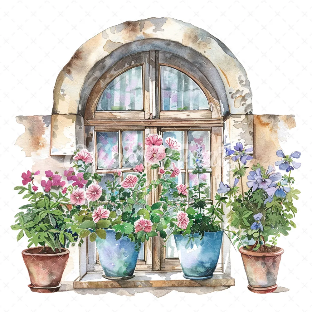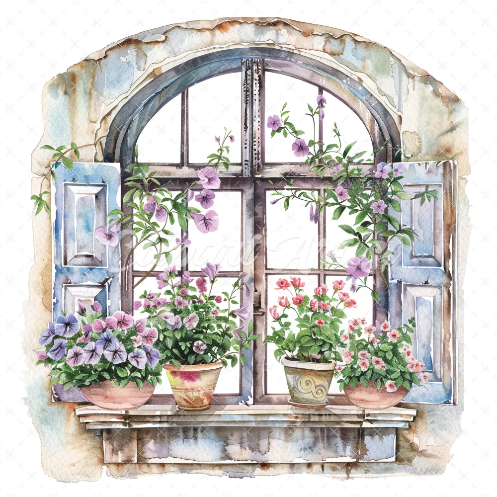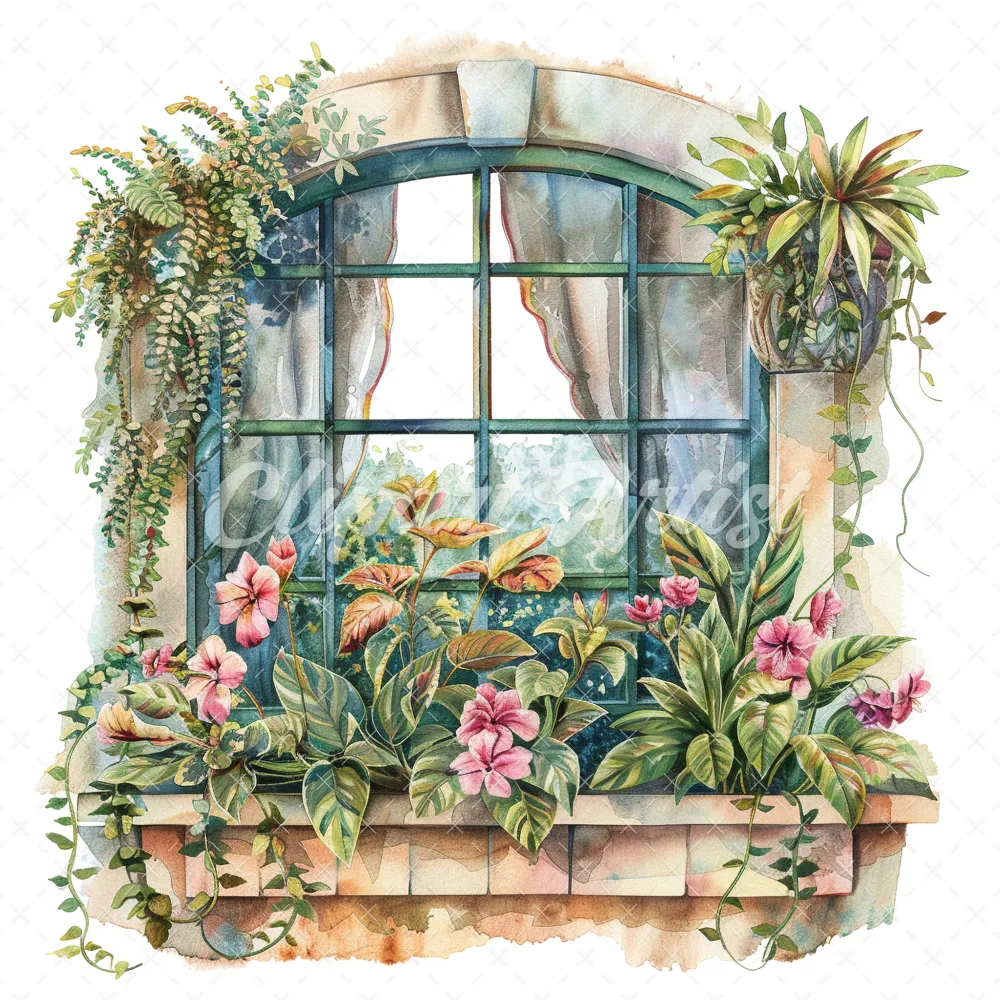 20 High-Quality Victorian Windows Set-1 Clipart – Victorian windows watercolor JPG instant download for commercial use – Digital download