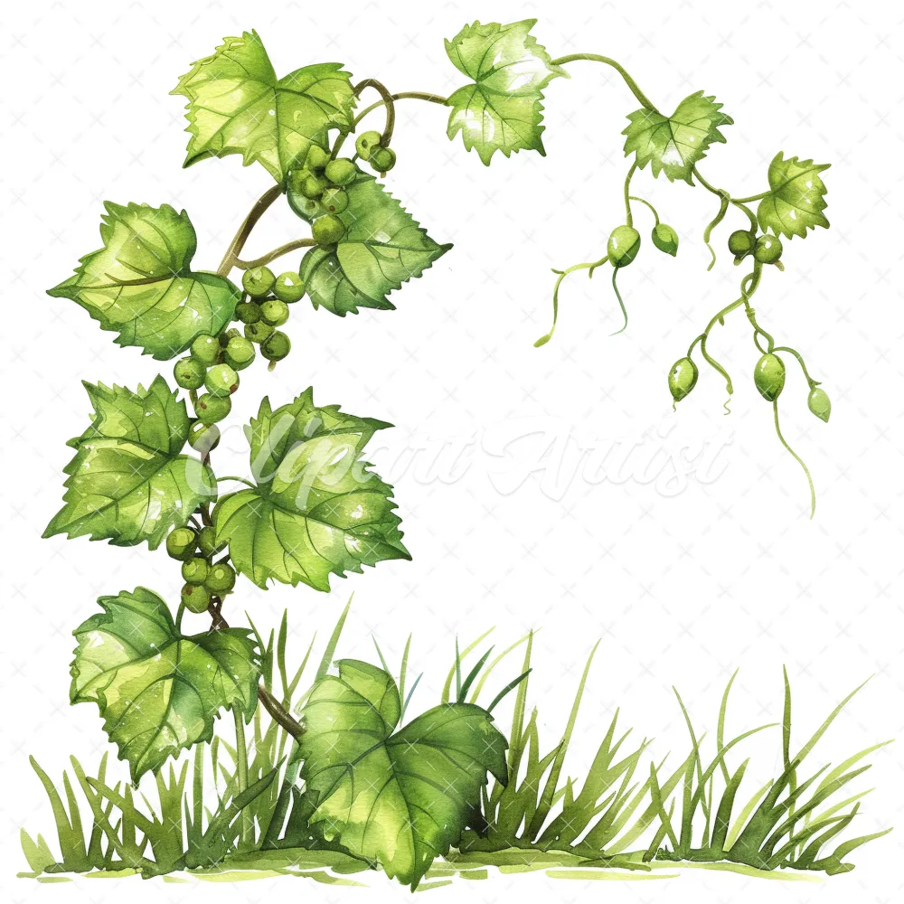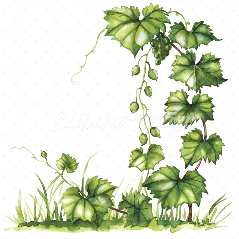20 High-Quality Vine Plant Clipart – Vine plant digital watercolor JPG instant download for commercial use – Digital download