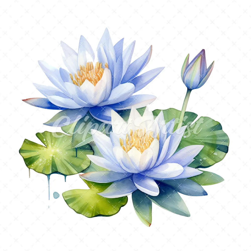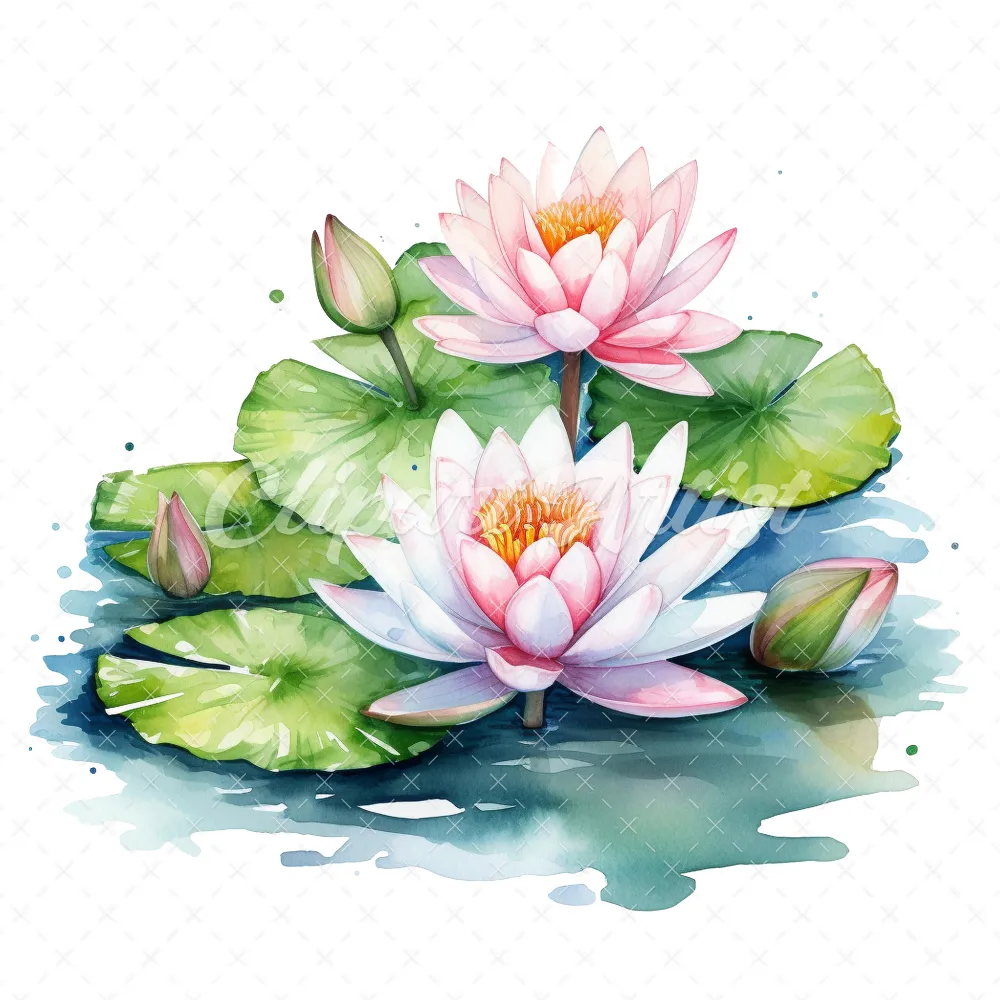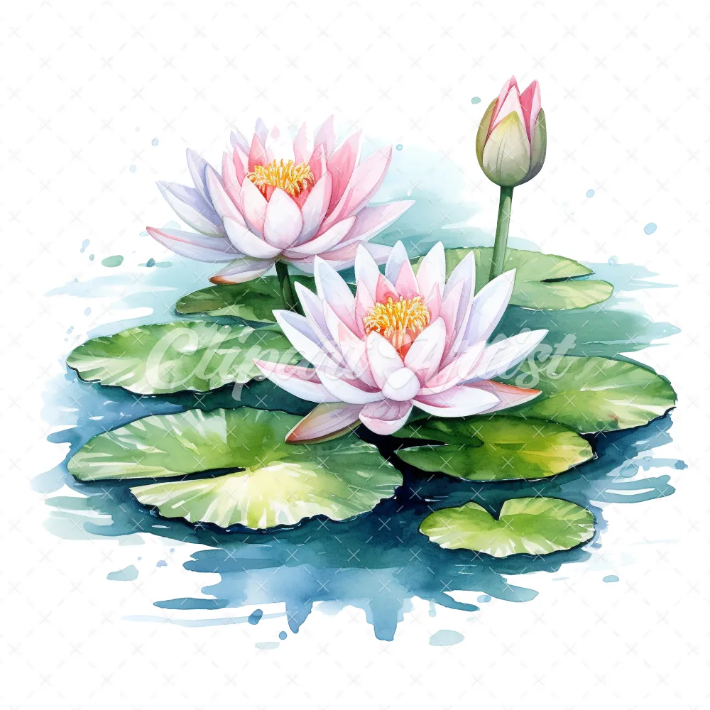 20 High-Quality Water Lily Clipart – Water lily digital watercolor JPG instant download for commercial use – Digital download
