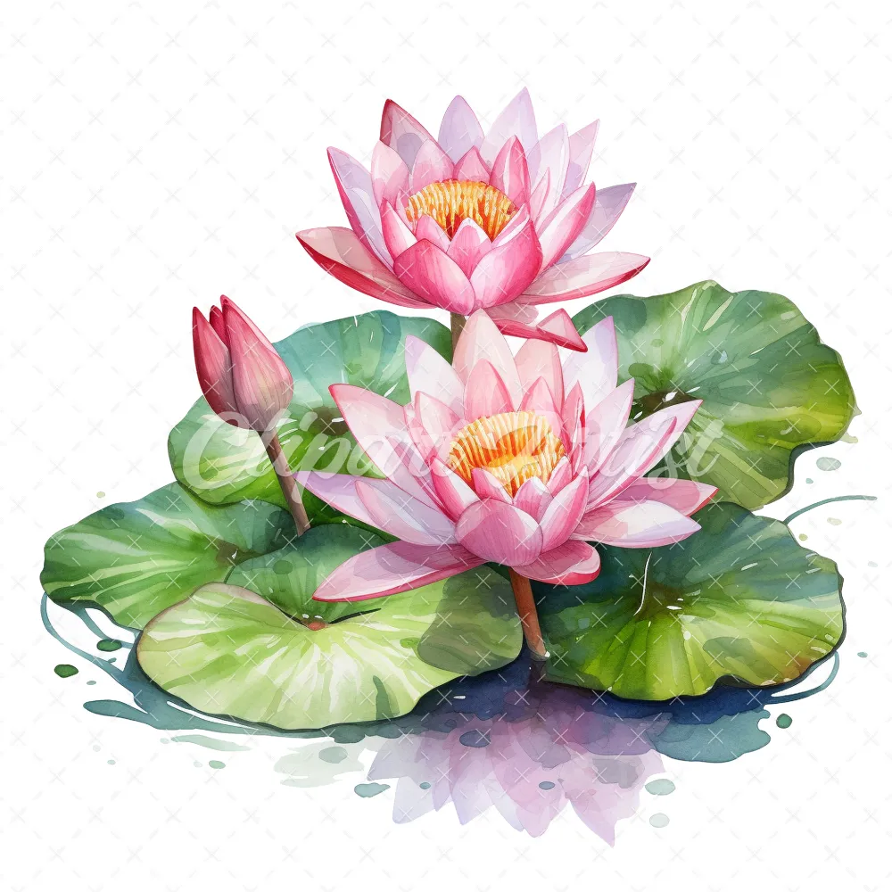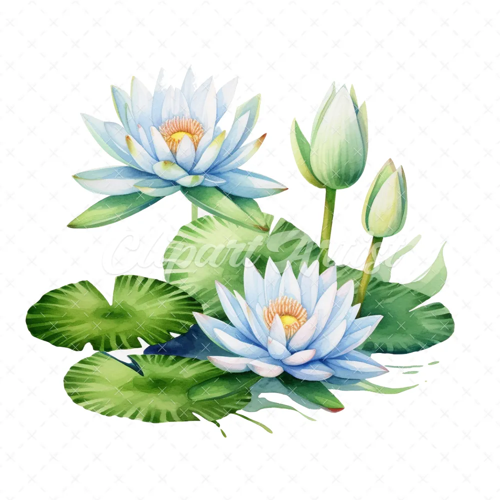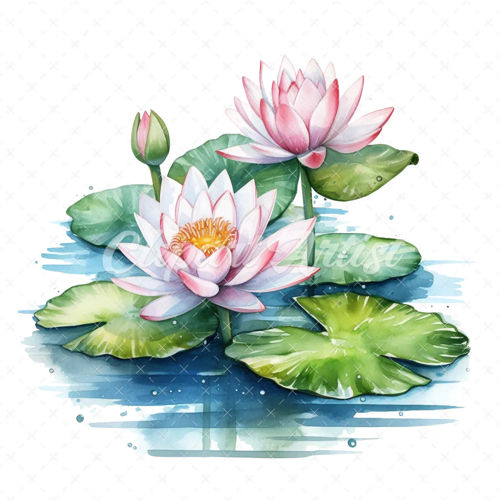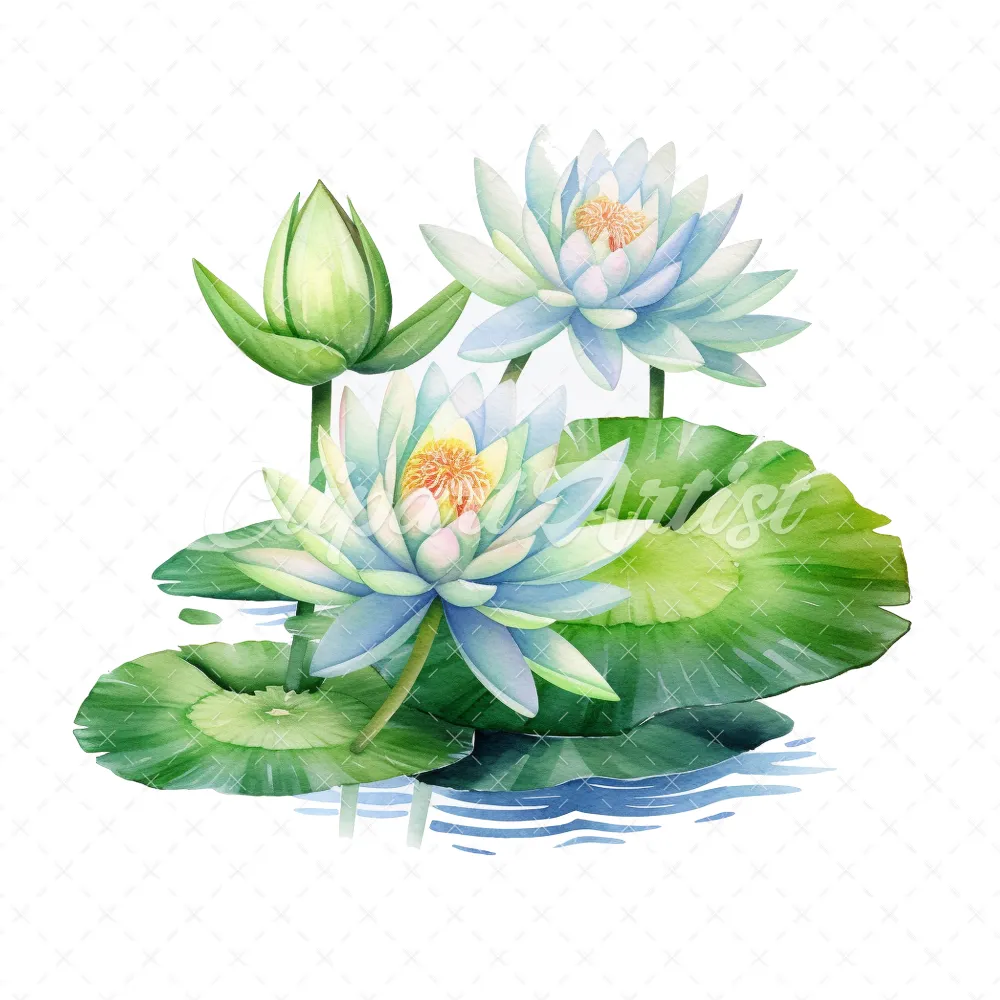 20 High-Quality Water Lily Clipart – Water lily digital watercolor JPG instant download for commercial use – Digital download