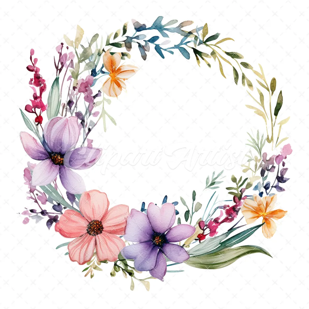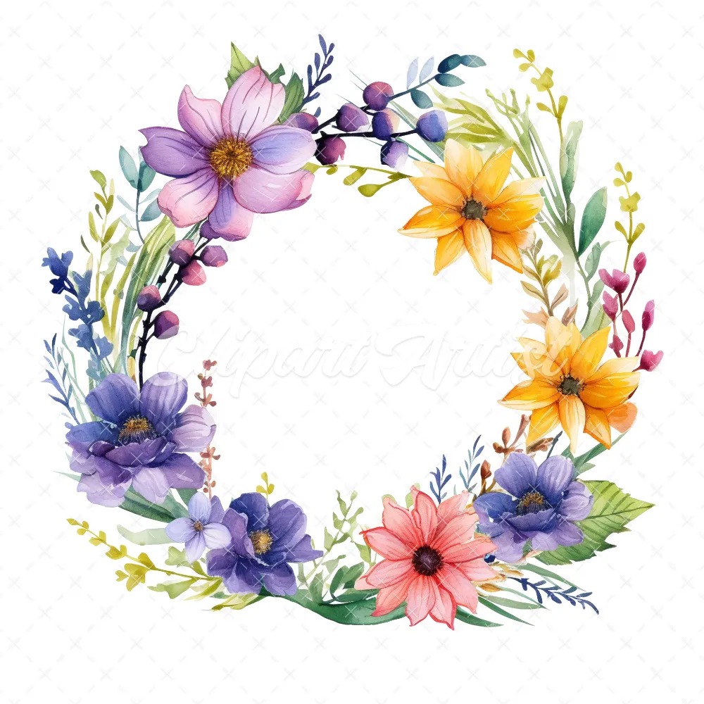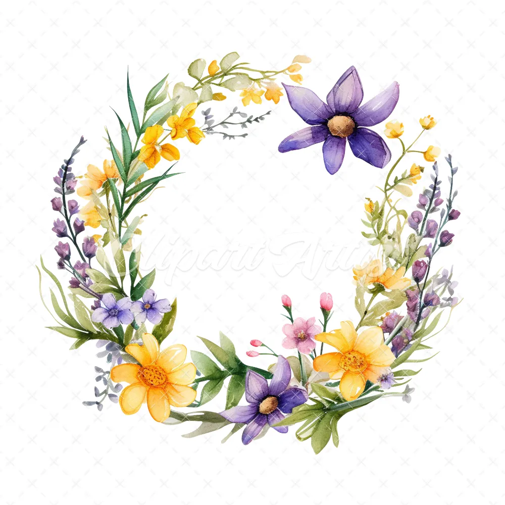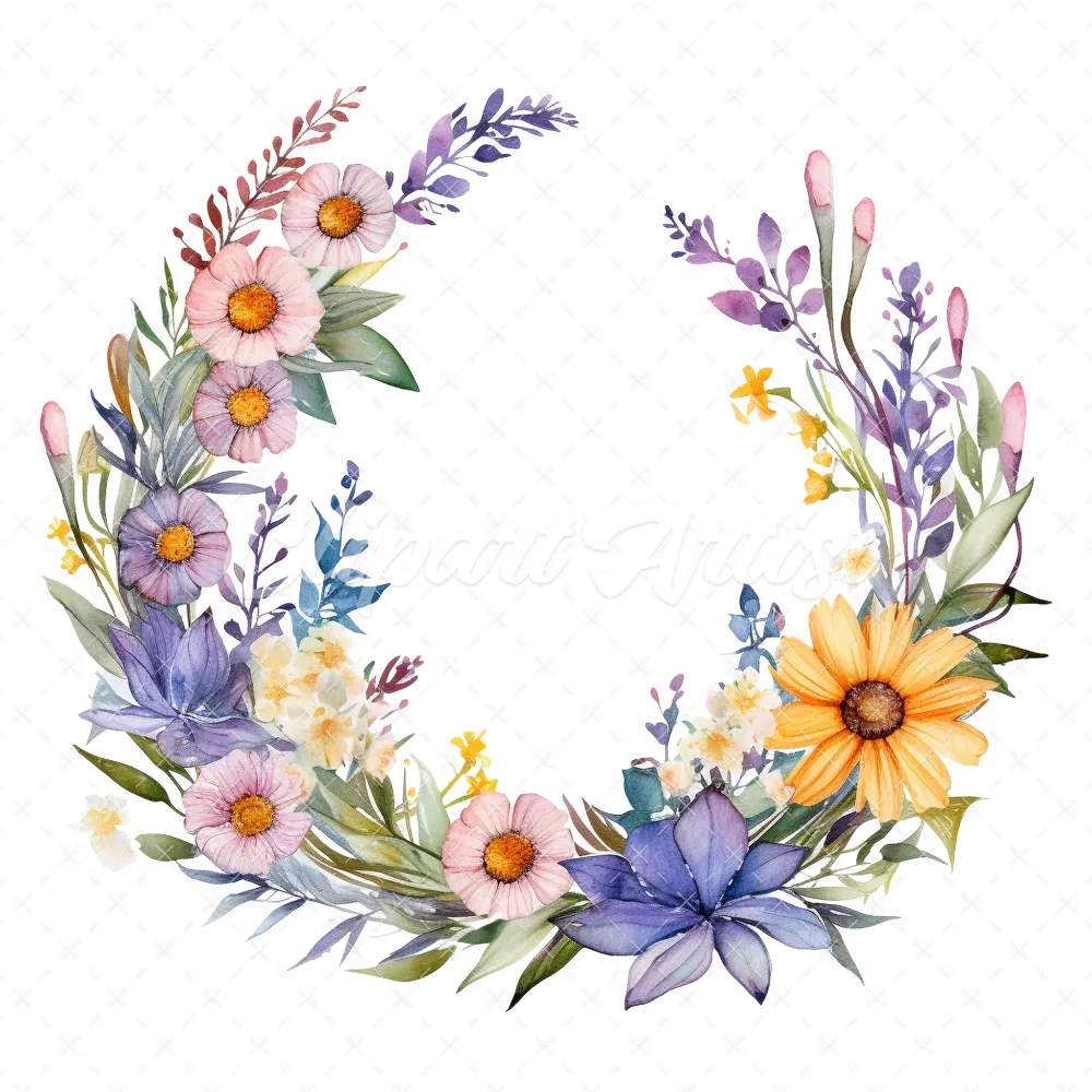20 High-Quality Wildflowers Wreath Clipart – Wildflower wreath digital watercolor JPG instant download for commercial use – Digital download