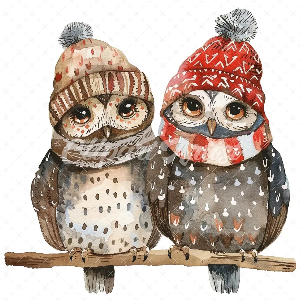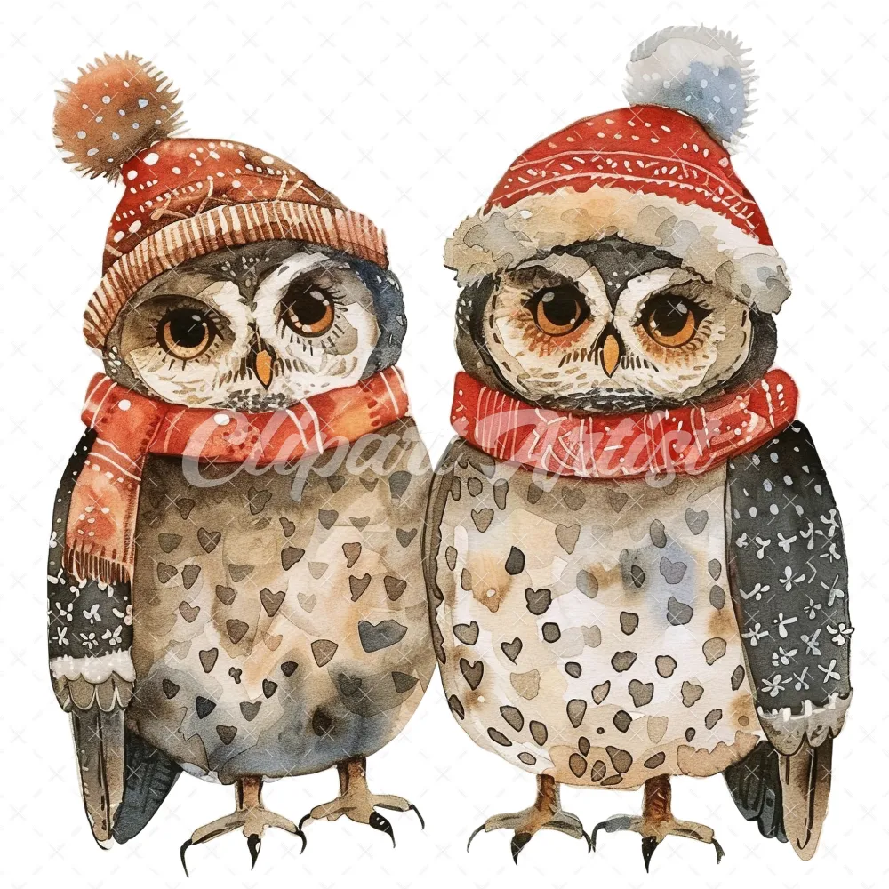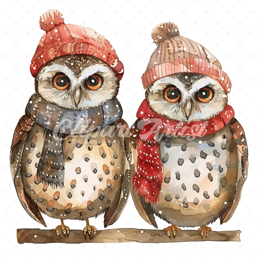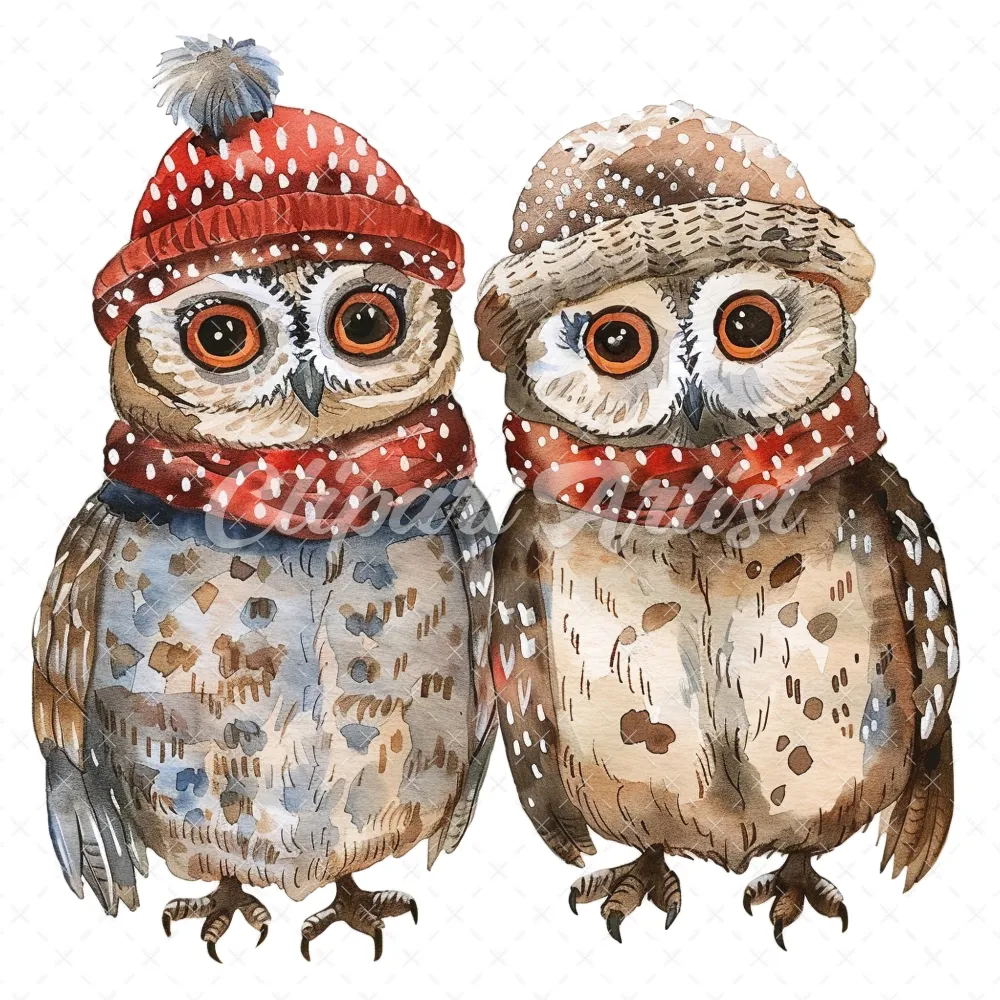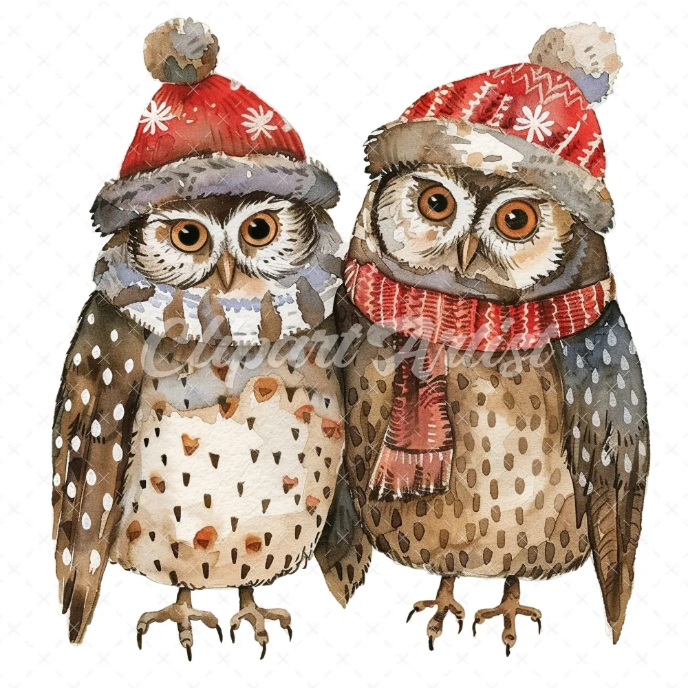 20 High-Quality Winter Owls Clipart – Winter owls watercolor JPG instant download for commercial use – Digital download