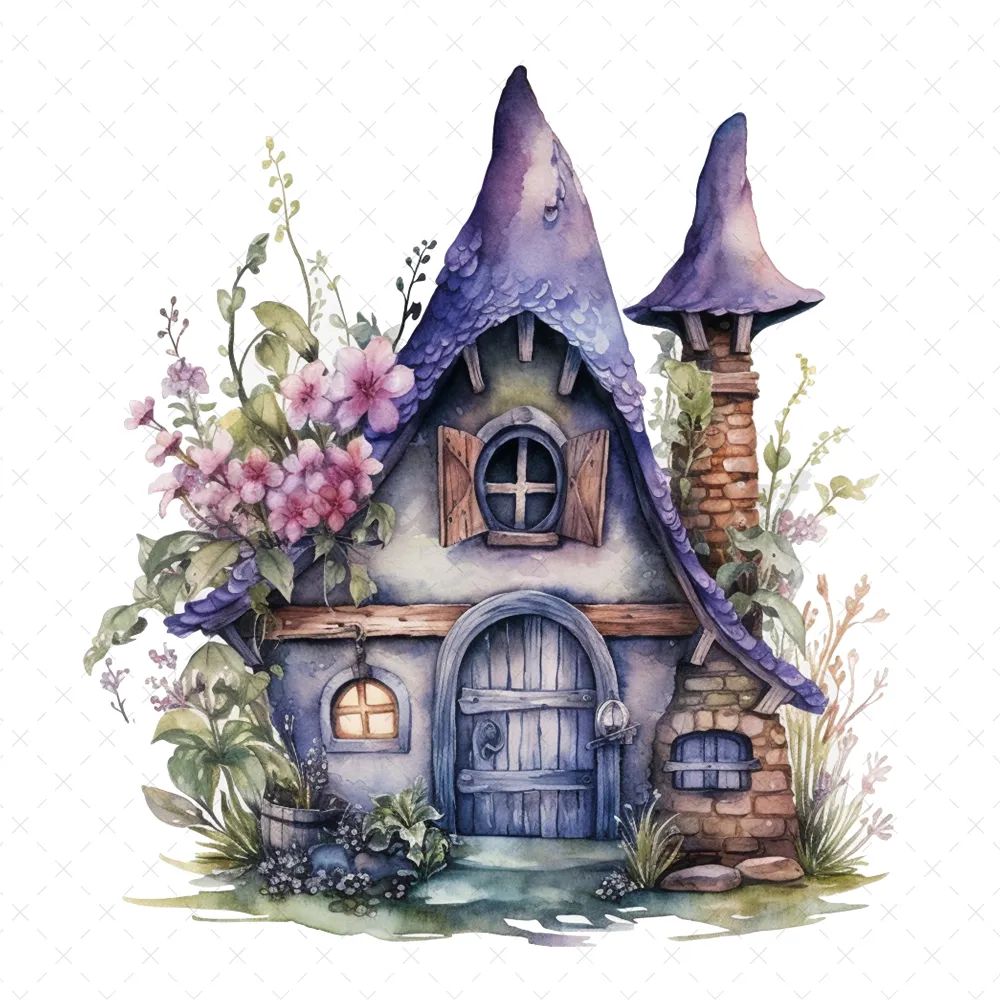 20 High-Quality Witch Houses Clipart – Witch houses digital watercolor JPG instant download for commercial use – Digital download