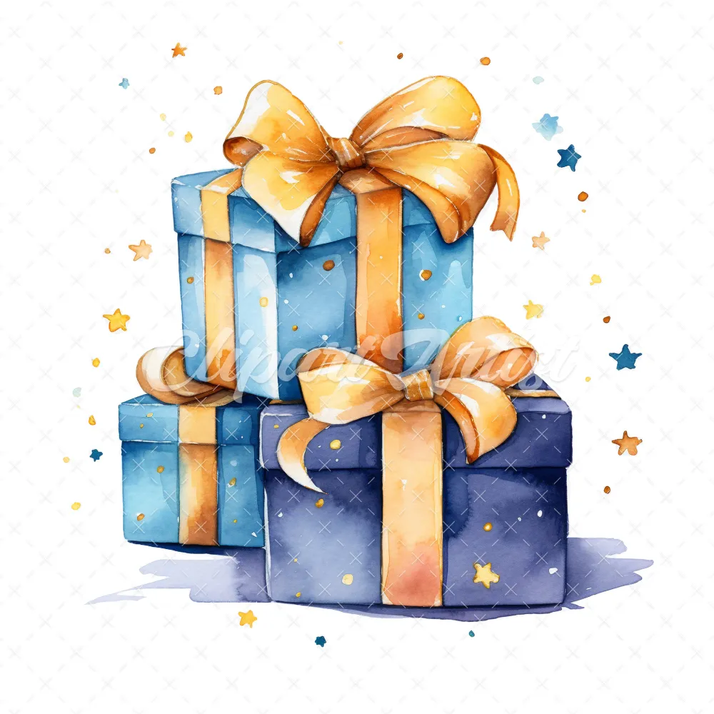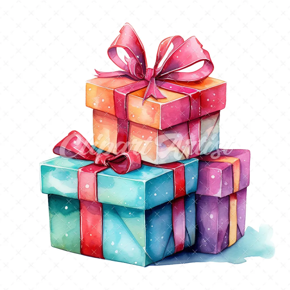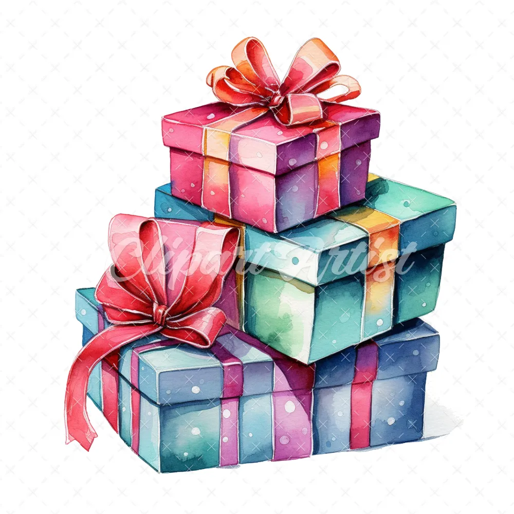 20 High-Quality Wrapped Gifts Clipart – Wrapped gifts digital watercolor JPG instant download for commercial use – Digital download
