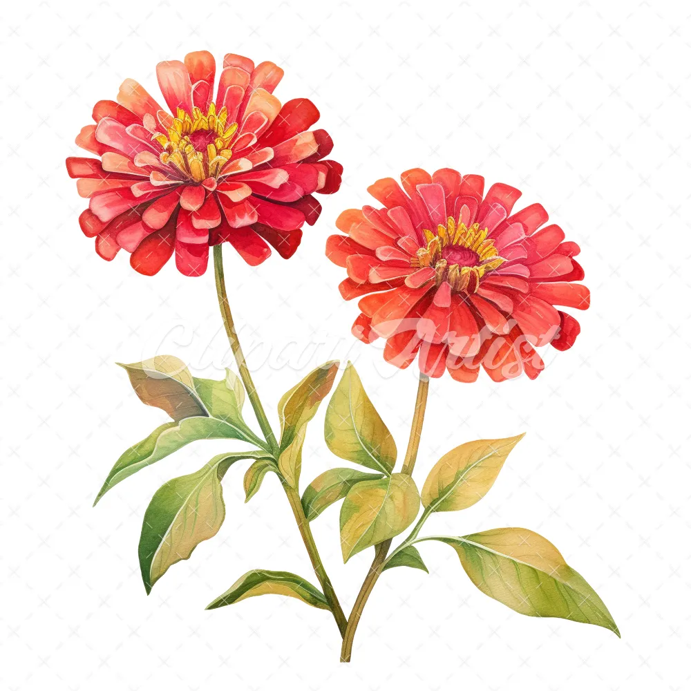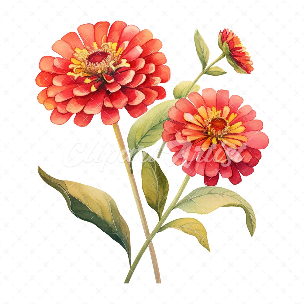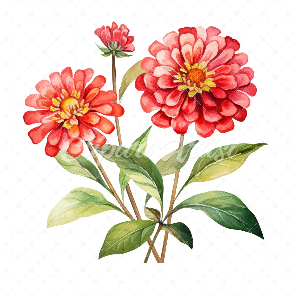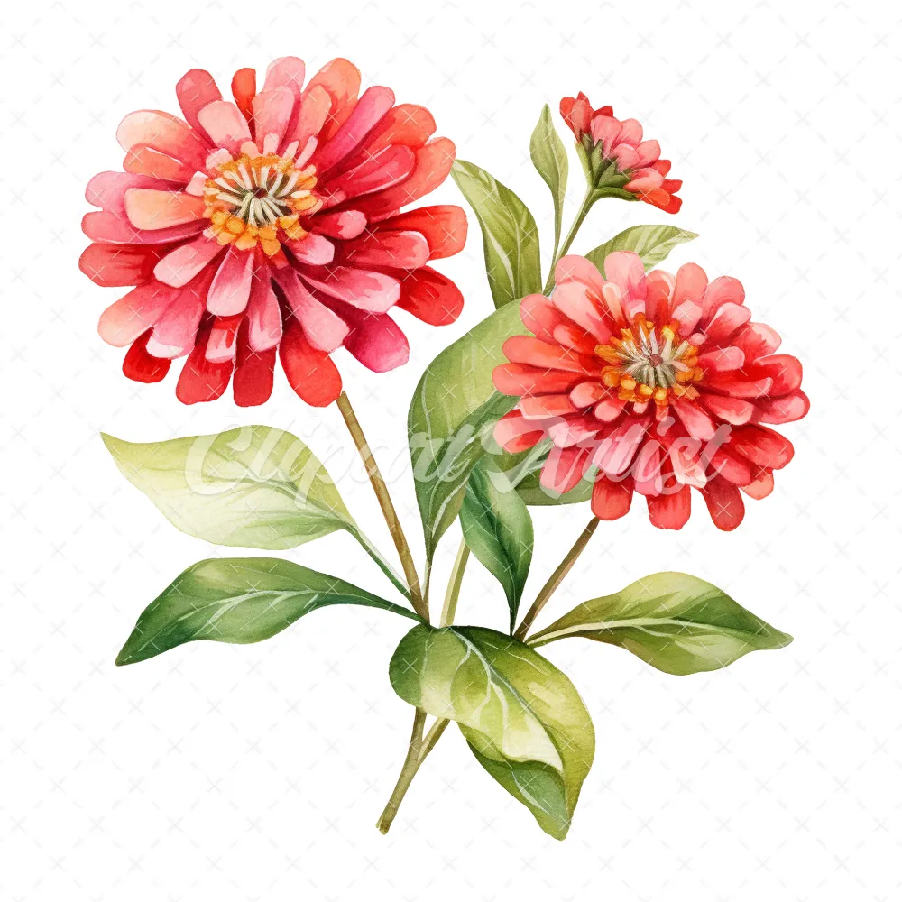 20 High-Quality Zinnia Clipart – Zinnia flowers digital watercolor JPG instant download for commercial use – Digital download