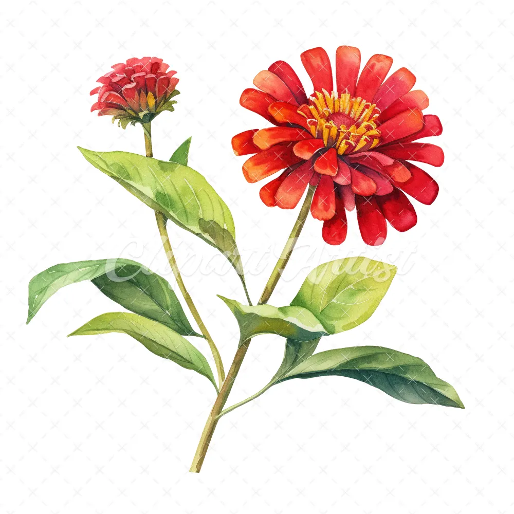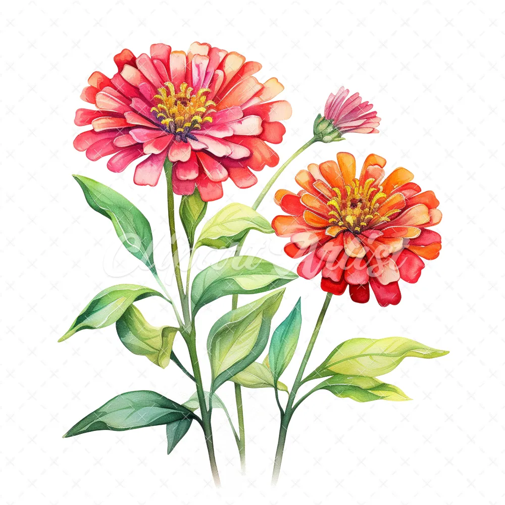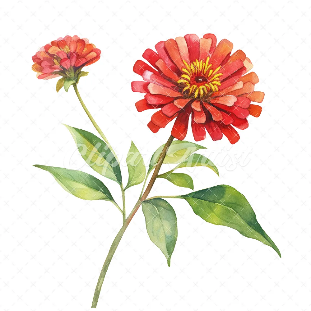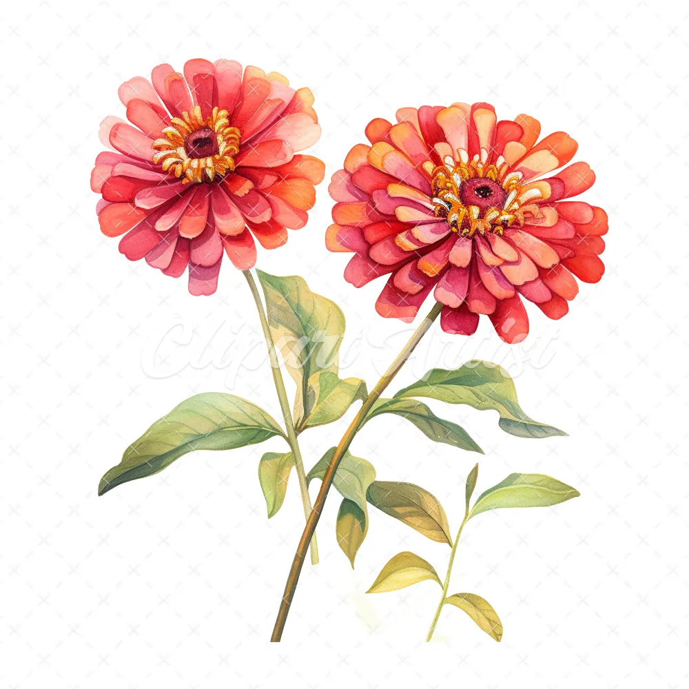 20 High-Quality Zinnia Clipart – Zinnia flowers digital watercolor JPG instant download for commercial use – Digital download