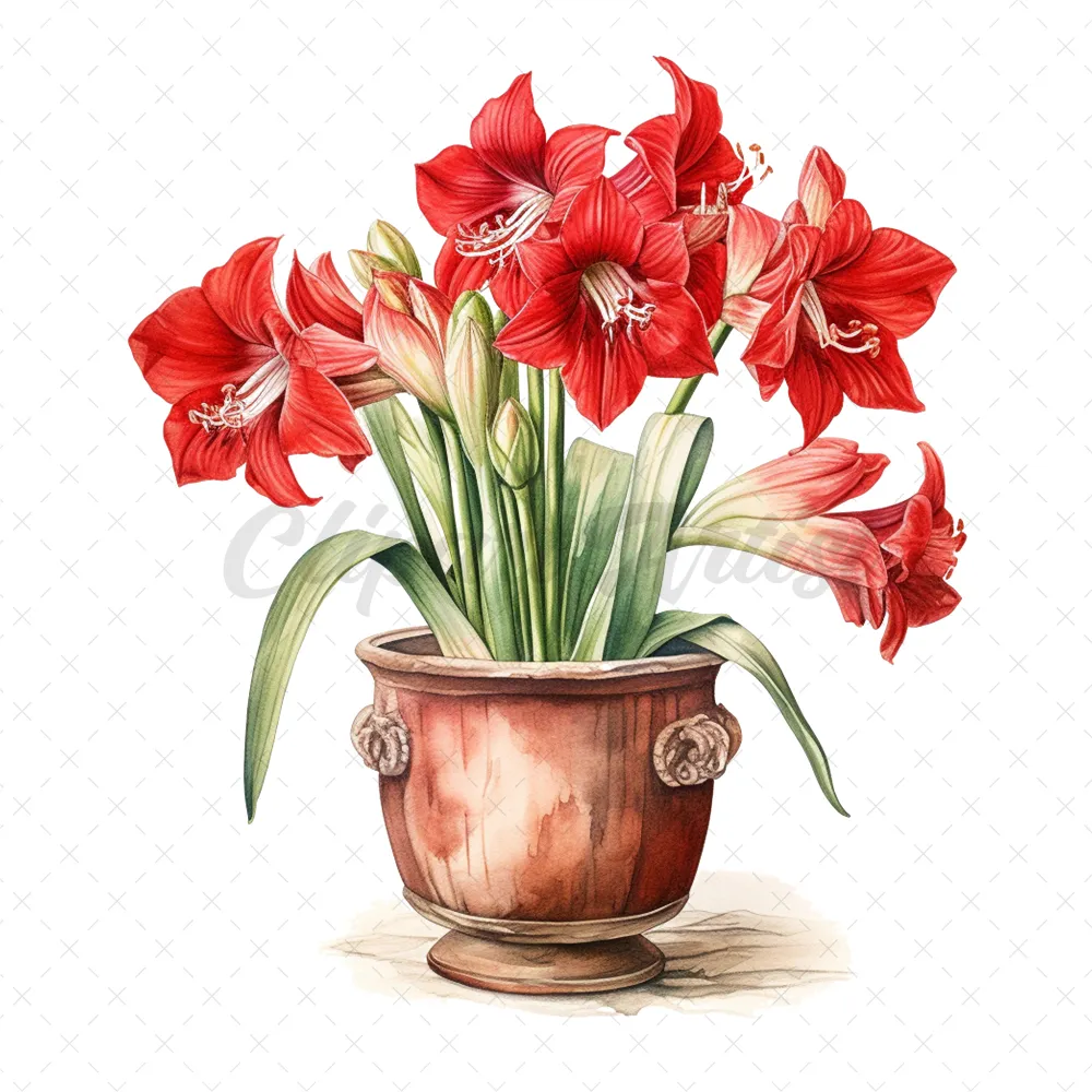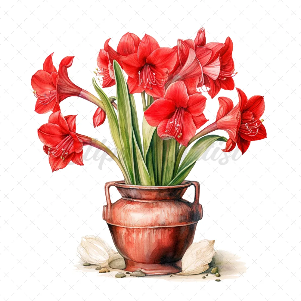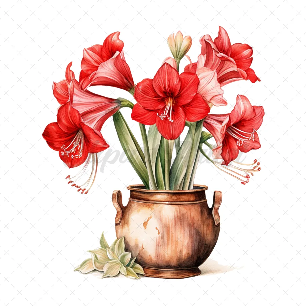21 High-Quality Amaryllis Pots Clipart – Amaryllis pots digital watercolor JPG instant download for commercial use – Digital download