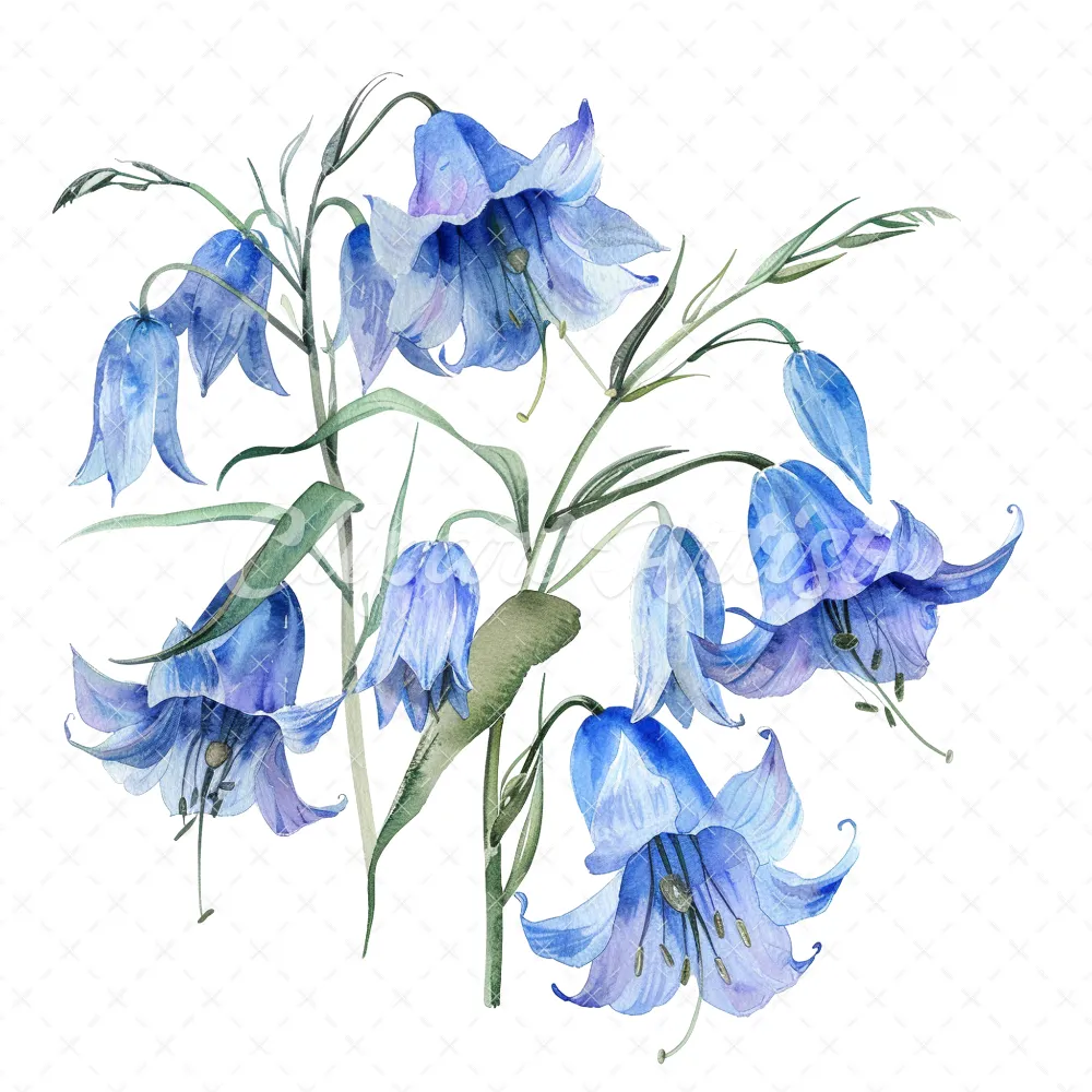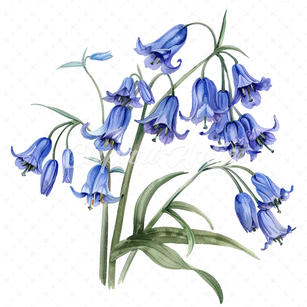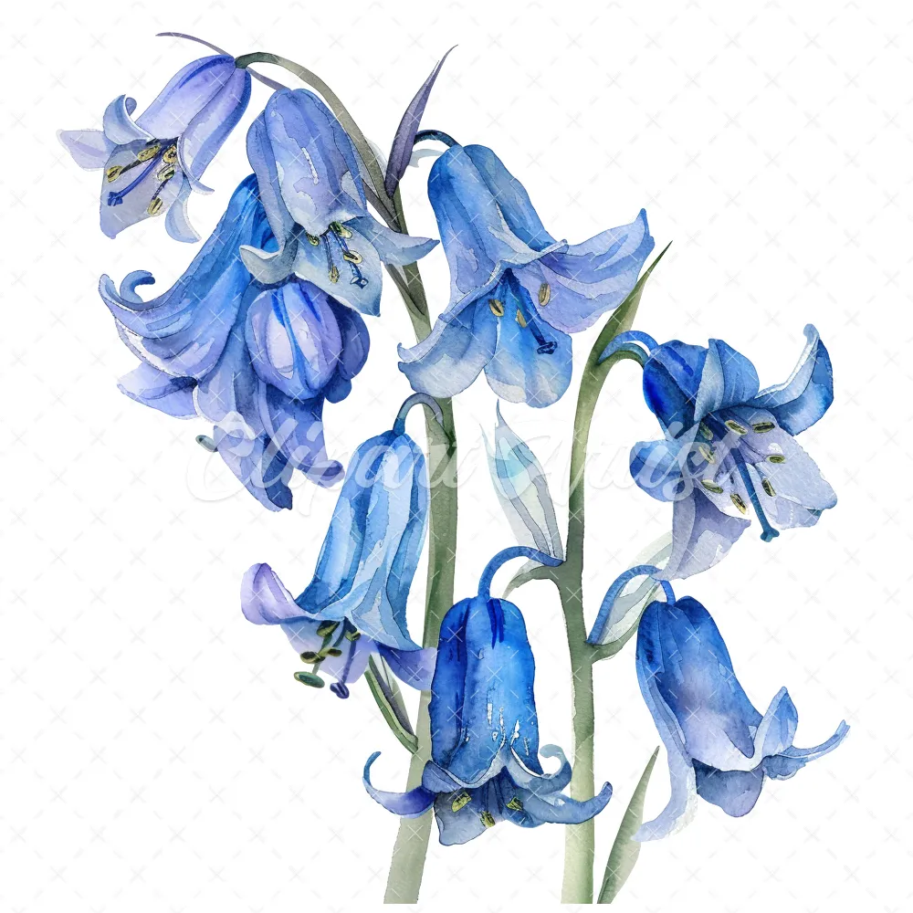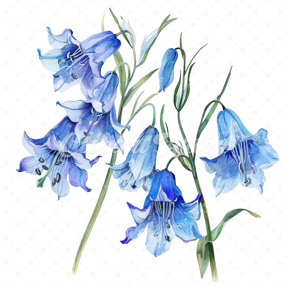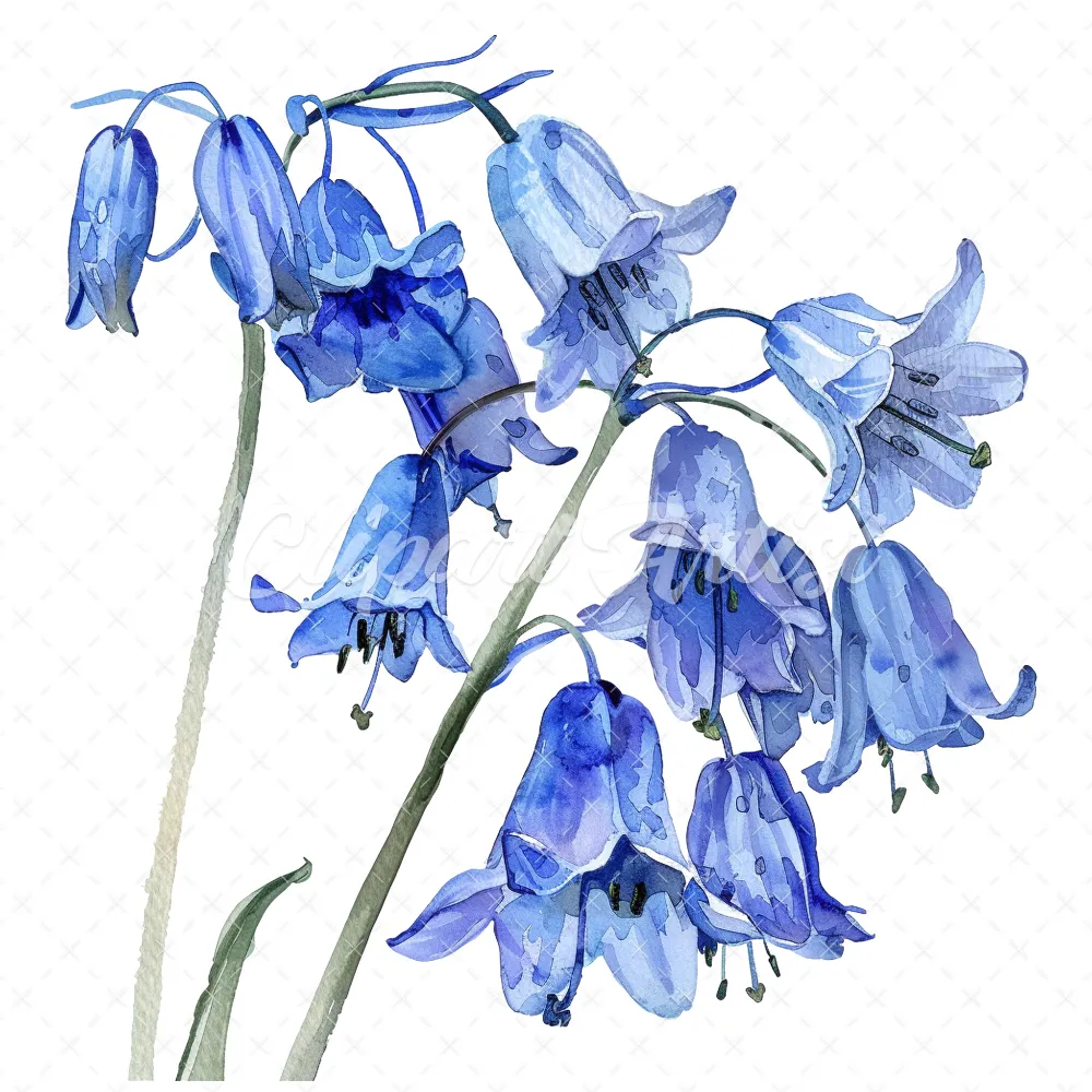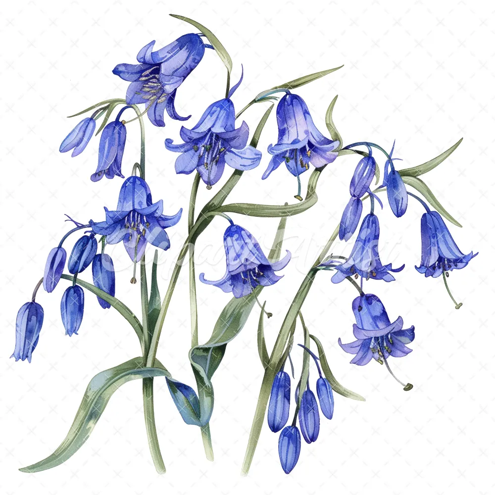 21 High-Quality Bluebells Clipart – Bluebells flowers digital watercolor JPG instant download for commercial use – Digital download
