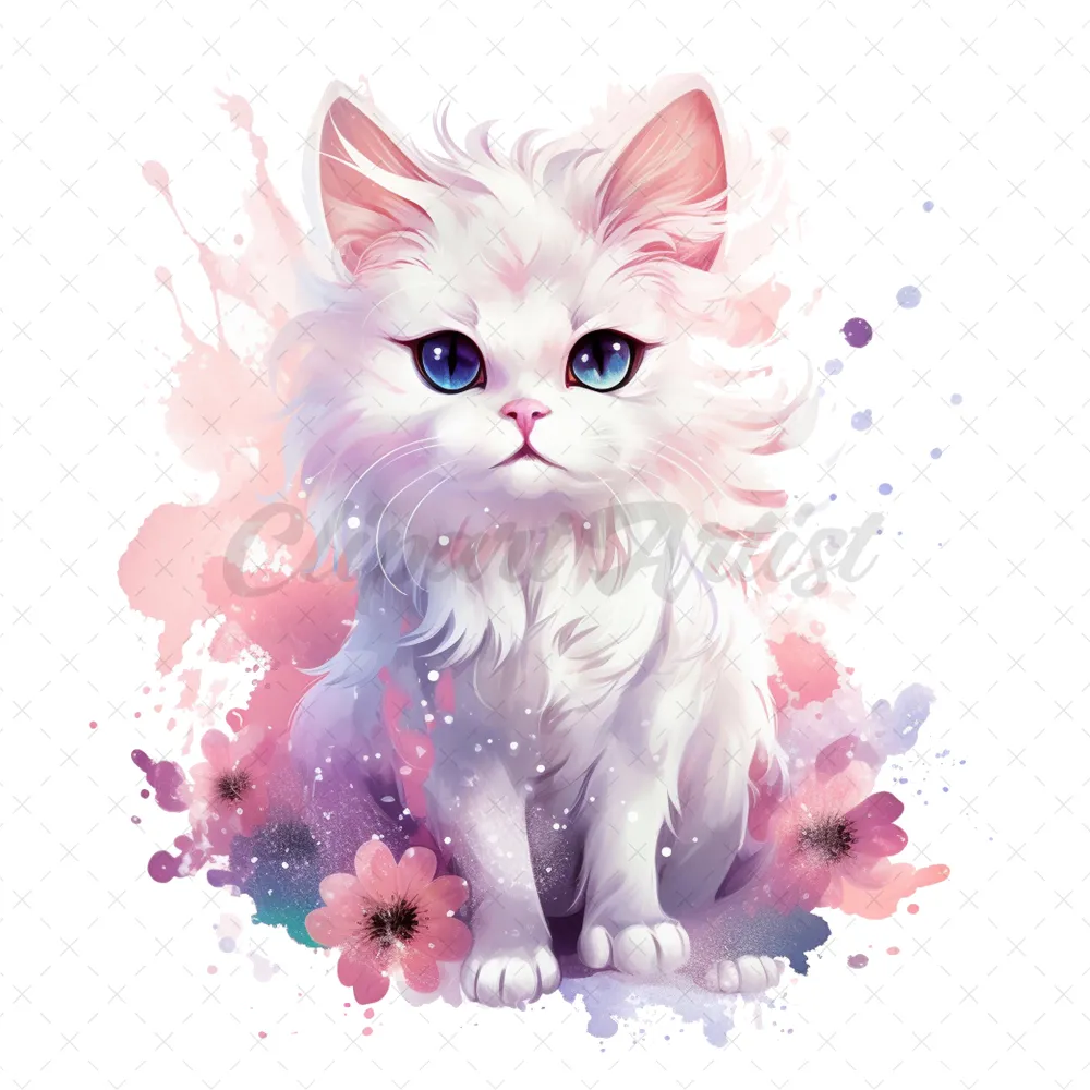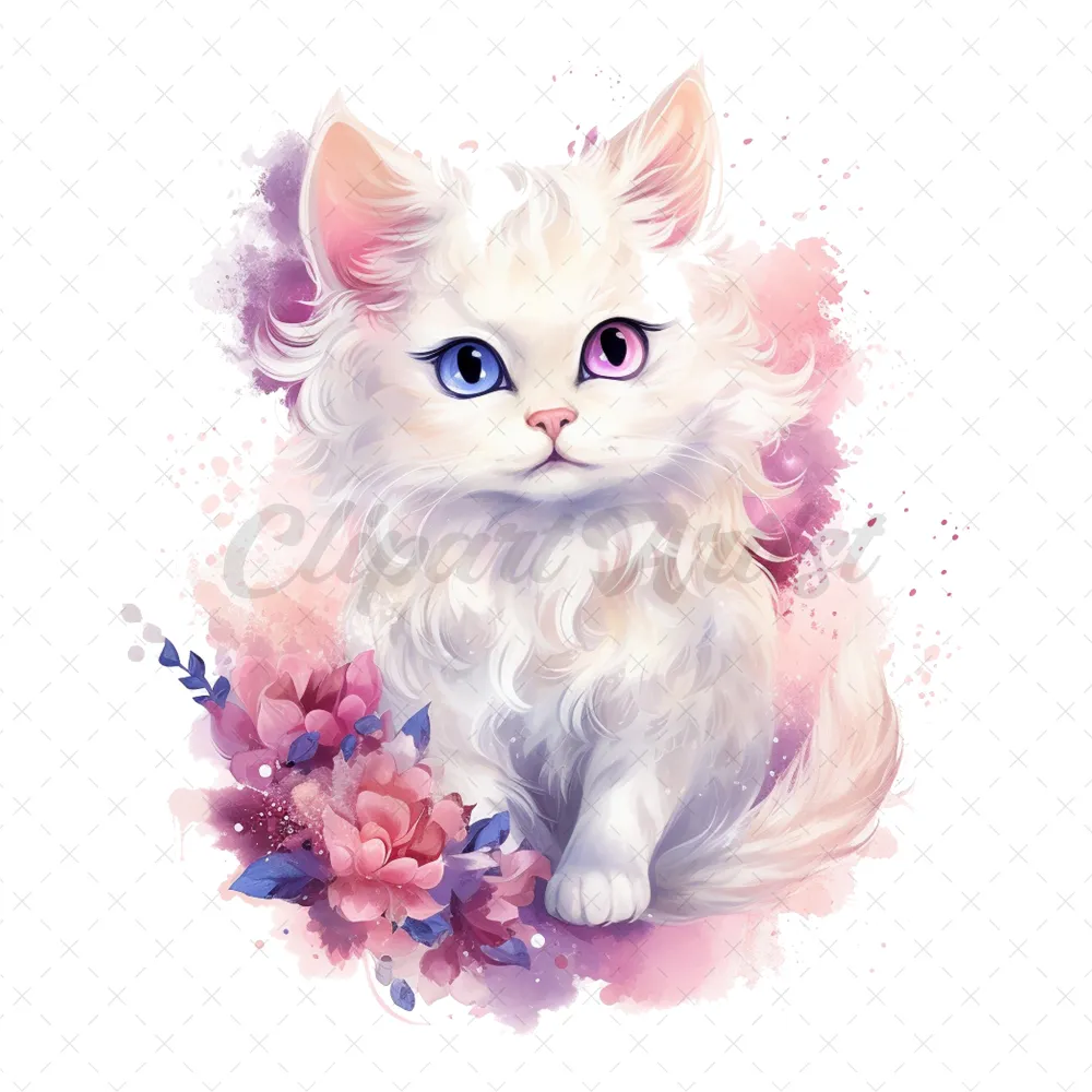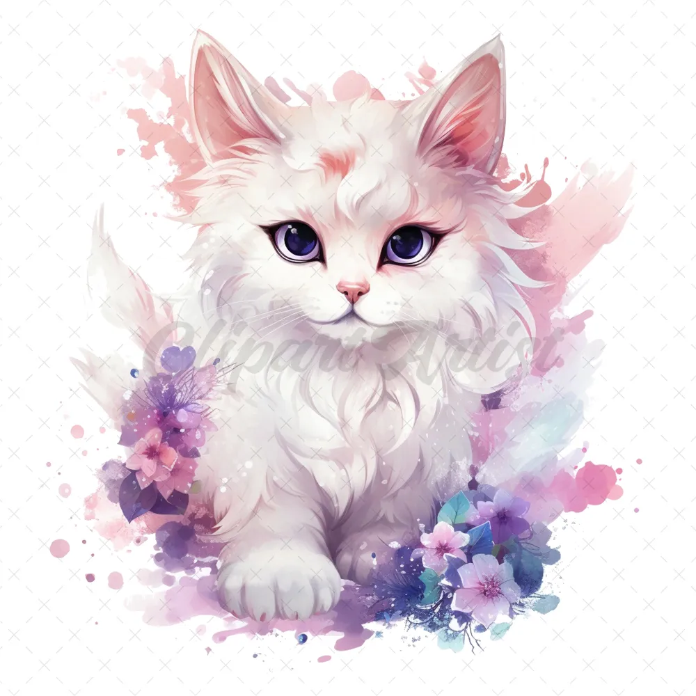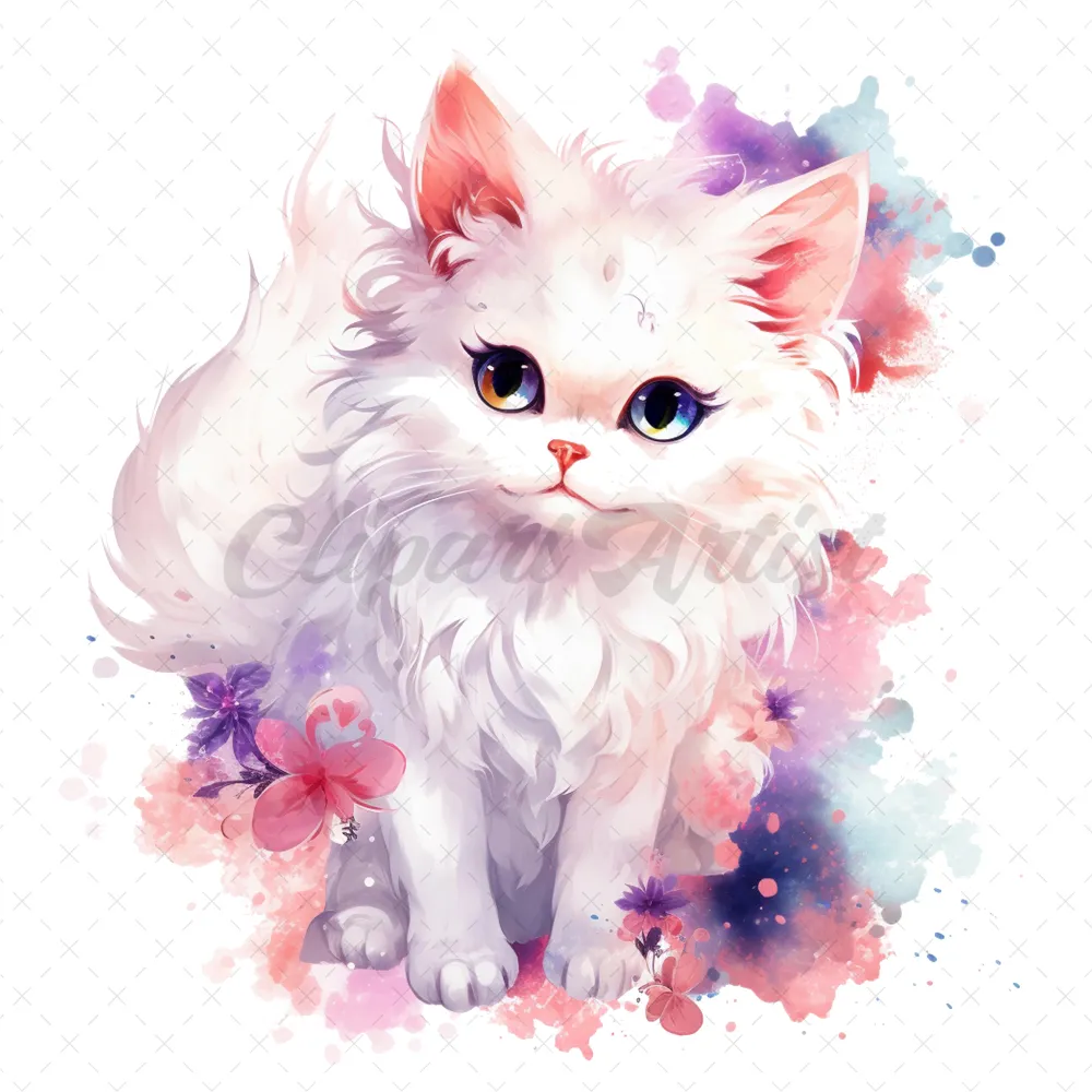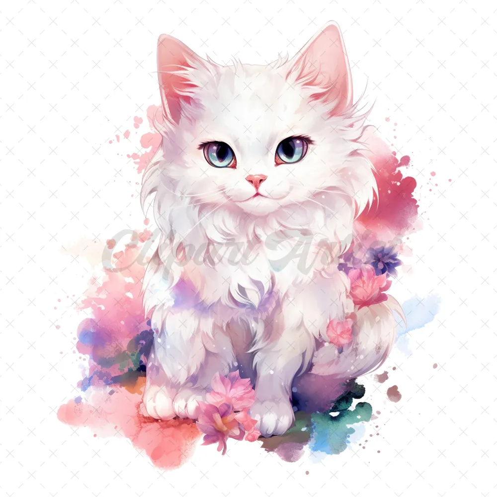 21 High-Quality Fantasy Cats Clipart – Cute fantasy cats watercolor digital JPG instant download for commercial use – Digital download