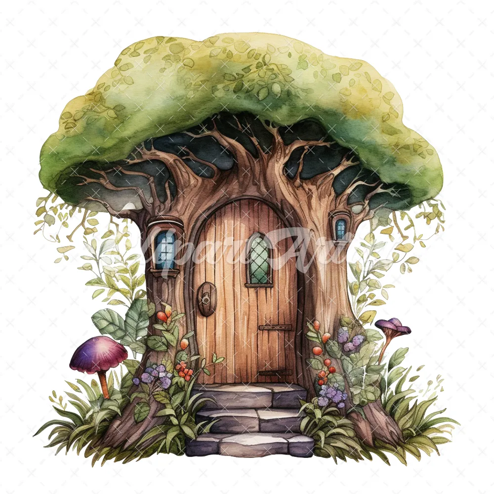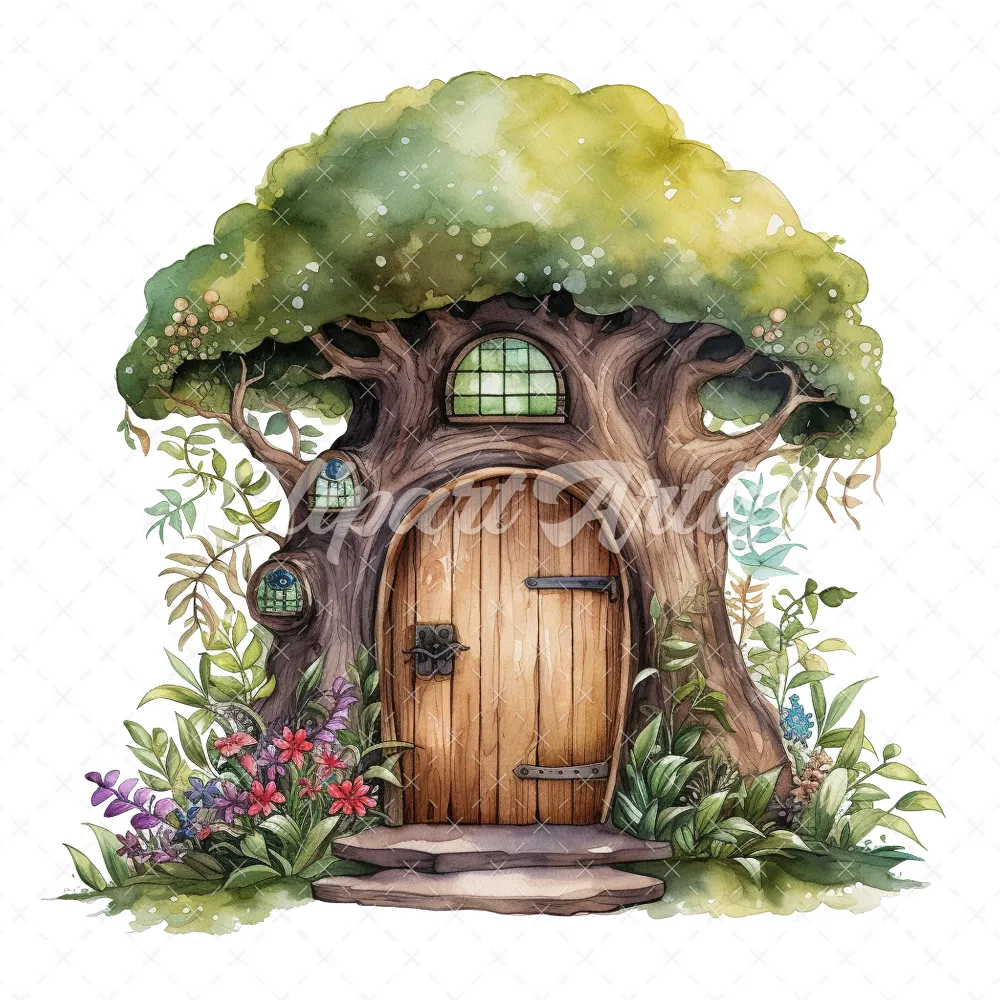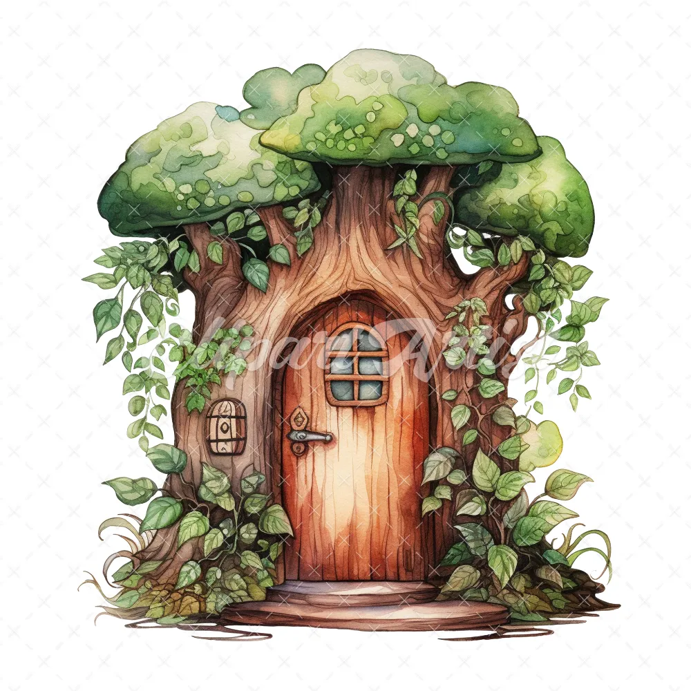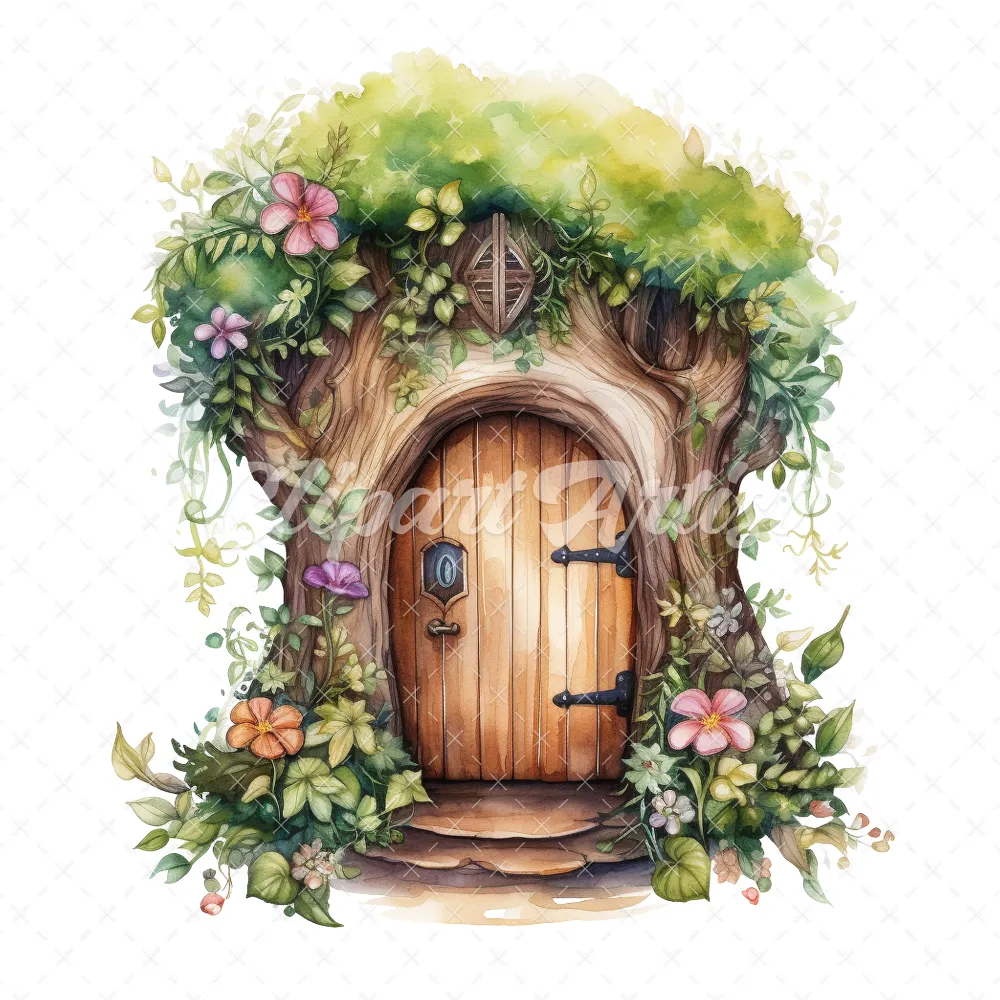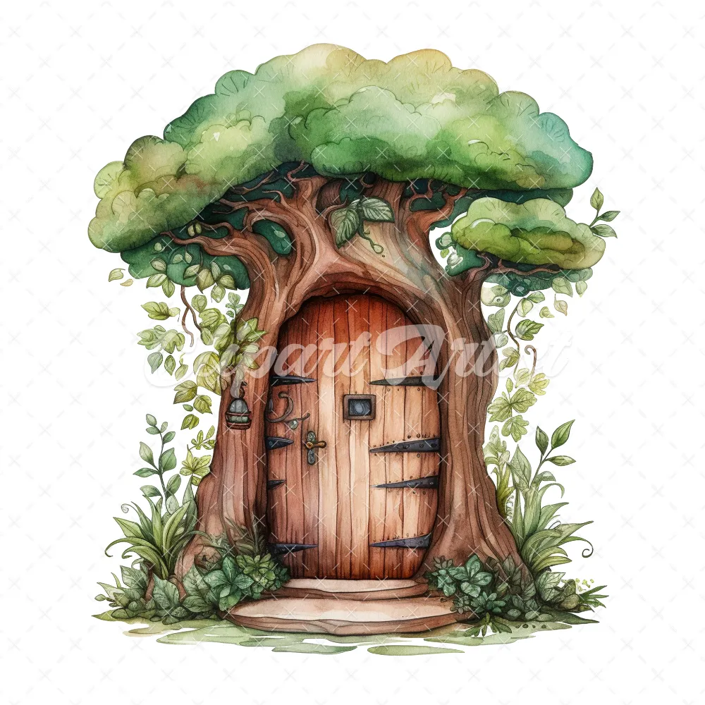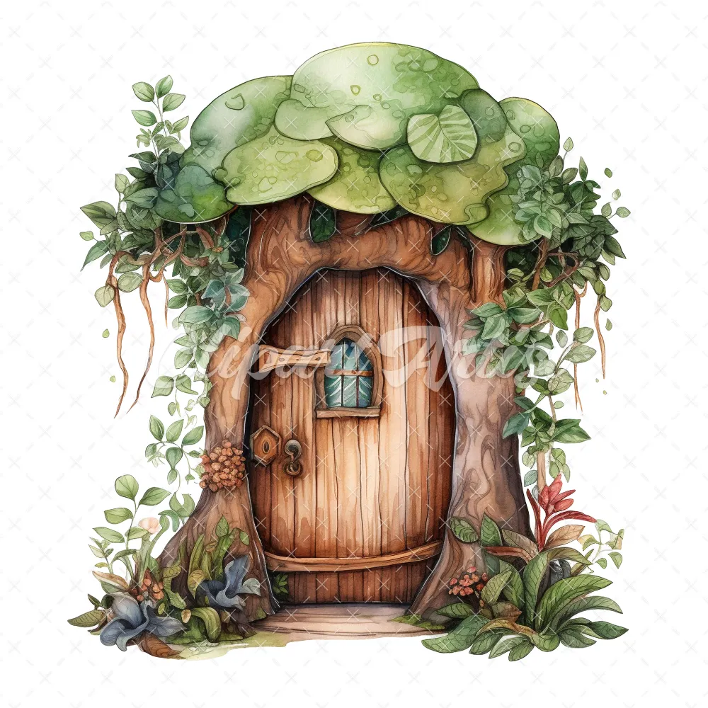 21 High-Quality Forest Fairy Doors Clipart – Forest fairy door digital watercolor JPG instant download for commercial use – Digital download