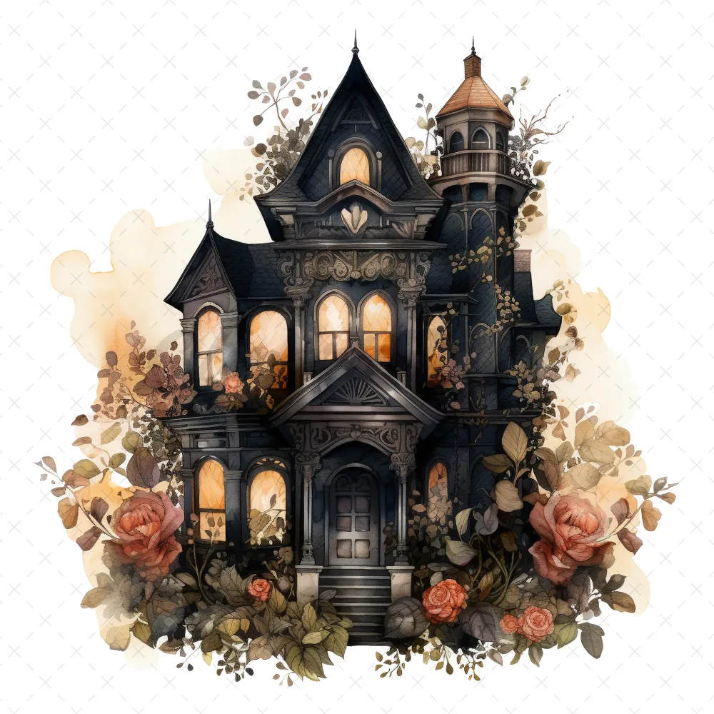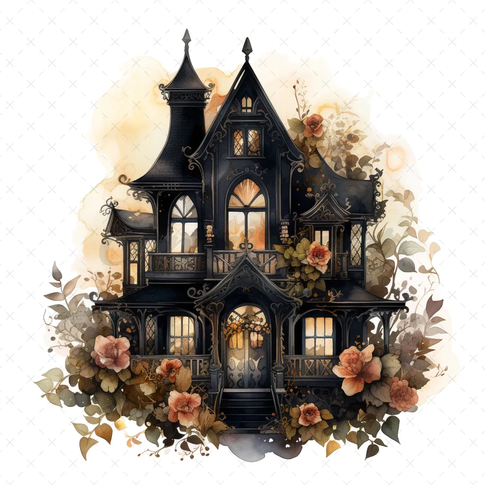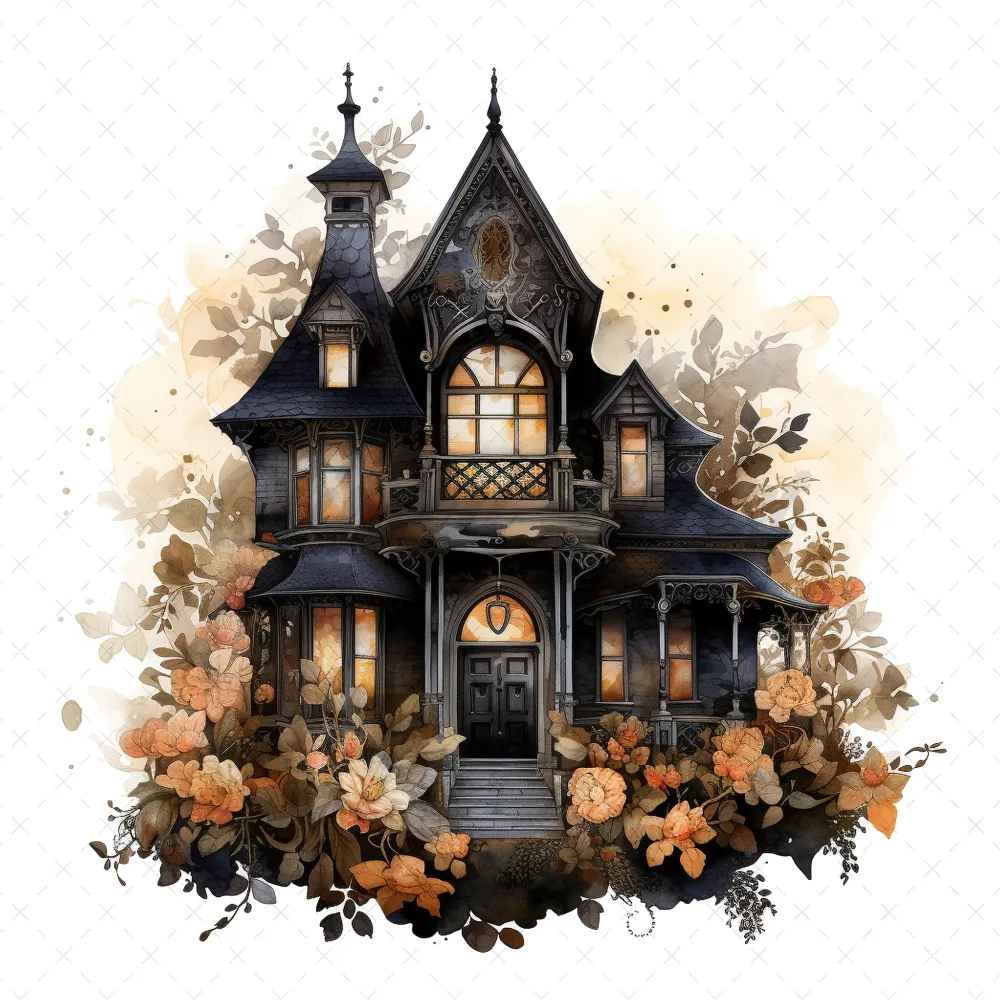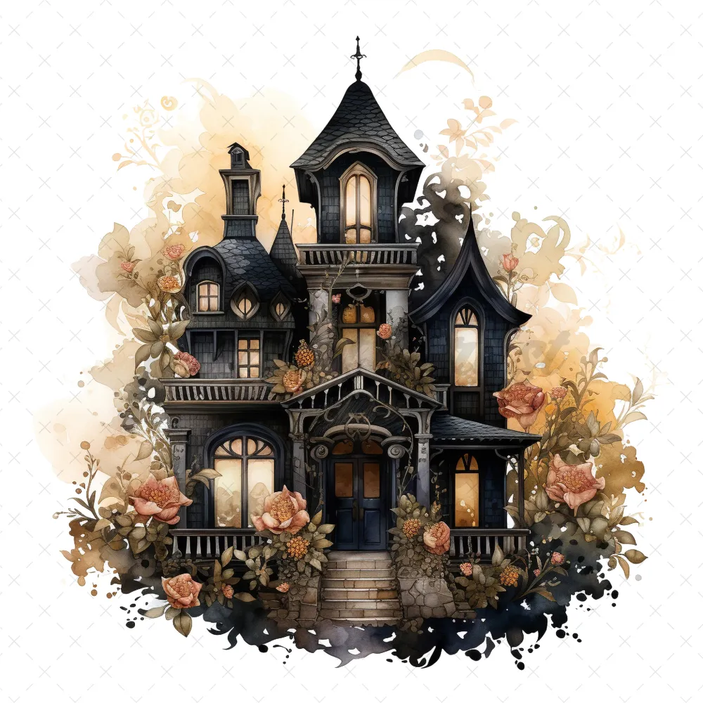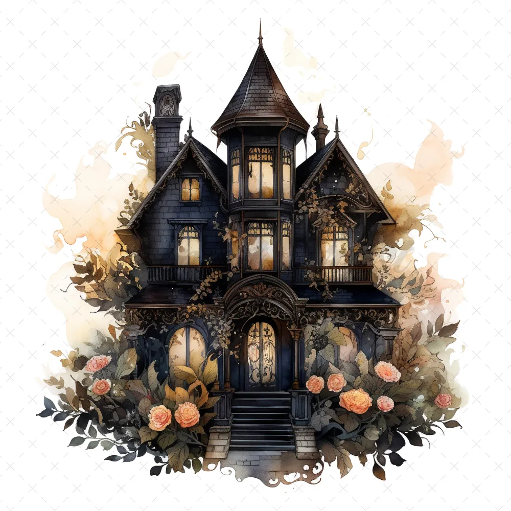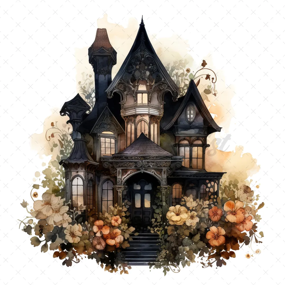 21 High-Quality Gothic Houses Clipart – Gothic houses digital watercolor JPG instant download for commercial use – Digital download